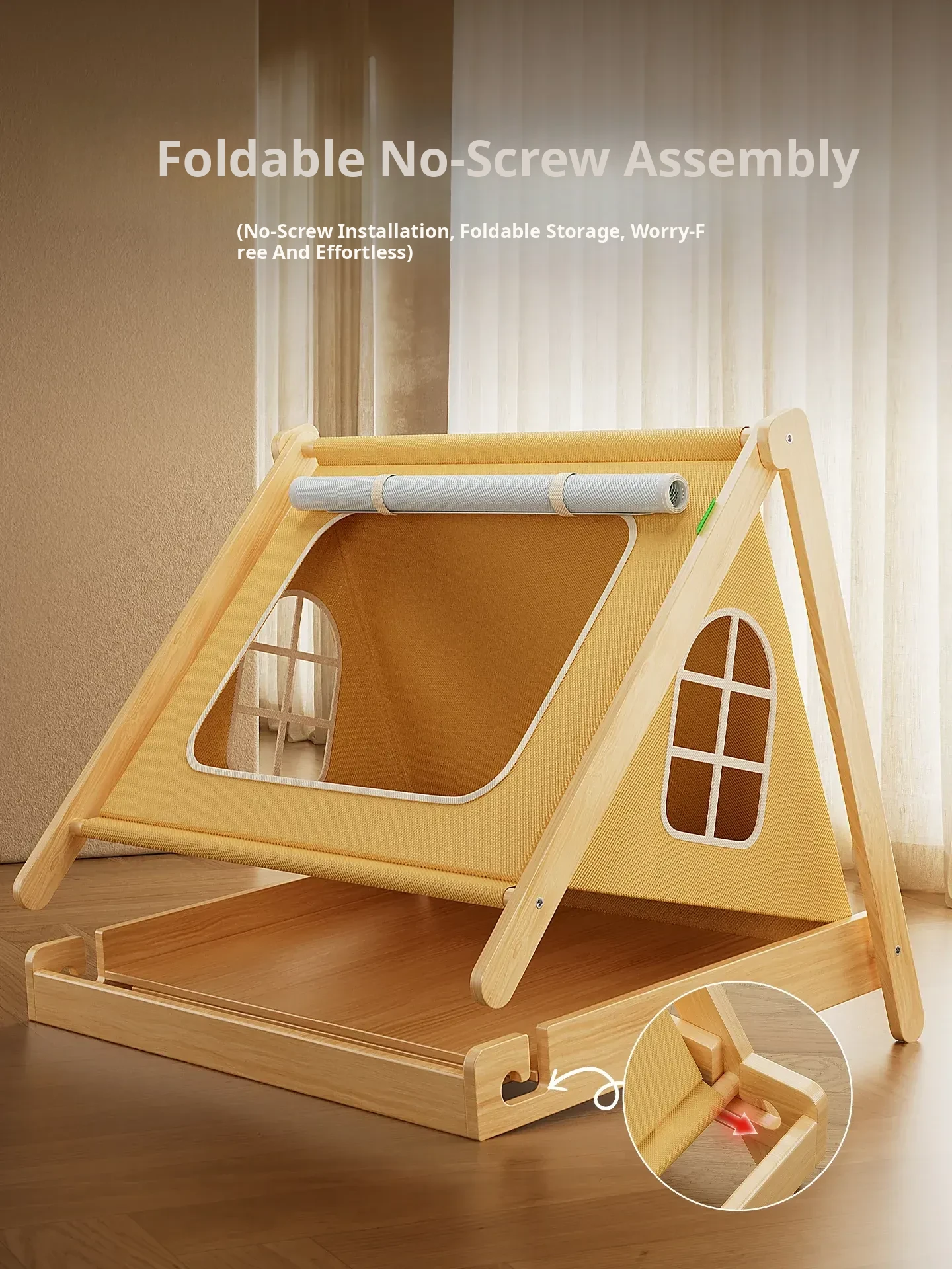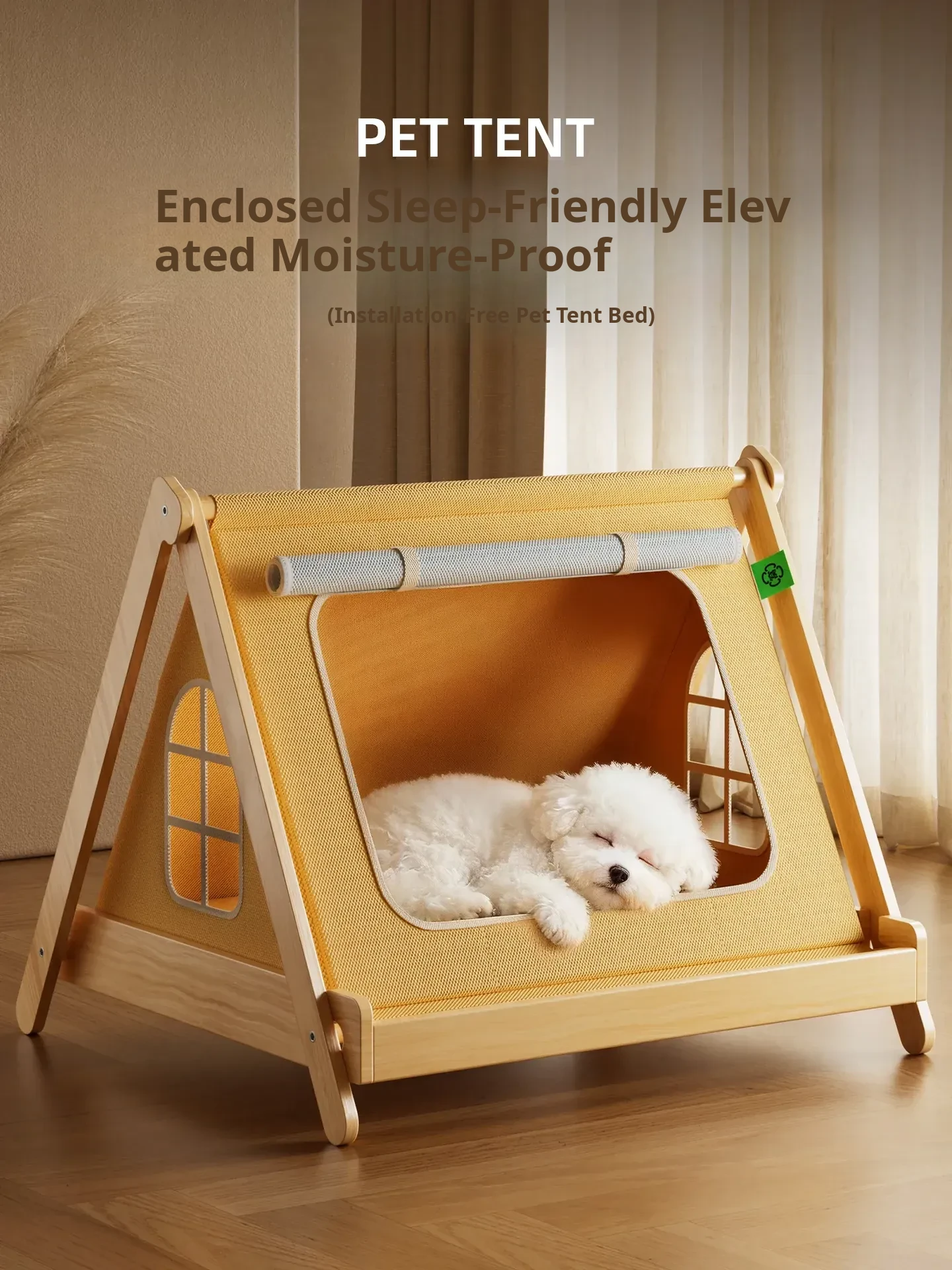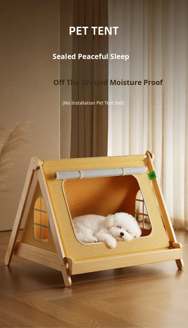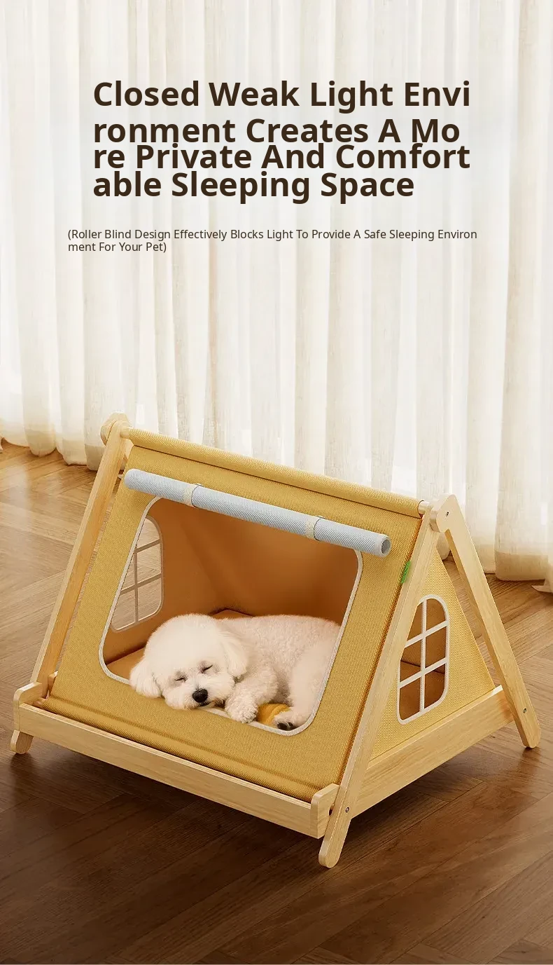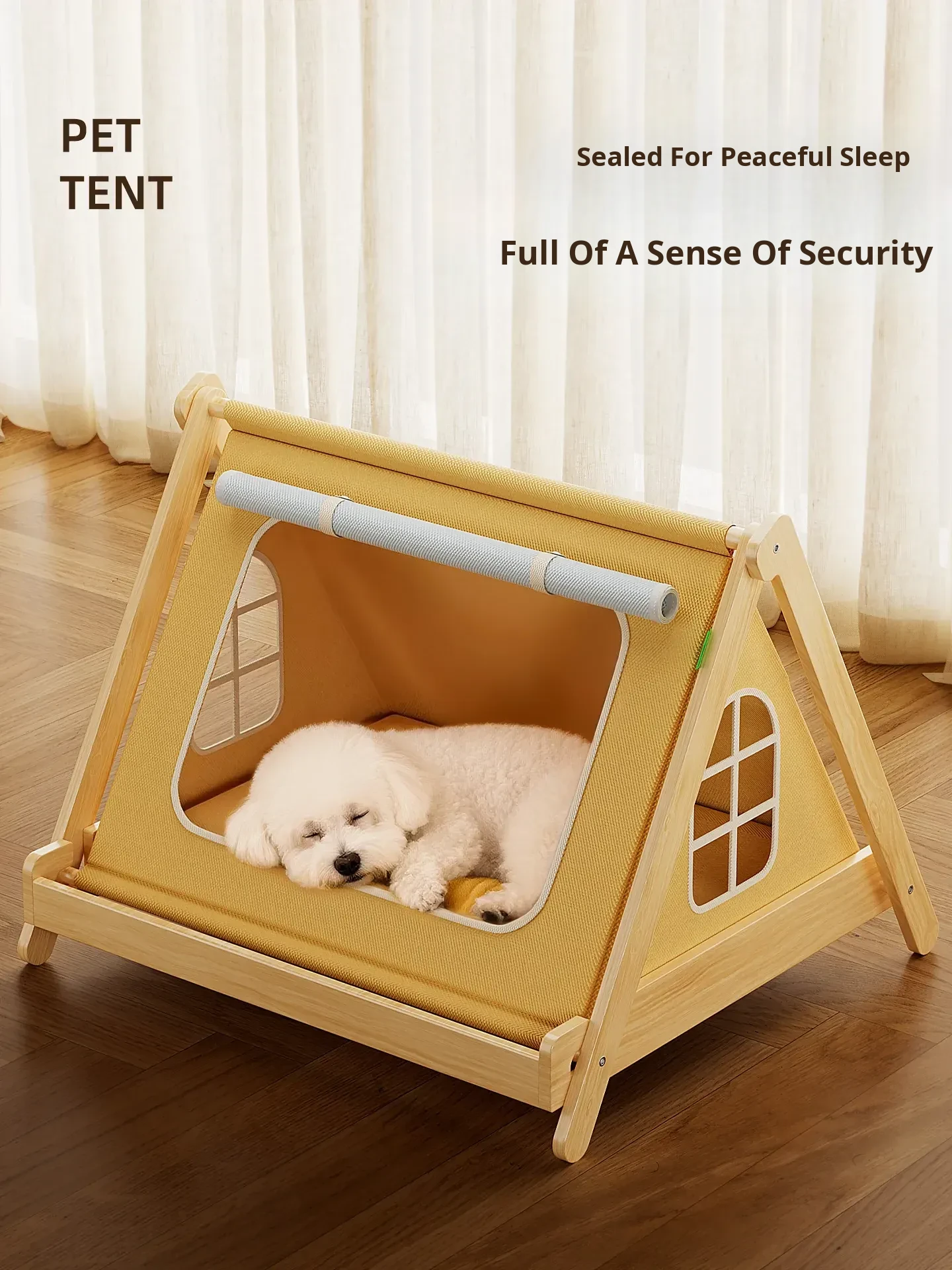 2026 New Wooden Dog Tent - No Installation Required, Cozy Enclosed Design for Small Dogs, All-Season Comfort and Safety