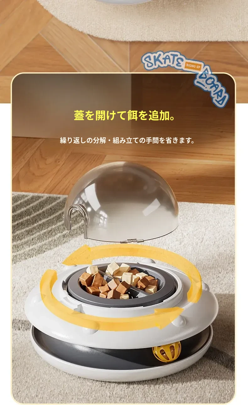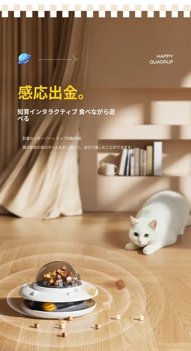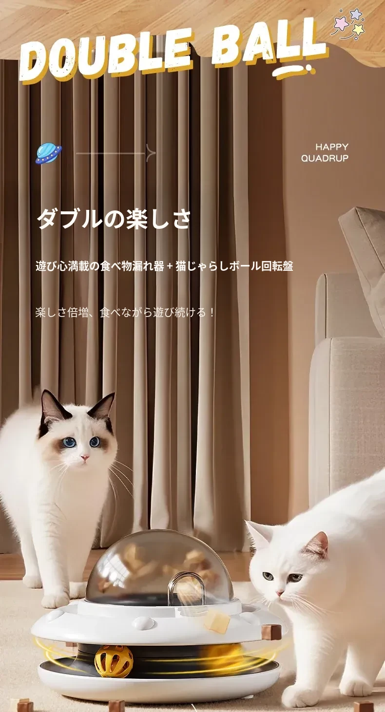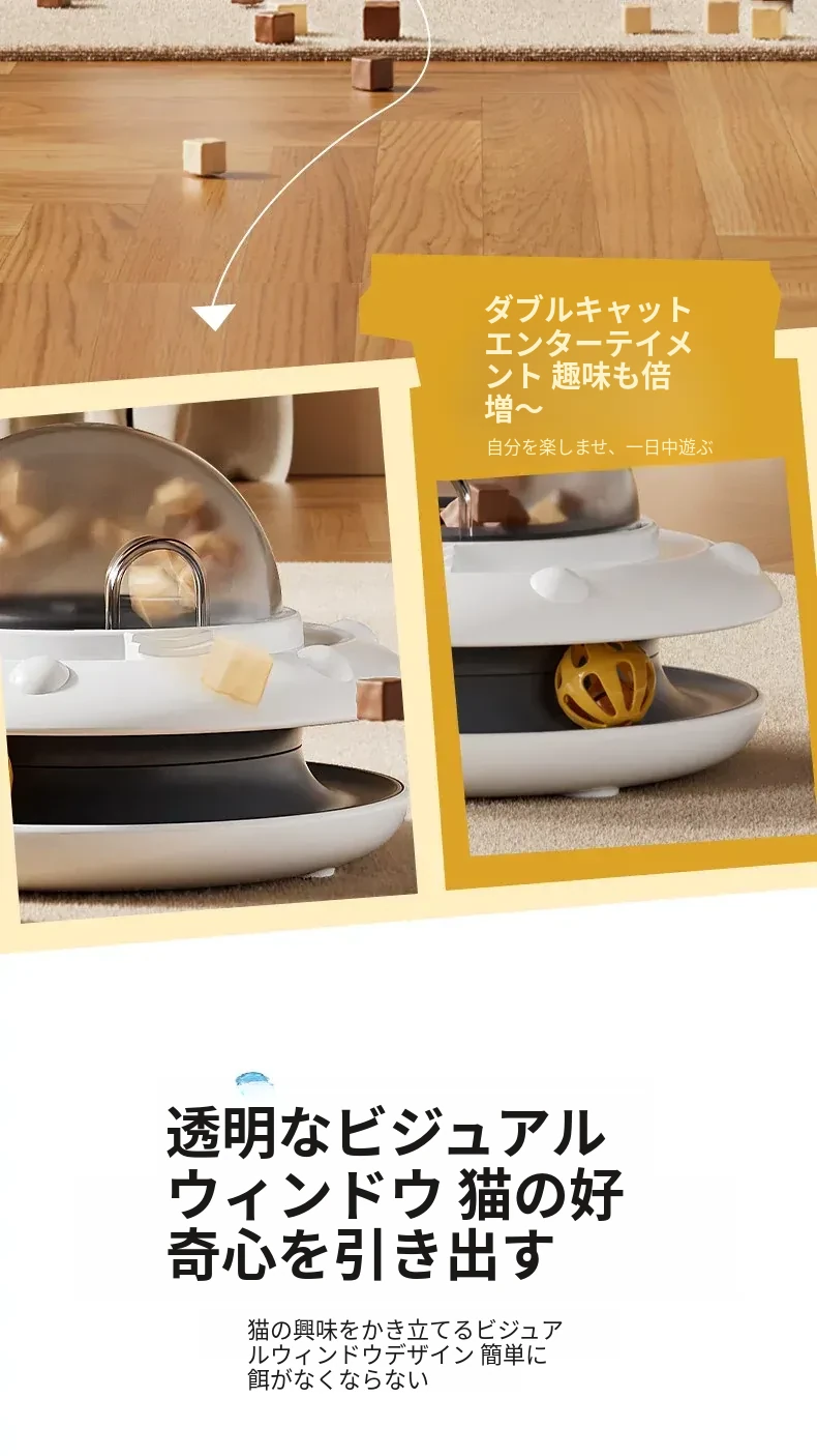 自動おもちゃで猫ちゃんを夢中に!楽しいキャットボール&おやつディスペンサー付き猫じゃらし。子猫も大満足のフリーズドライおやつ発射器で、遊びながらストレス解消!