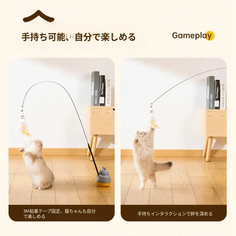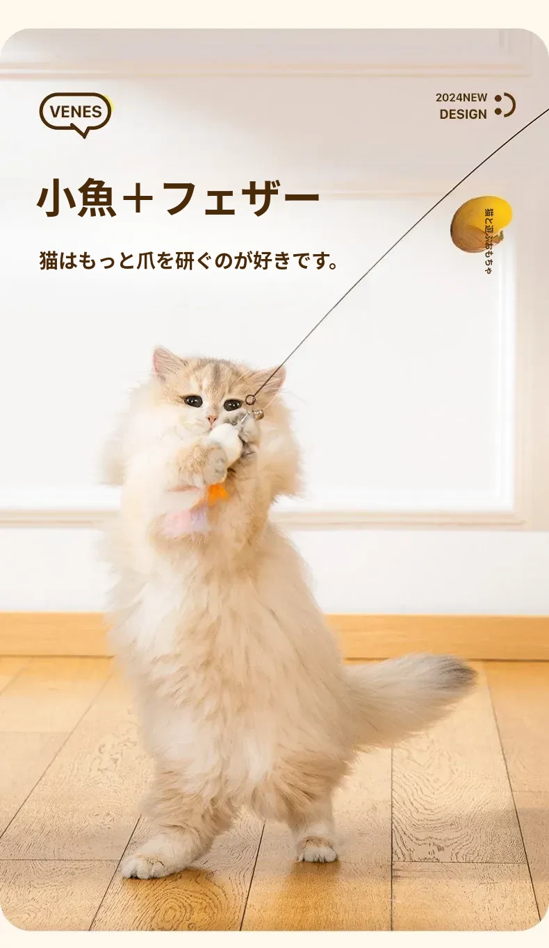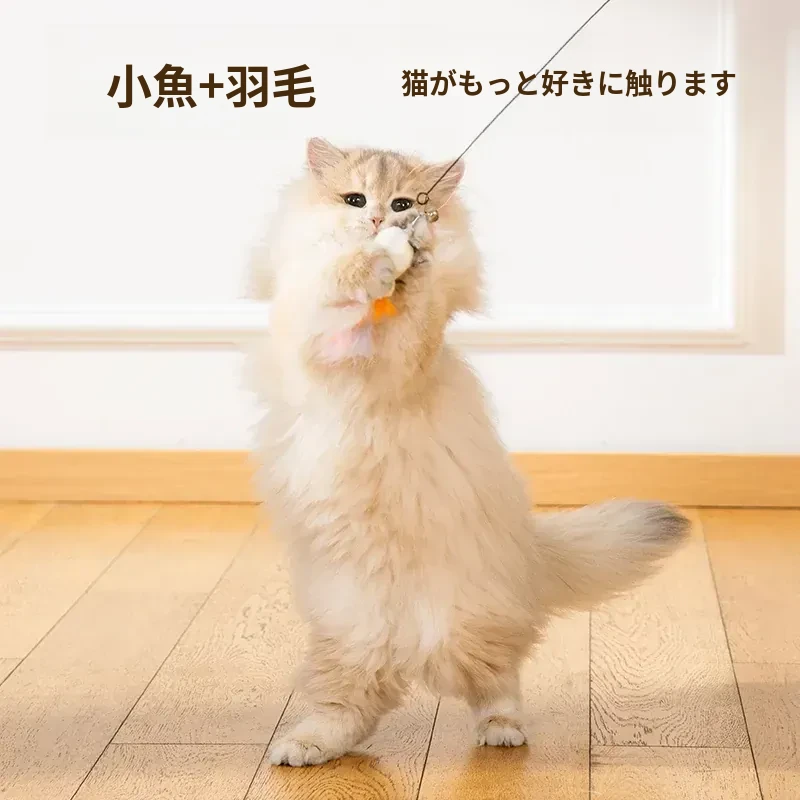子猫釣りおもちゃ+3つの交換ヘッド【いつでも交換可能】