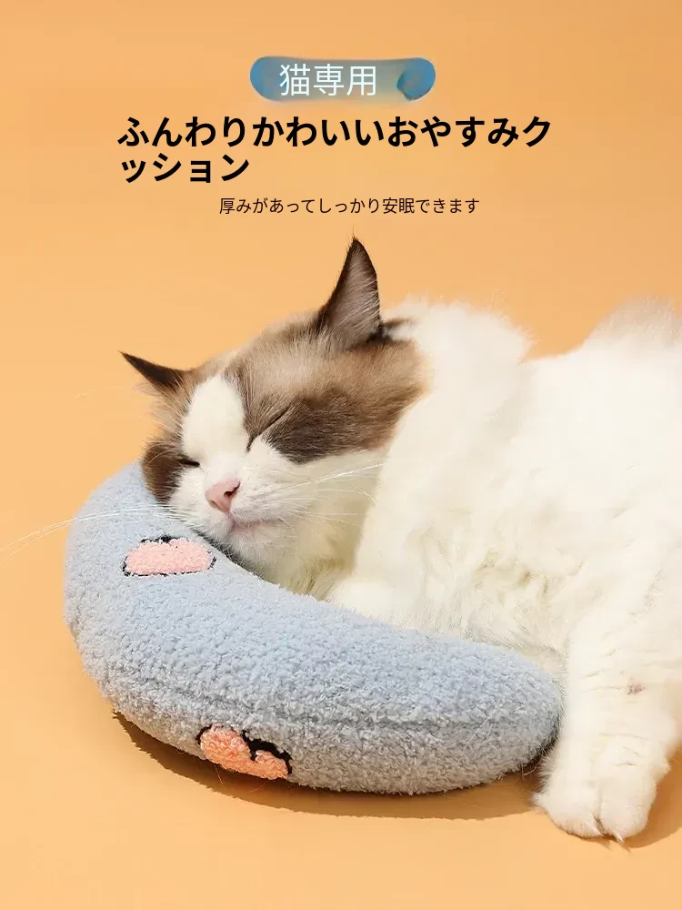 猫用四季兼用のふわふわ枕!愛猫の快適な眠りをサポートするマイクロファイバー製、首を守るデザイン。おもちゃのように音が鳴るペット用抱き枕で、リラックスした時間を提供します!