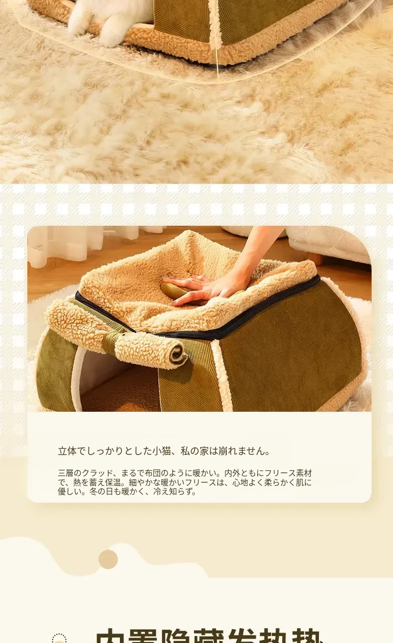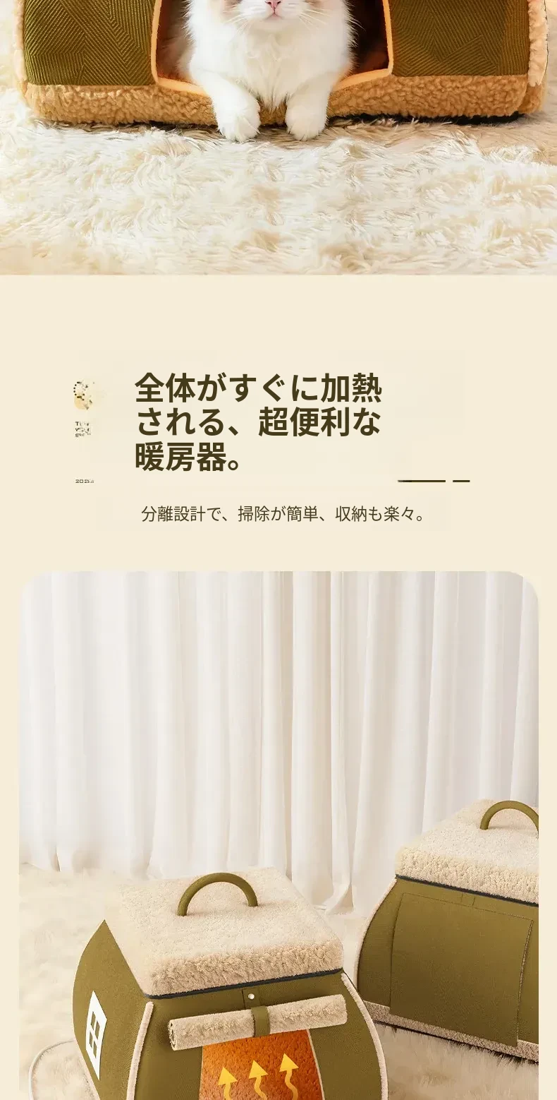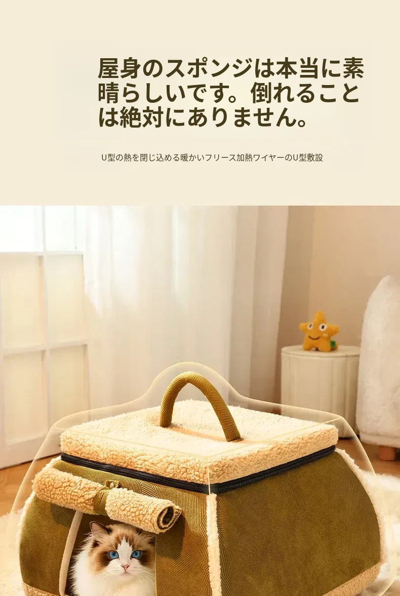 暖かさを保つ猫のための電気ヒーター付きハウス ~ 冬でも安心!小型犬や子猫も快適に過ごせる四季兼用の封閉型キャットハウス
