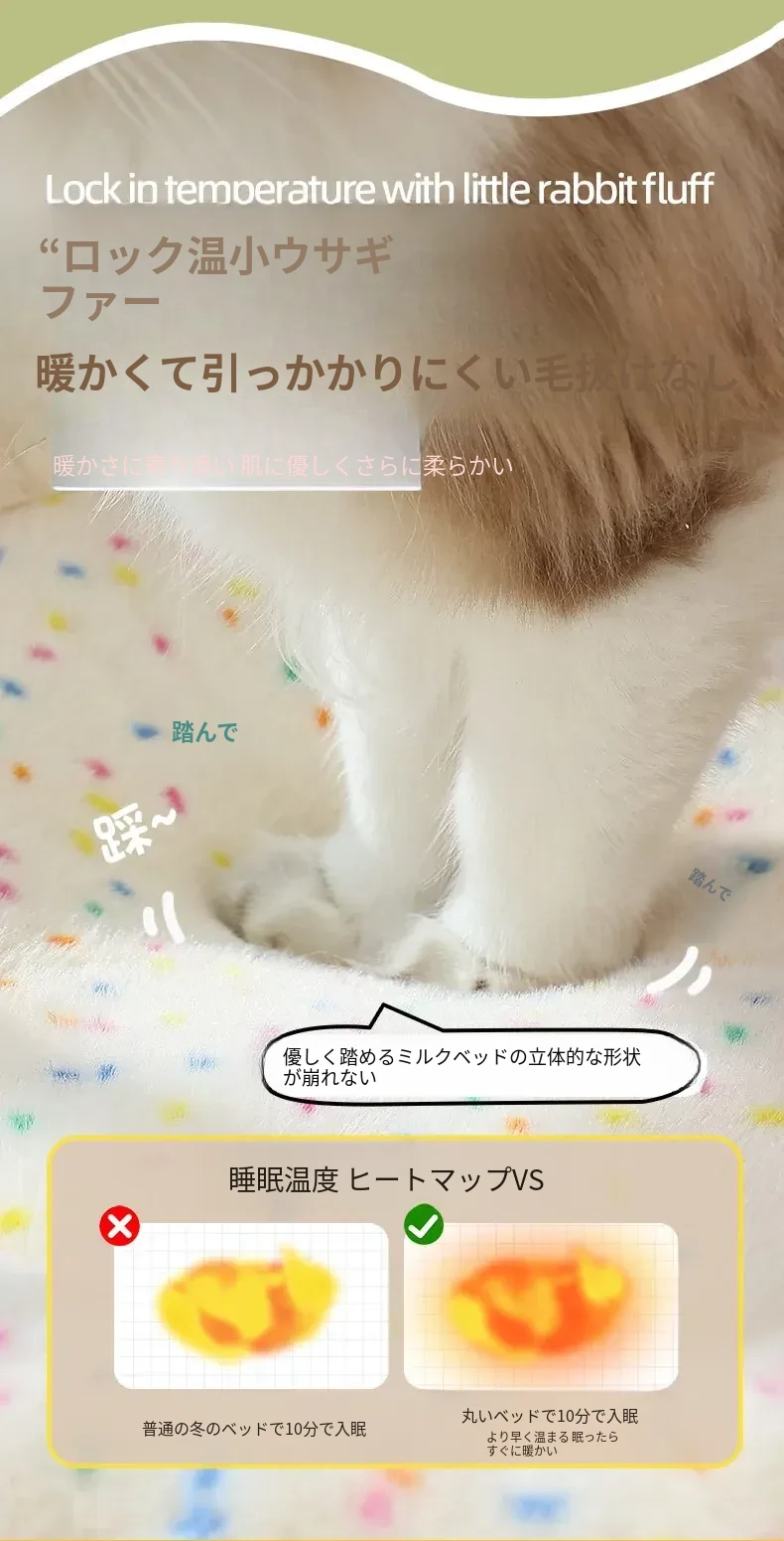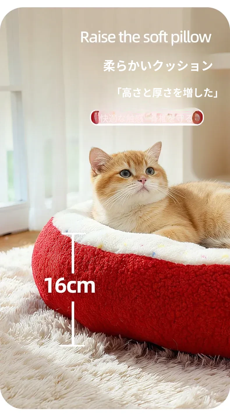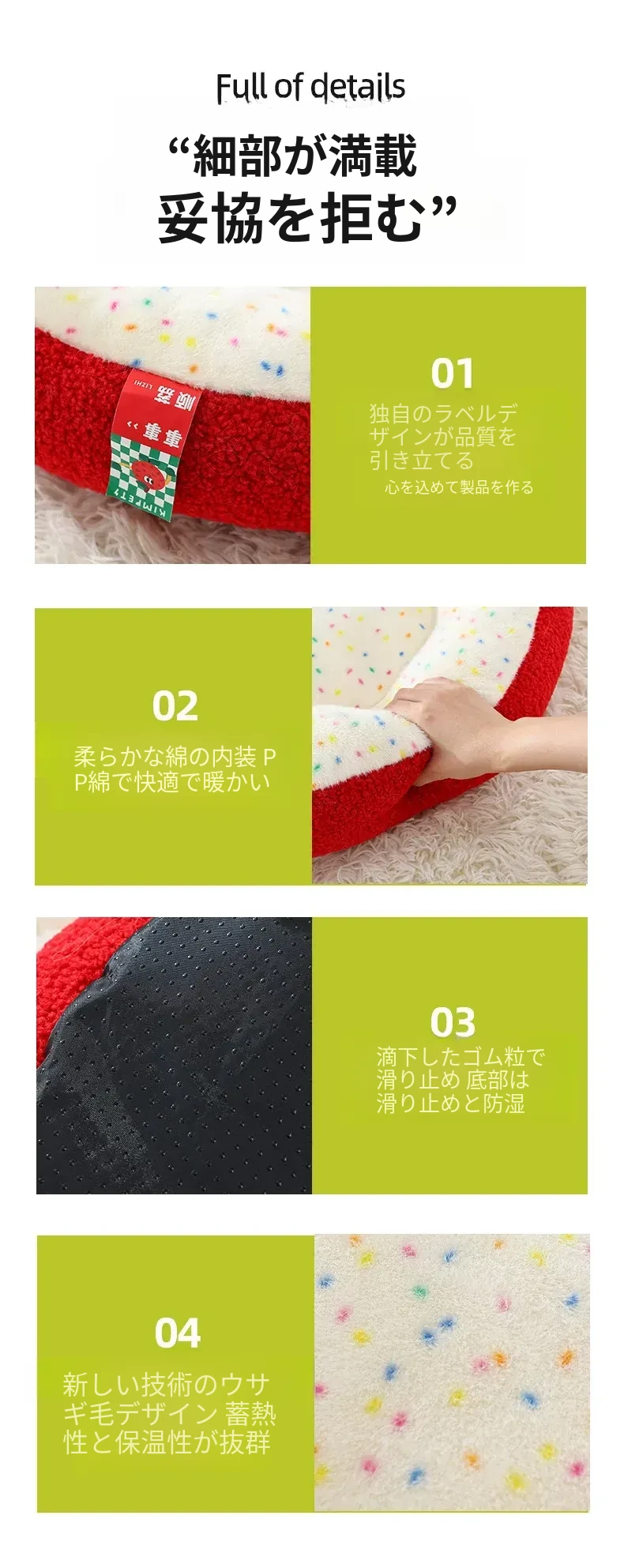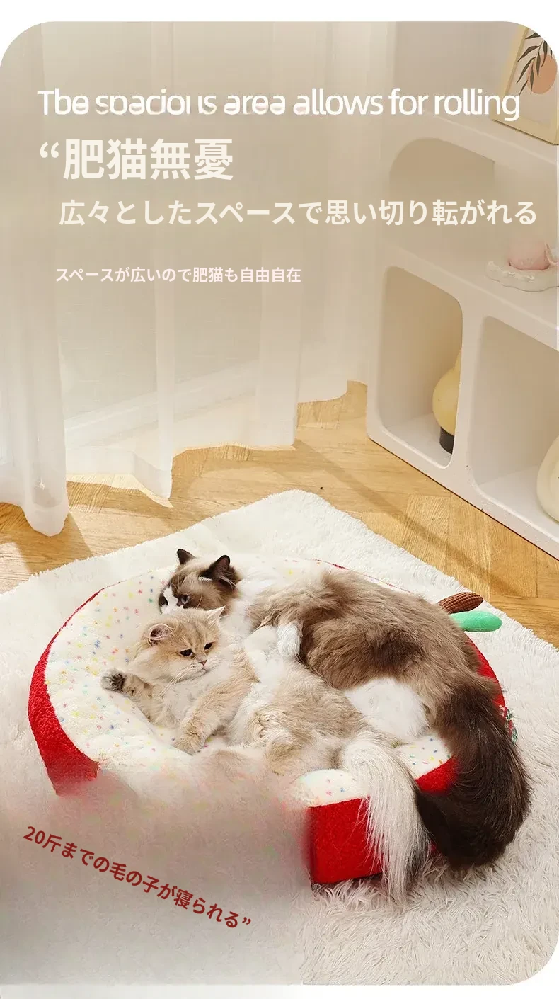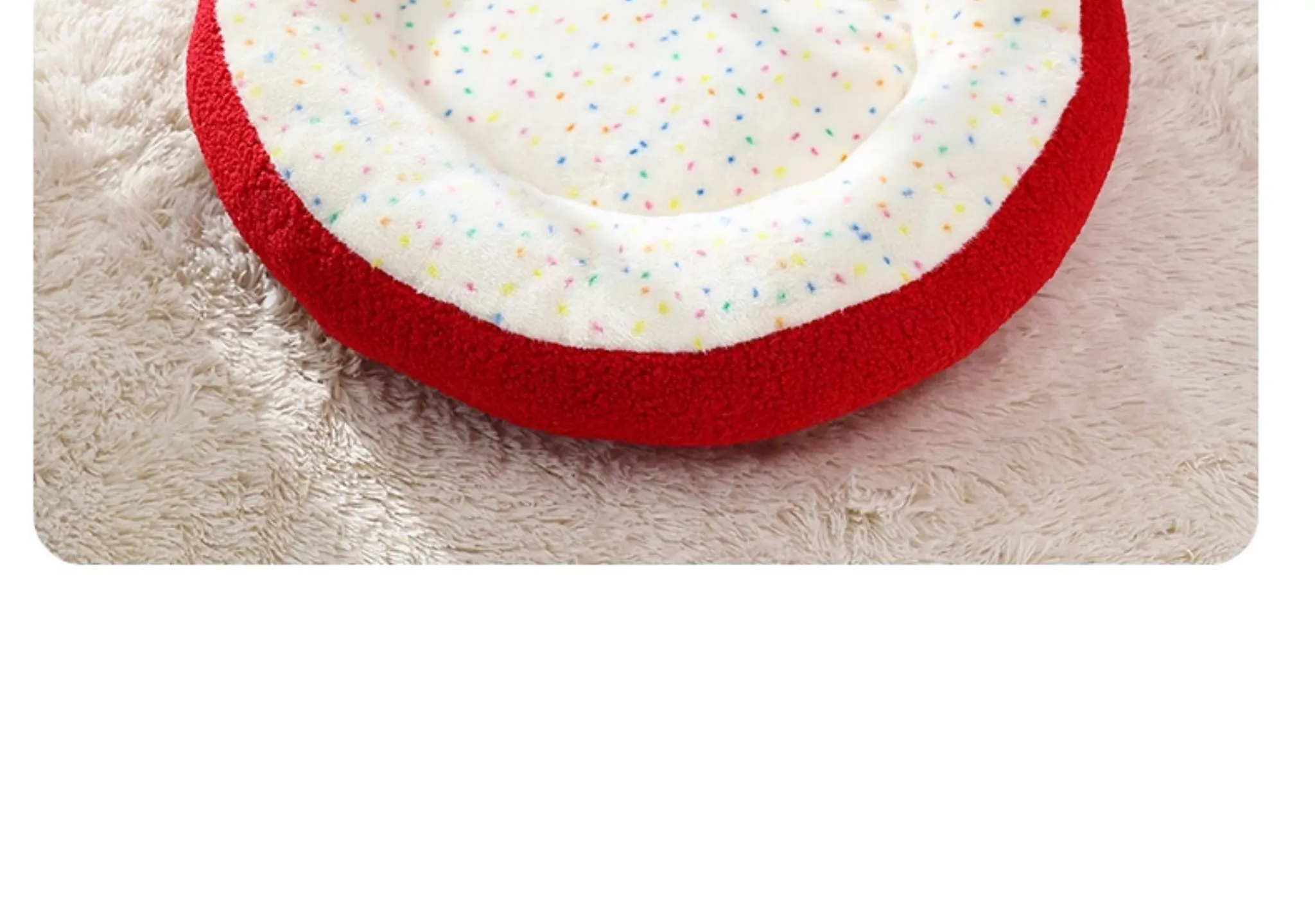 冬の寒さから守る!可愛いライチ型デザインのペット用ベッド。中小型猫や小型犬にぴったりなフリース素材で、四季を通じて暖かく快適な眠りを提供します。
