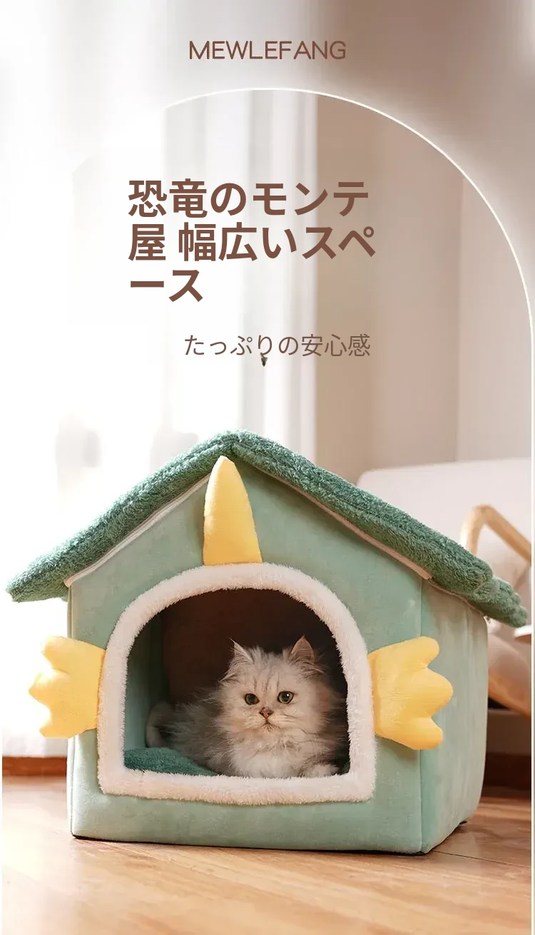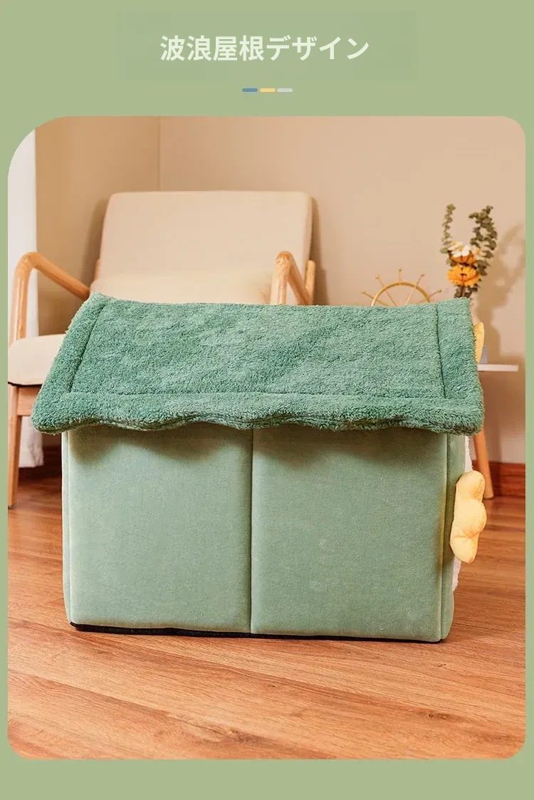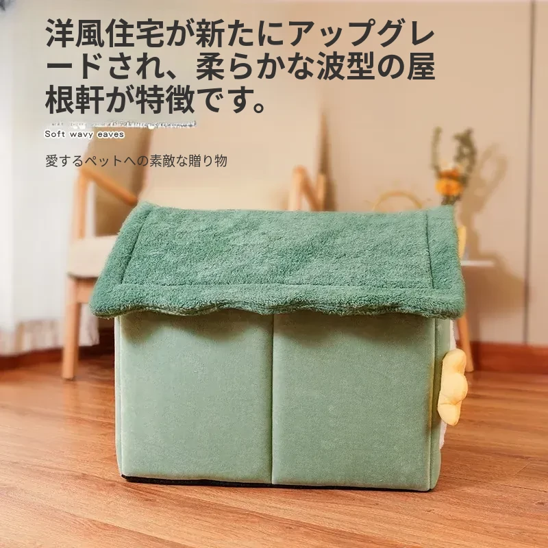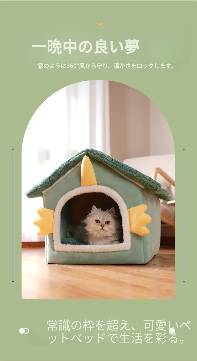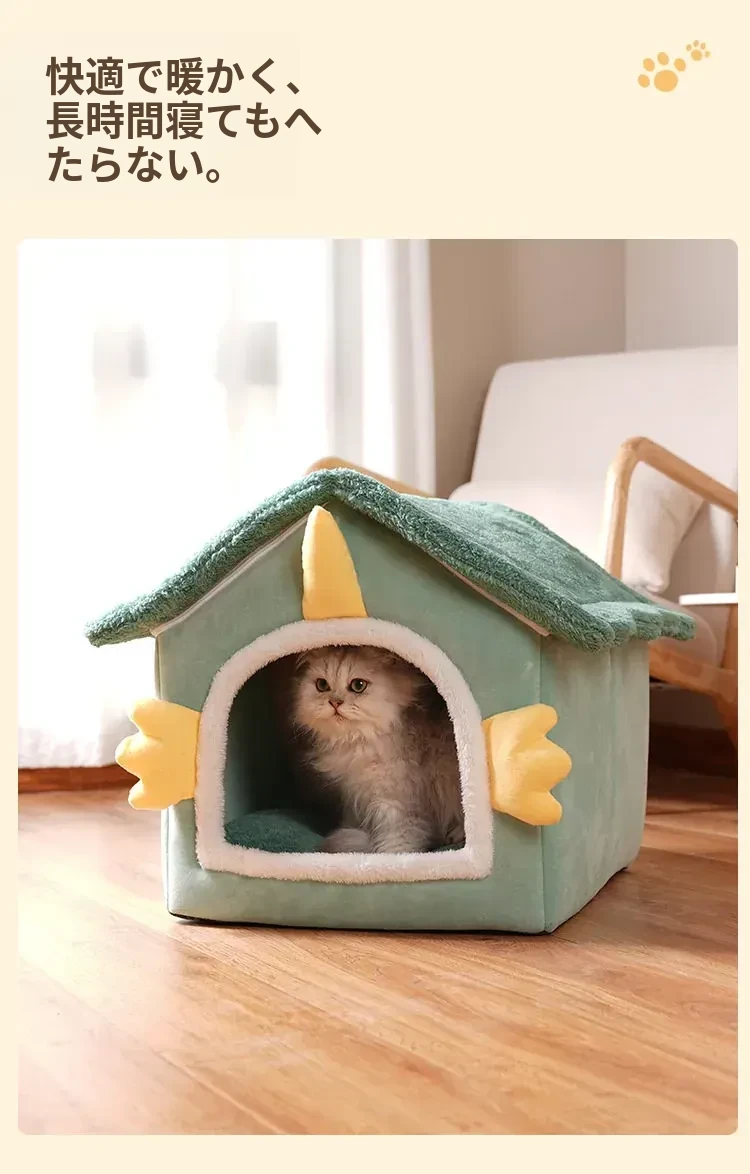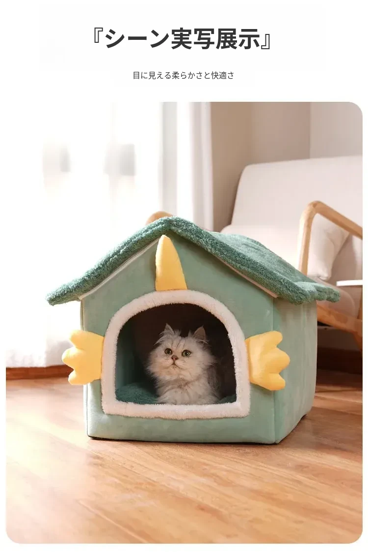 冬の猫と犬のための暖かいハーフクローズドペットハウス - 取り外し可能なクッション付きで、快適さと温もりを提供!あなたの愛猫に最適なリラックススペースを。