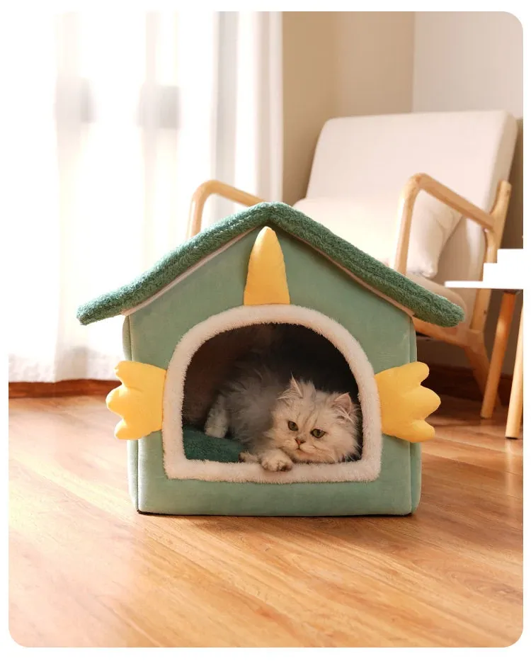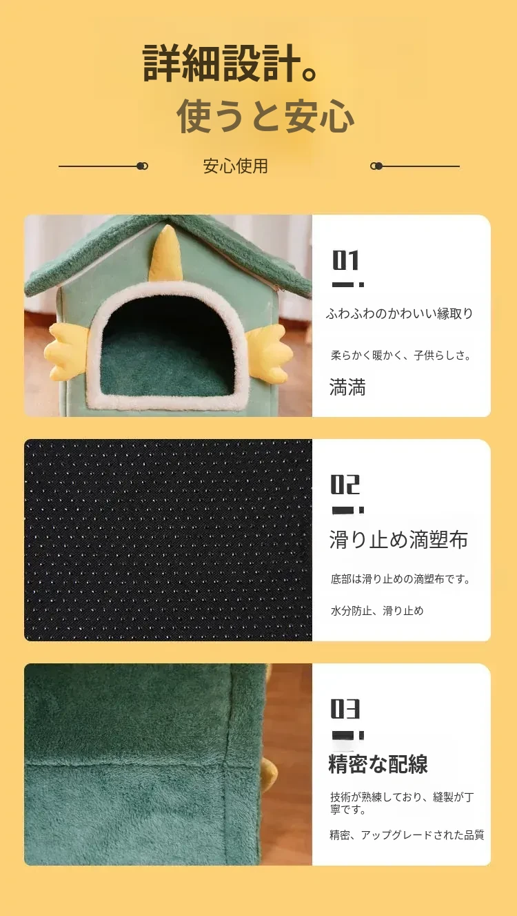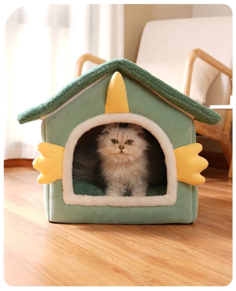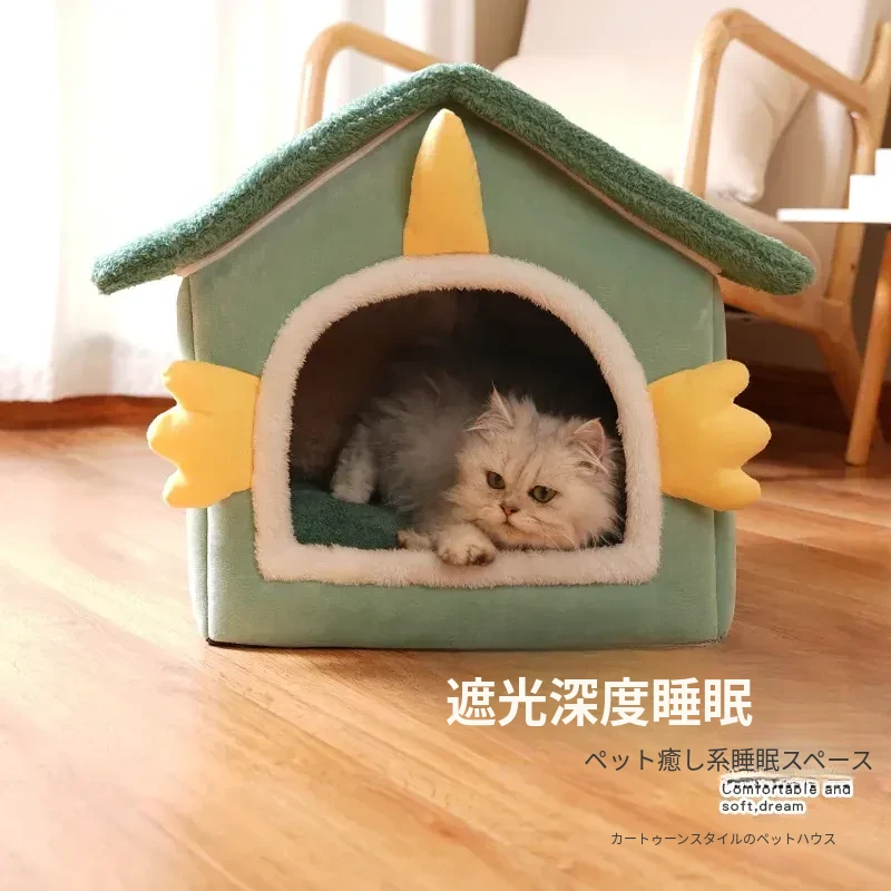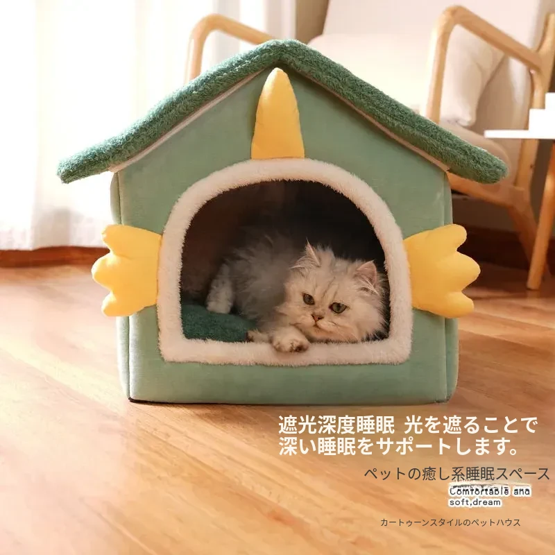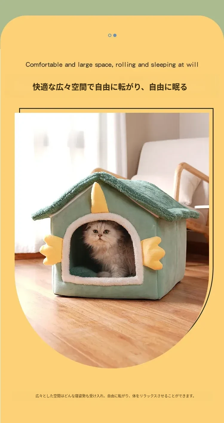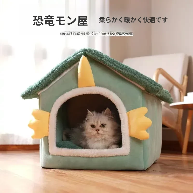 冬の猫と犬のための暖かいハーフクローズドペットハウス - 取り外し可能なクッション付きで、快適さと温もりを提供!あなたの愛猫に最適なリラックススペースを。
