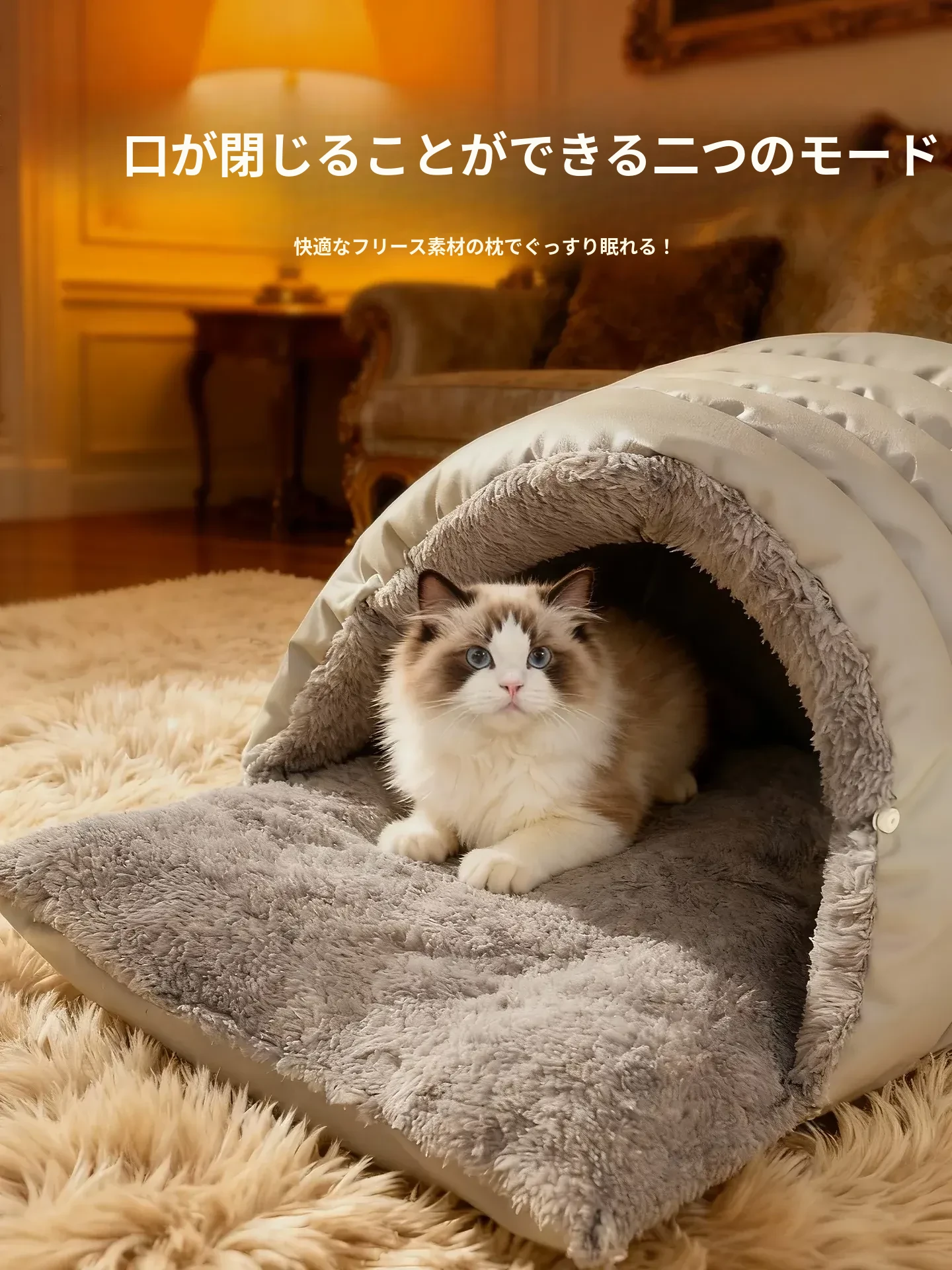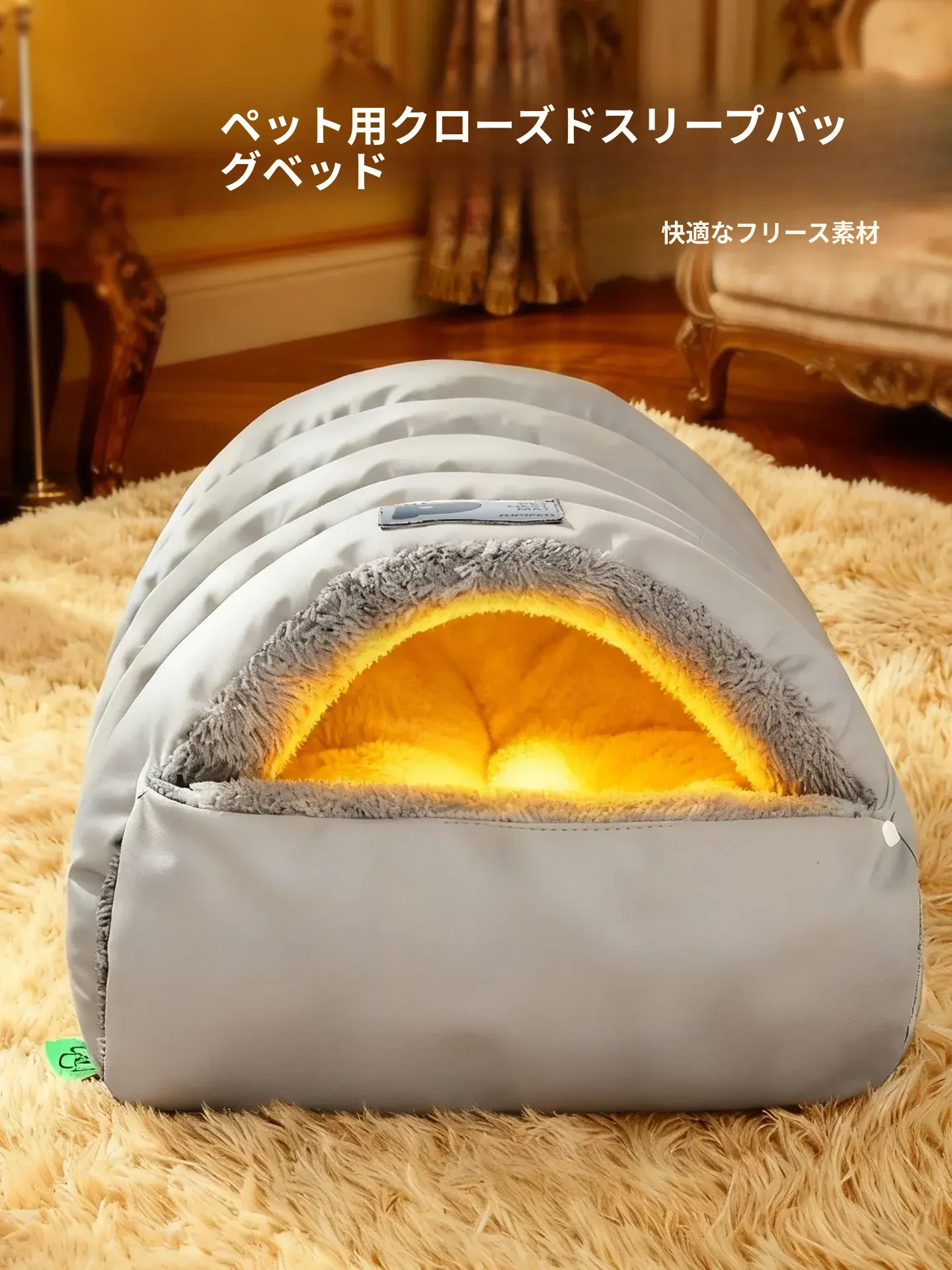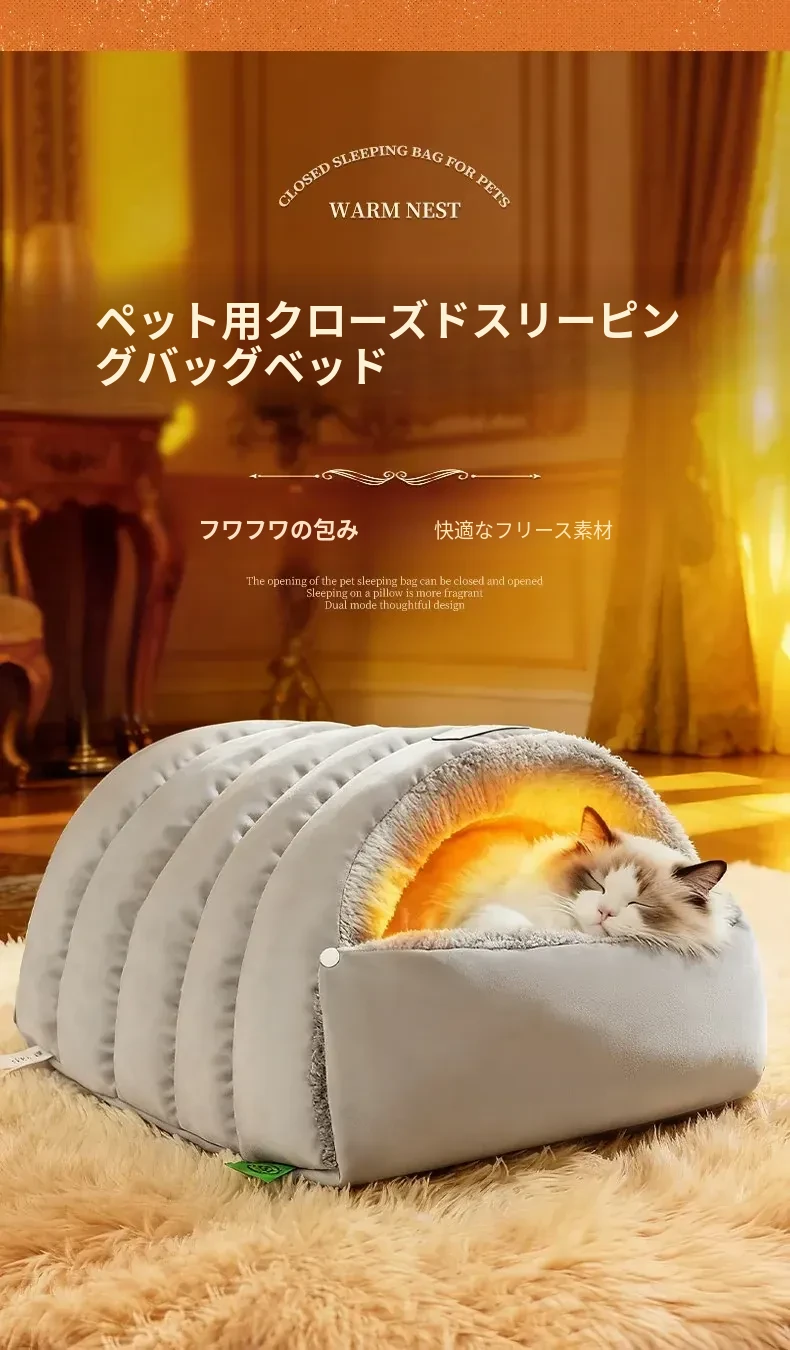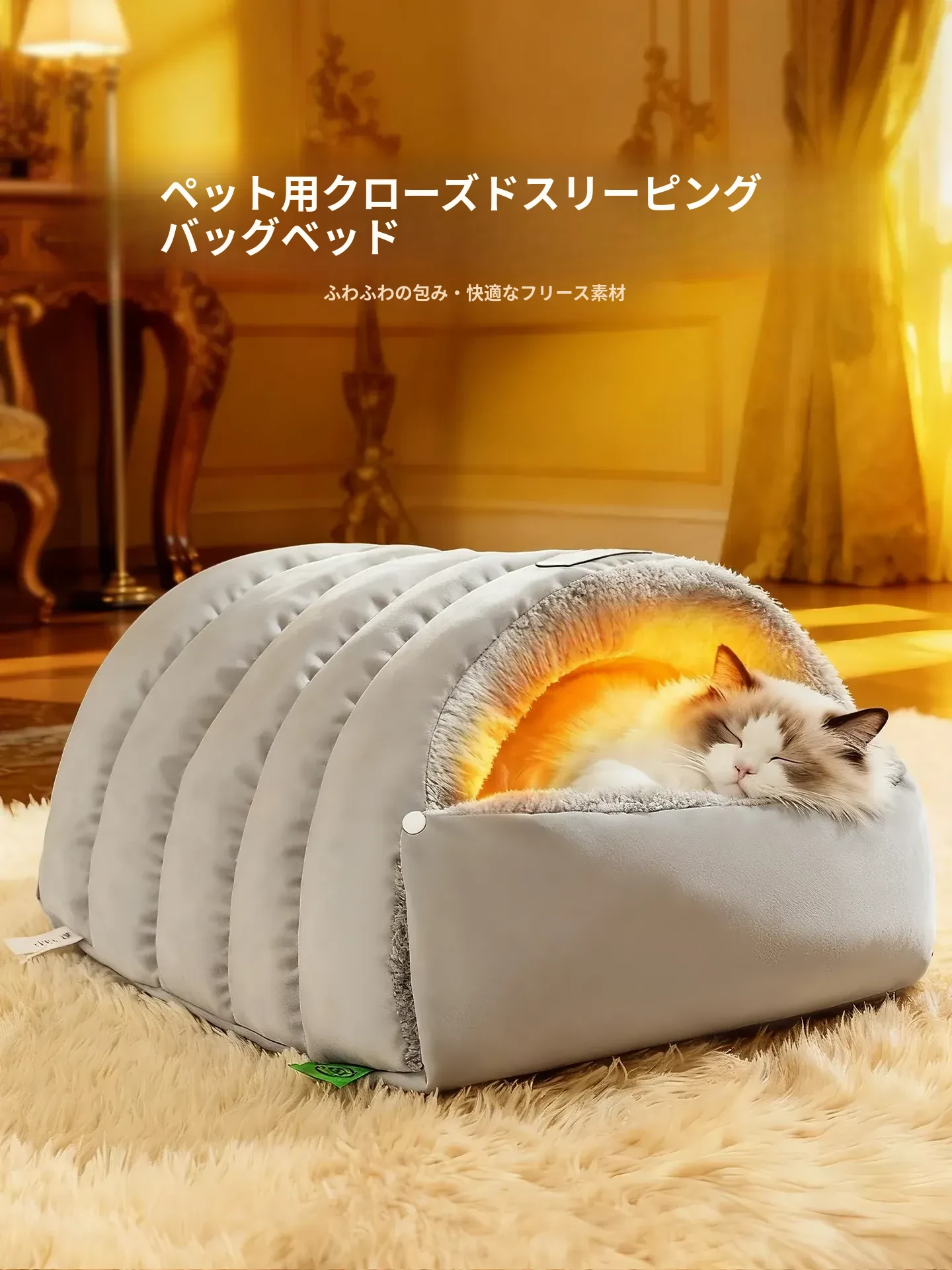 冬季にぴったり!保温性抜群の半封閉型猫ベッド - 厚手の幼猫用スリープバッグで、四季を通じて快適な睡眠を提供します。愛猫のための暖かいお家を今すぐ手に入れて、冬の寒さから守りましょう!