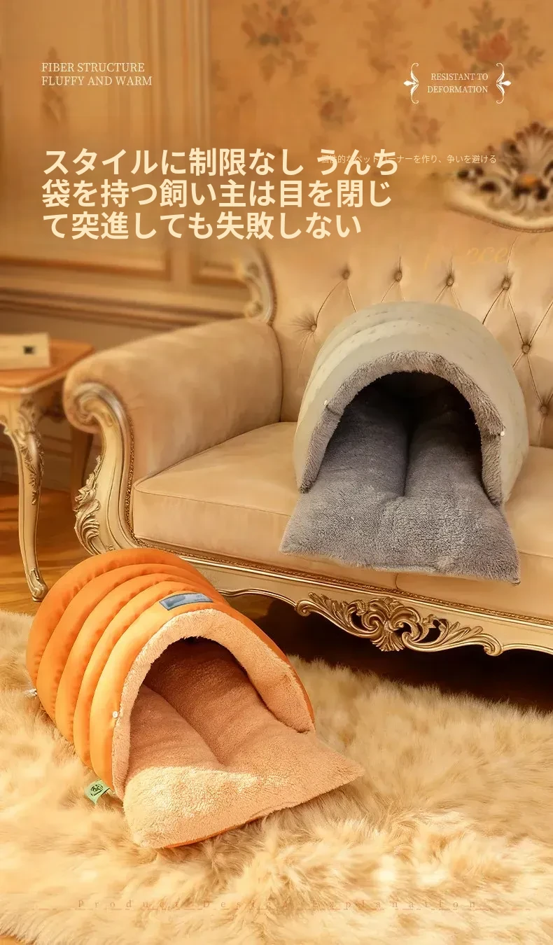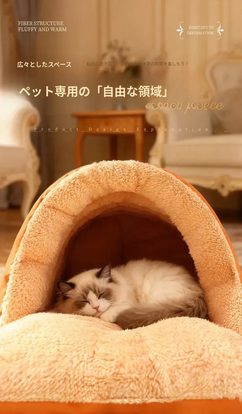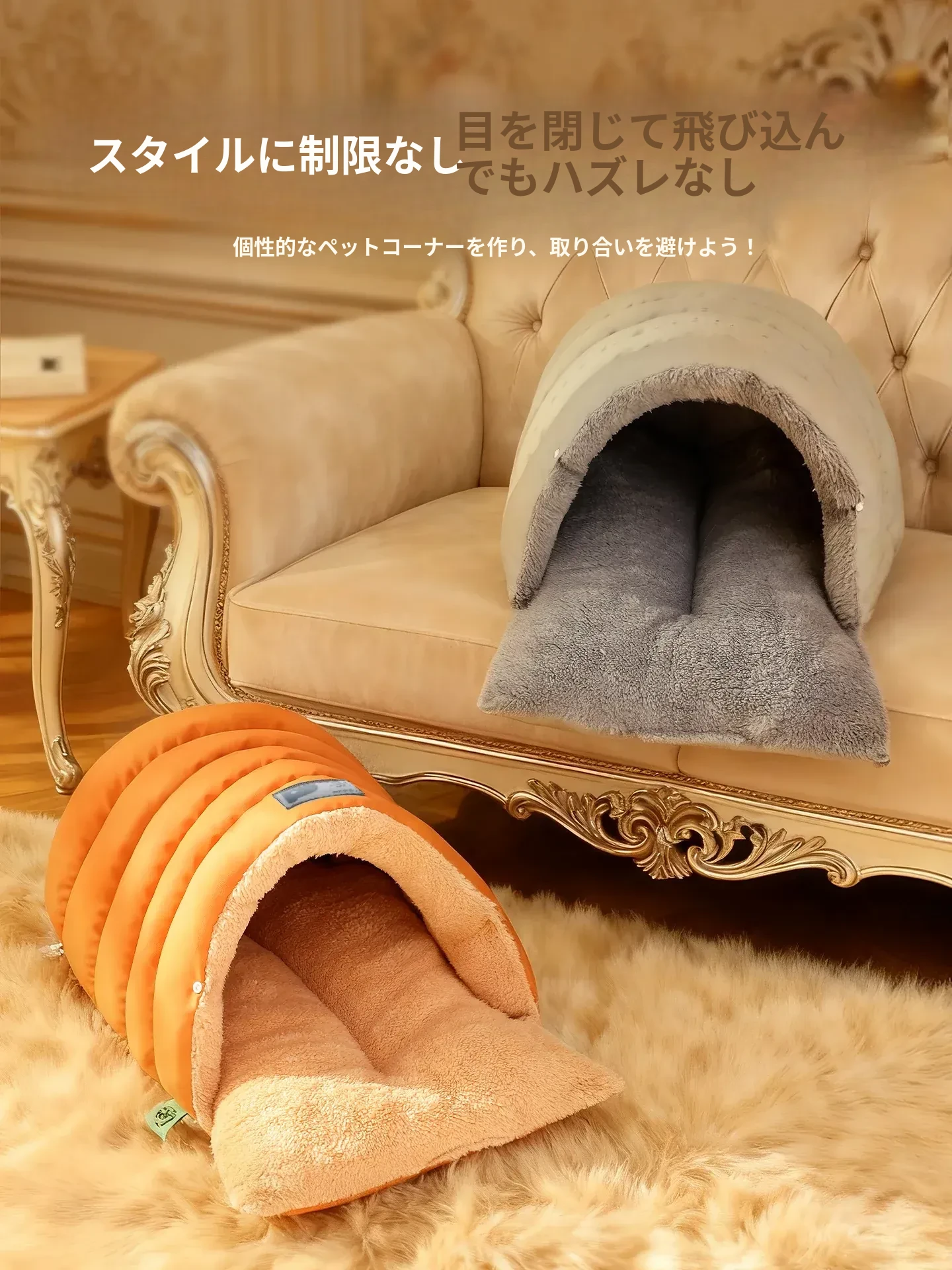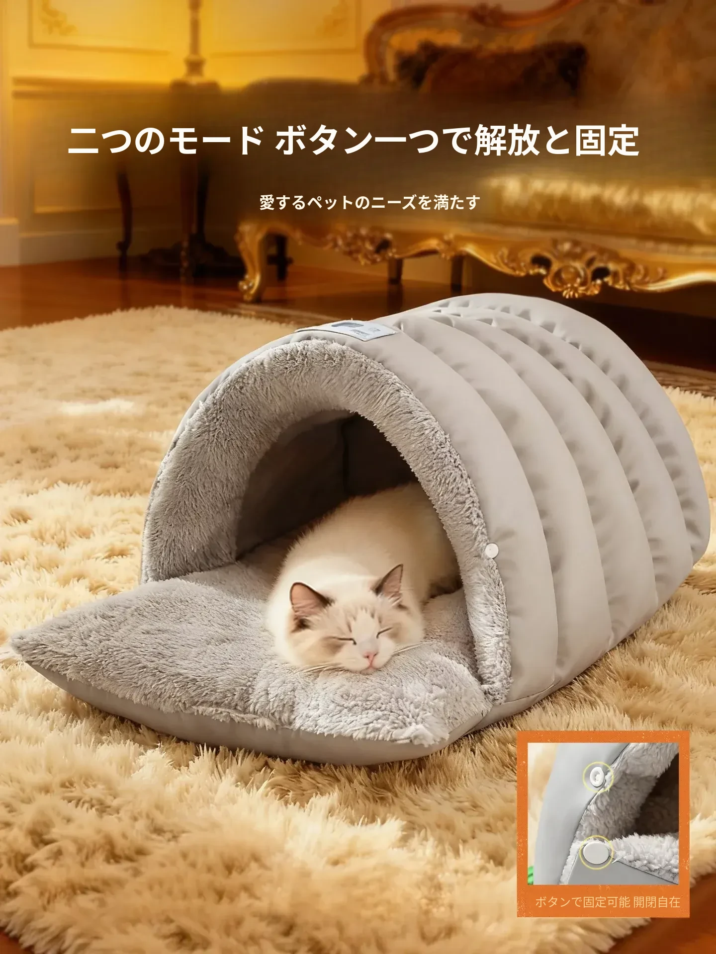 冬季にぴったり!保温性抜群の半封閉型猫ベッド - 厚手の幼猫用スリープバッグで、四季を通じて快適な睡眠を提供します。愛猫のための暖かいお家を今すぐ手に入れて、冬の寒さから守りましょう!