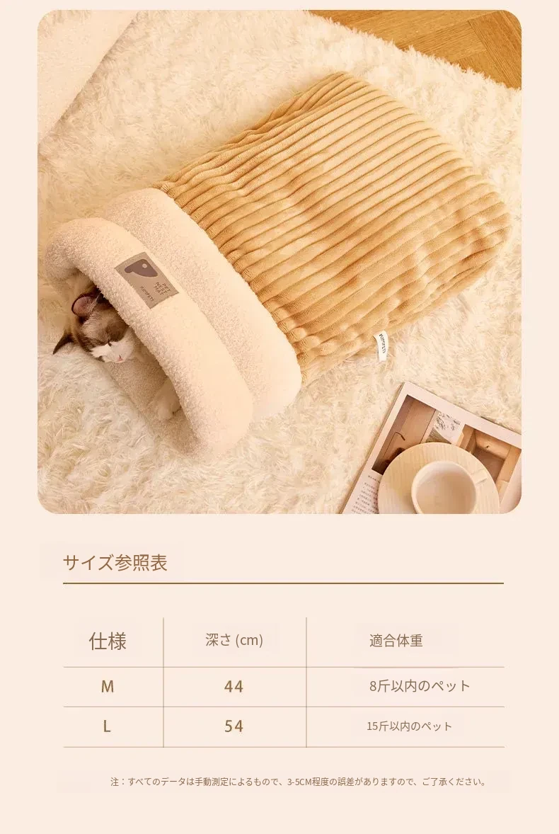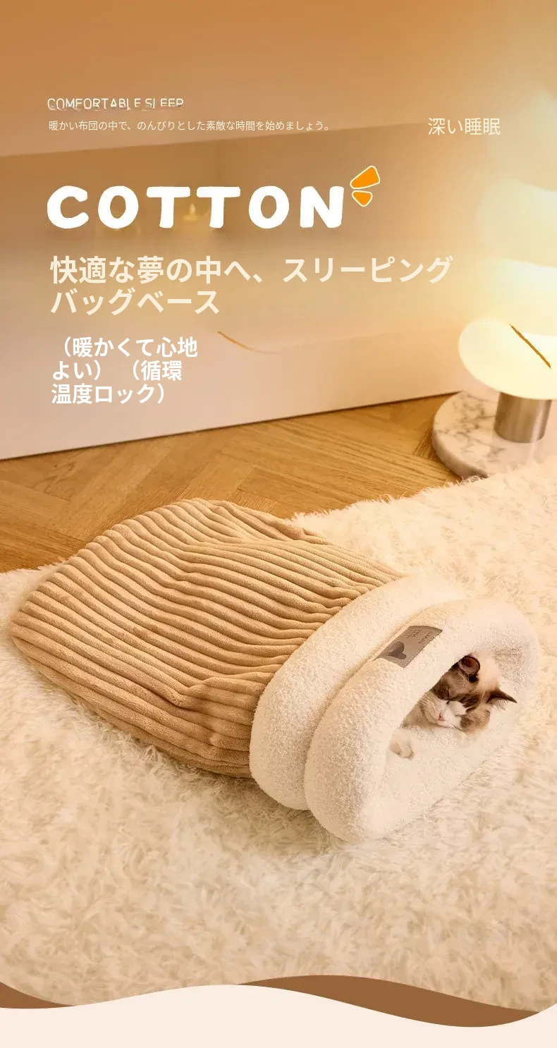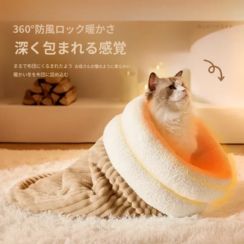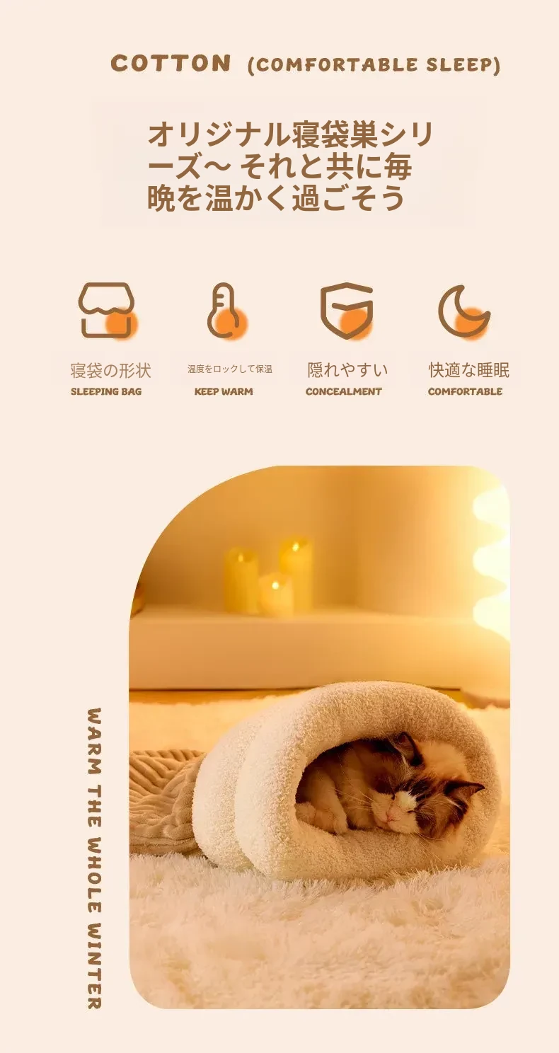 冬の猫のための暖かいベッド!冬にぴったりな猫用スリーピングバッグ、子猫も安心して眠れる快適なマット。寒い季節に愛猫をしっかり包み込む、暖かさ満点のペットベッド。