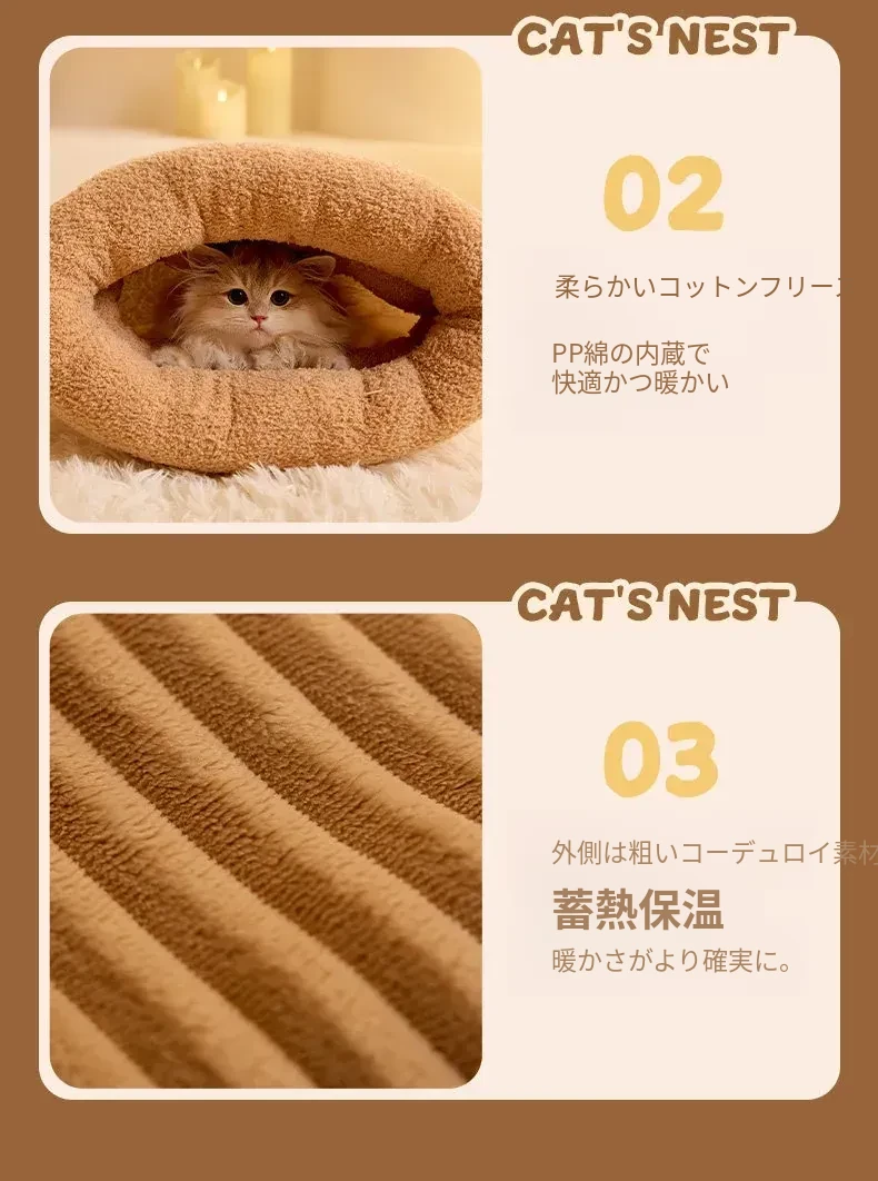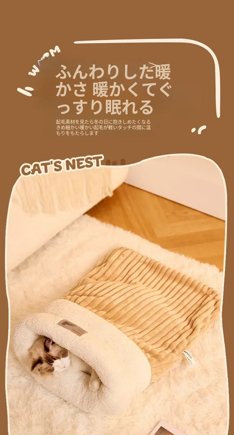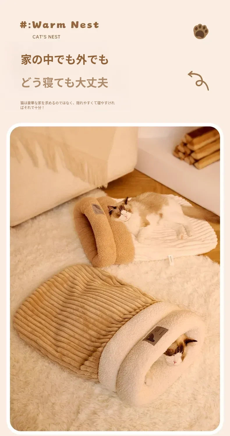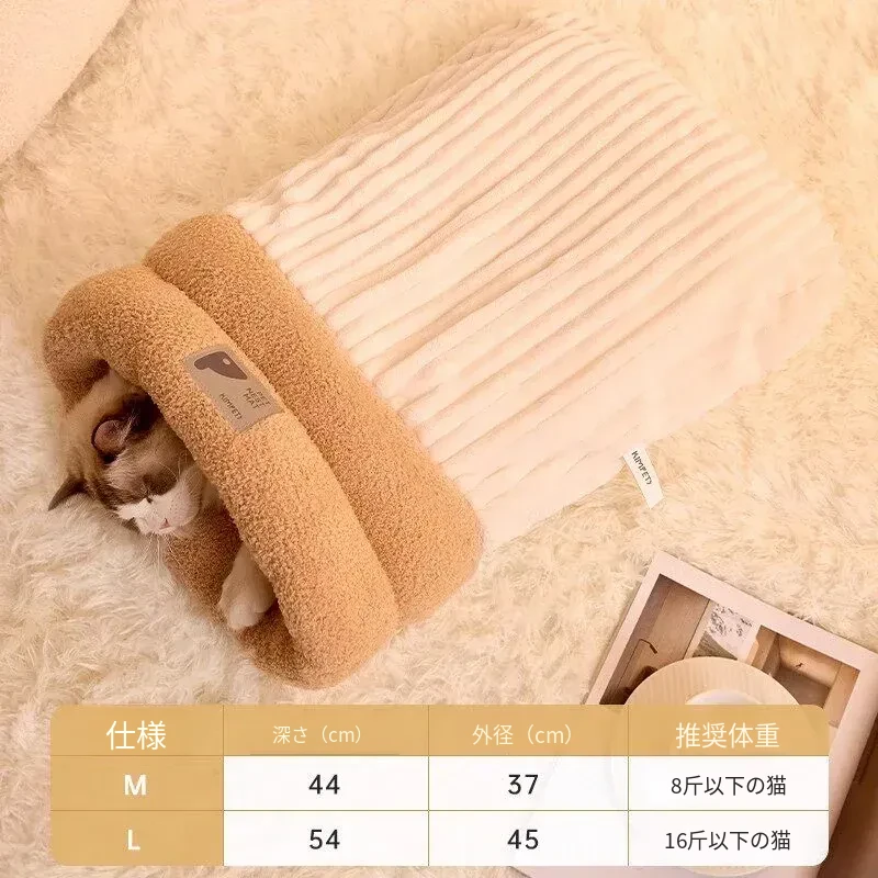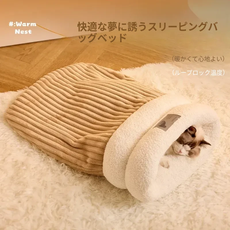 冬の猫のための暖かいベッド!冬にぴったりな猫用スリーピングバッグ、子猫も安心して眠れる快適なマット。寒い季節に愛猫をしっかり包み込む、暖かさ満点のペットベッド。