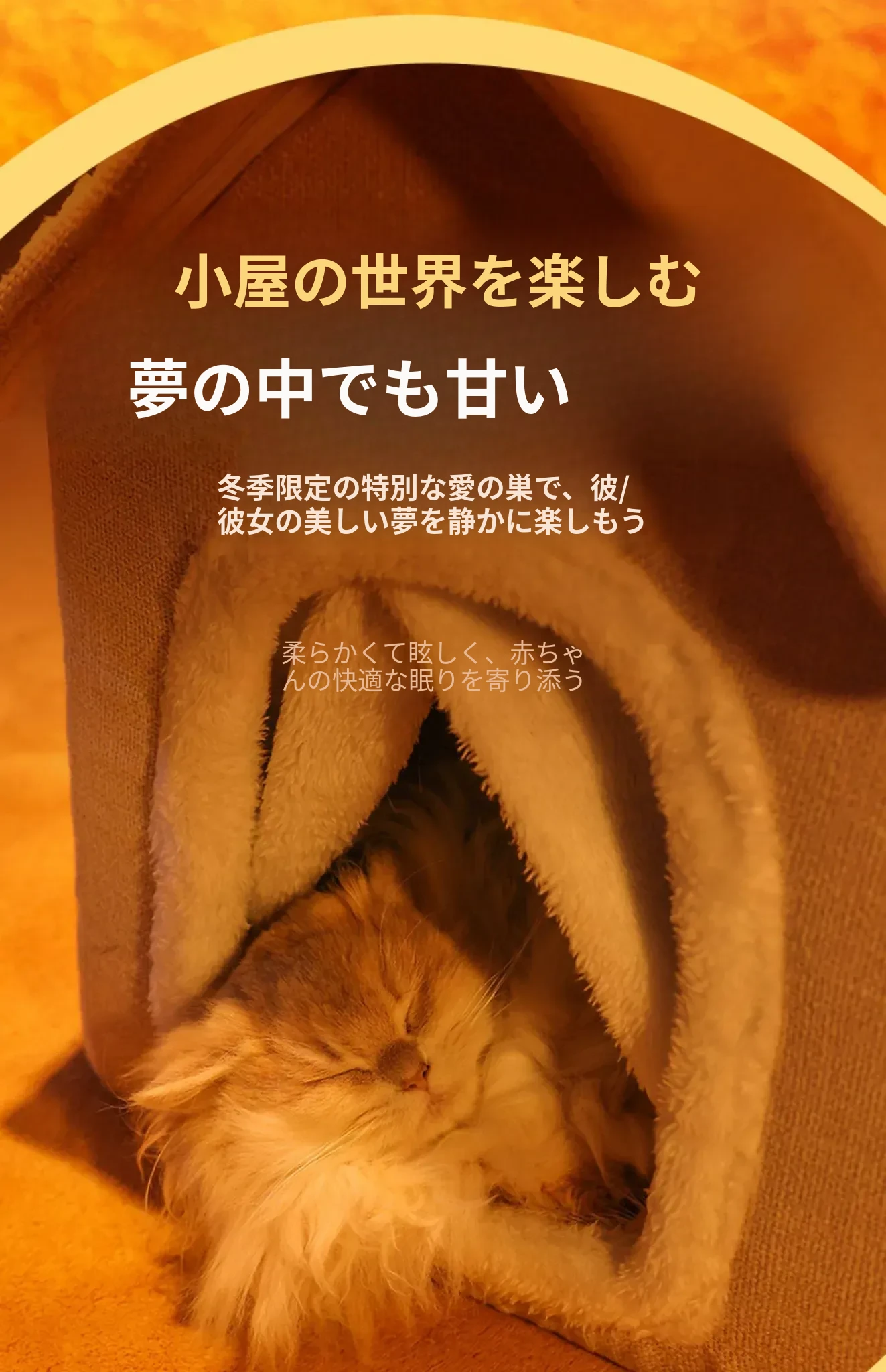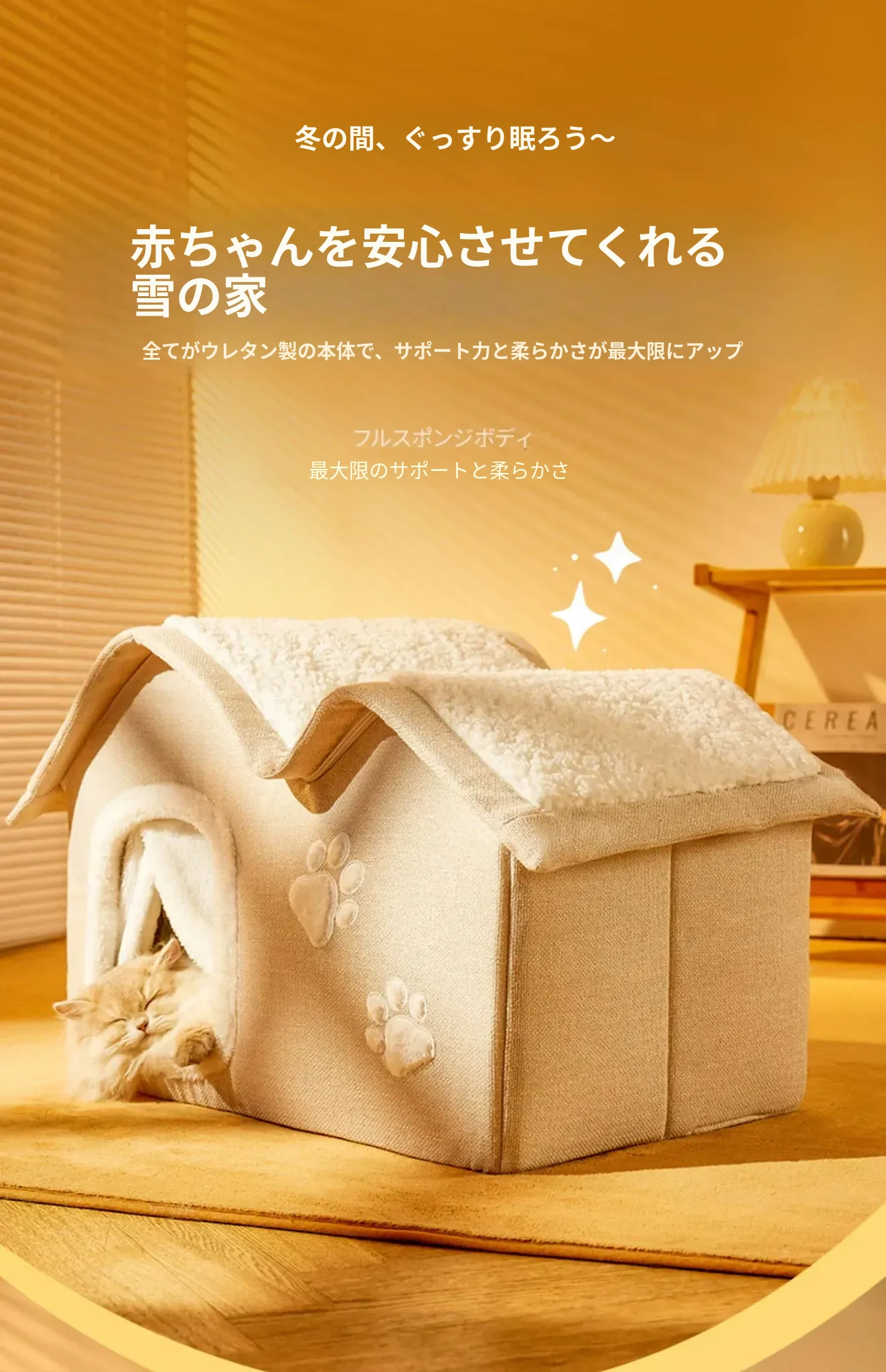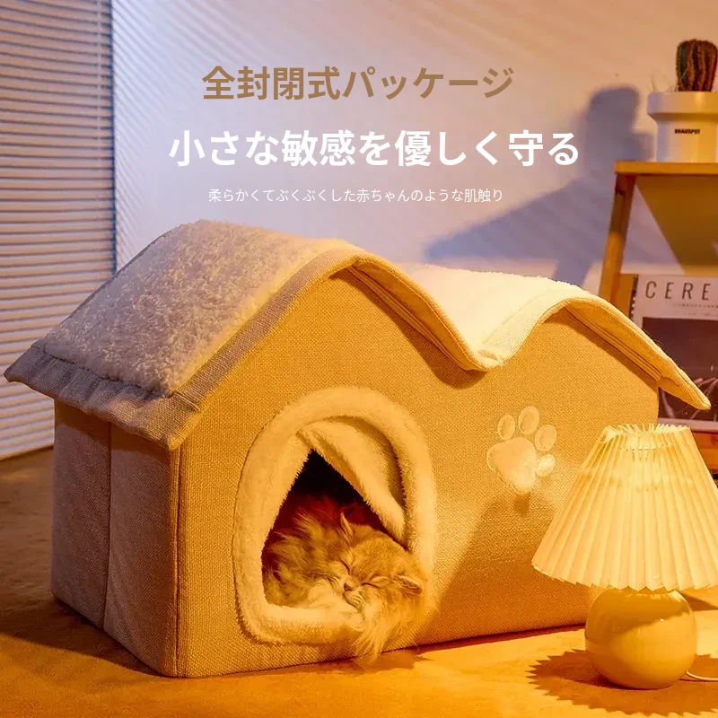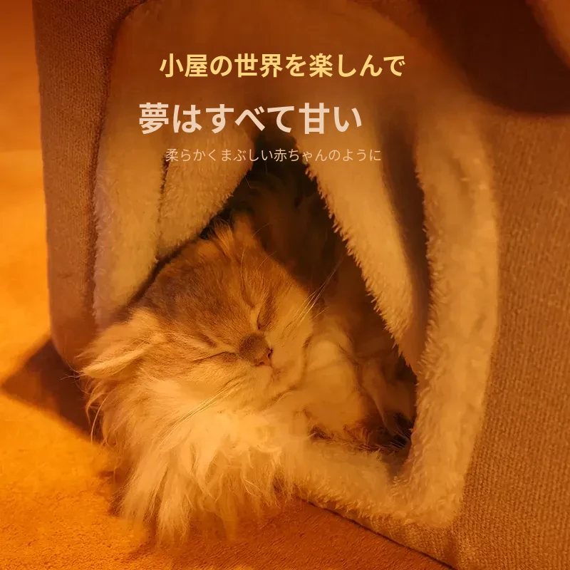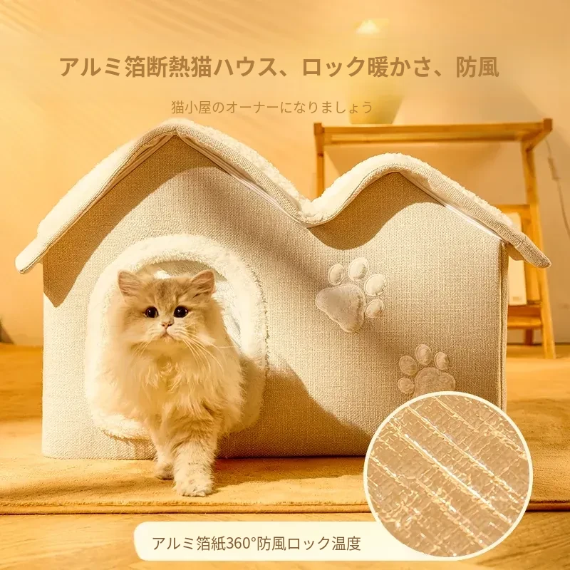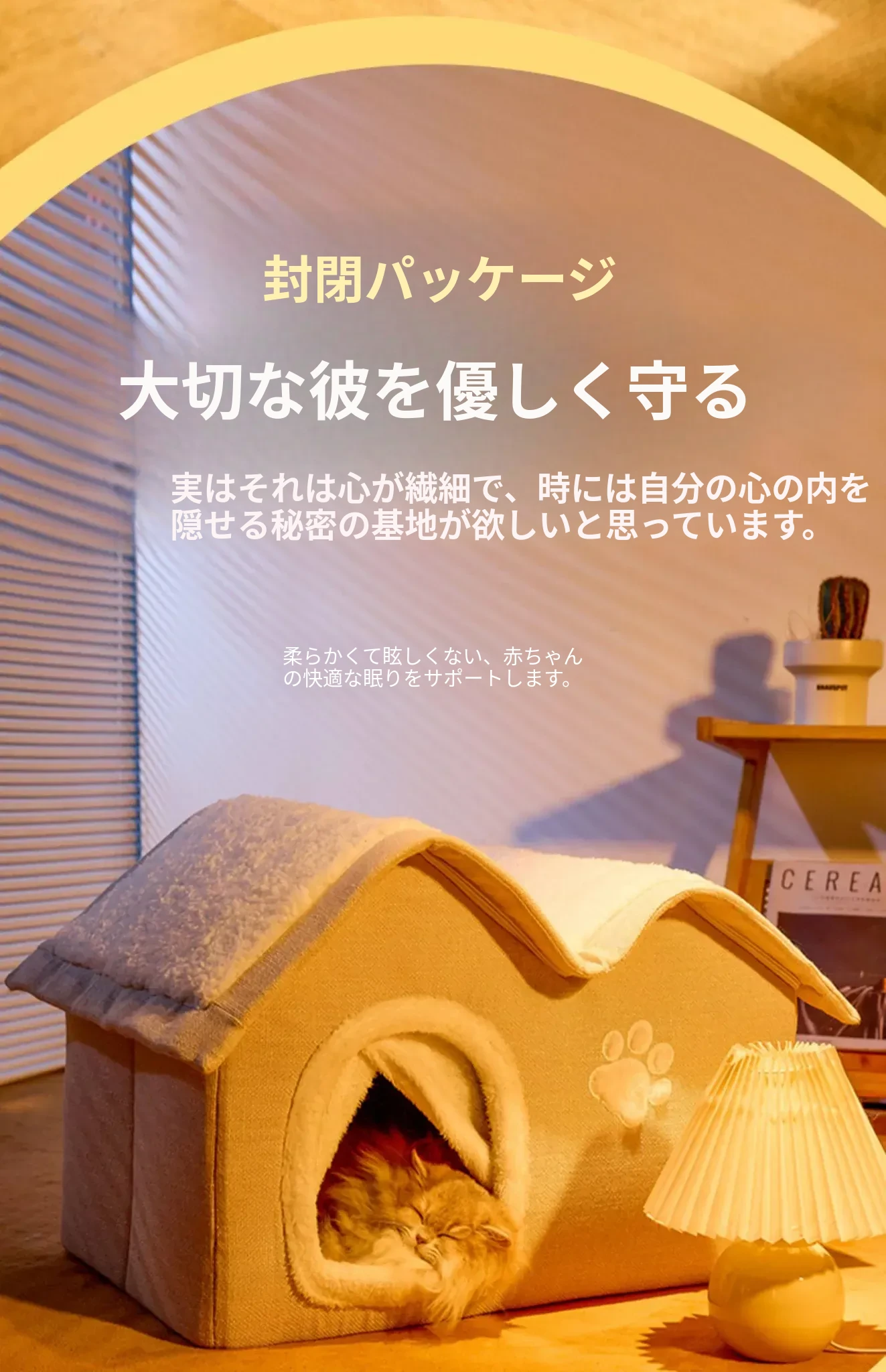 冬の寒さから守る!洗える封閉式猫ハウス - 快適な猫の寝床、ペットのための冬用ベッド!愛猫が暖かく眠れる理想的な空間!