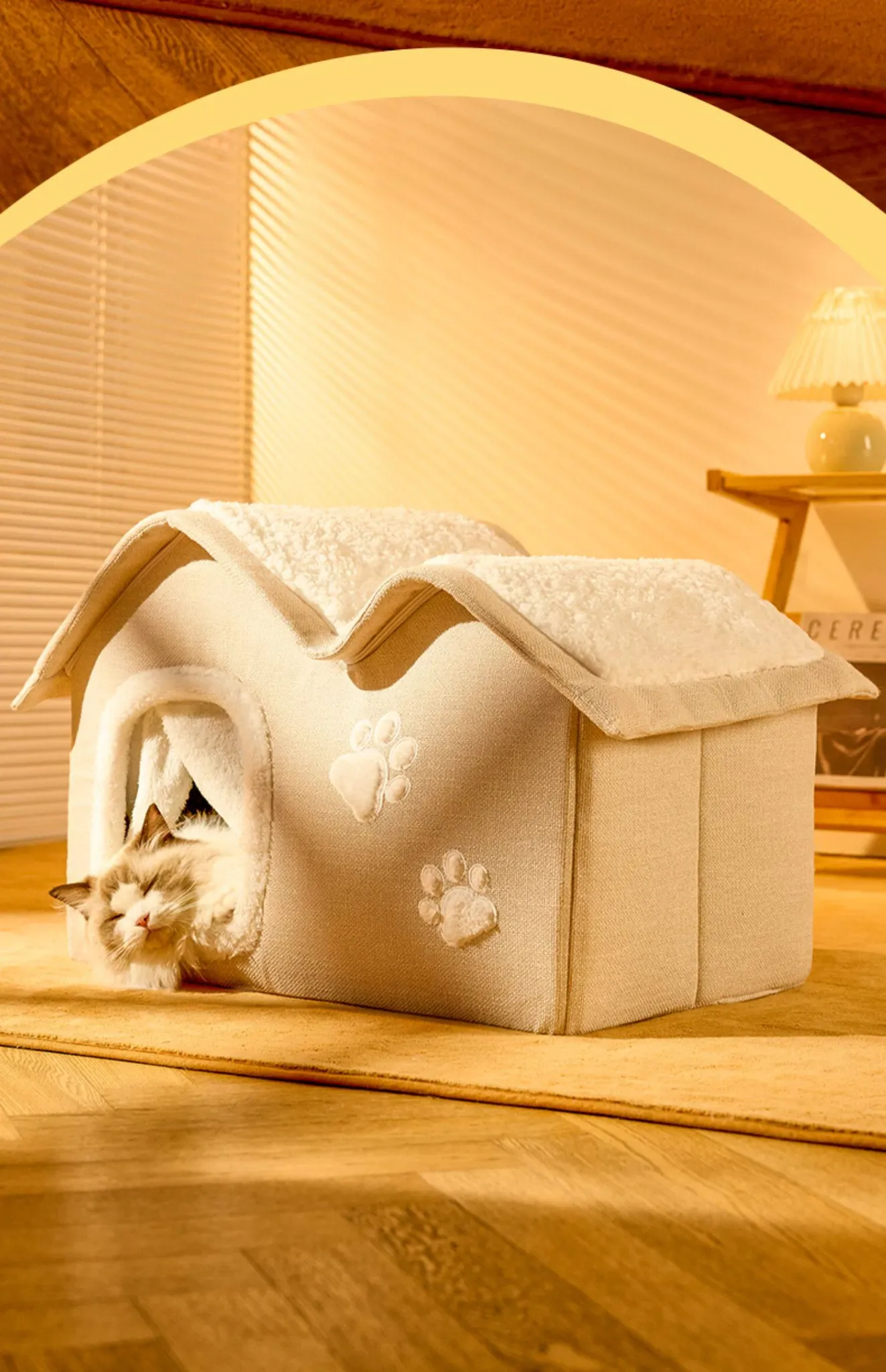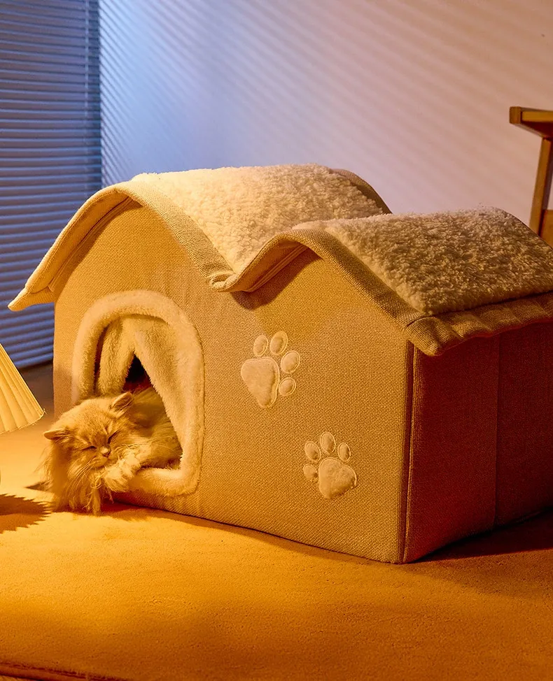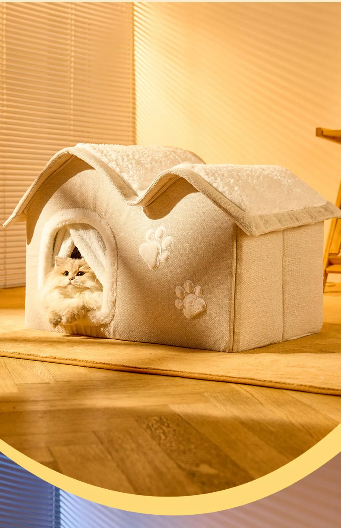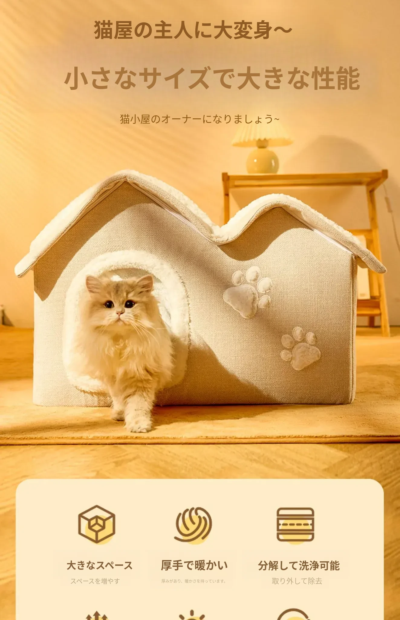 冬の寒さから守る!洗える封閉式猫ハウス - 快適な猫の寝床、ペットのための冬用ベッド!愛猫が暖かく眠れる理想的な空間!