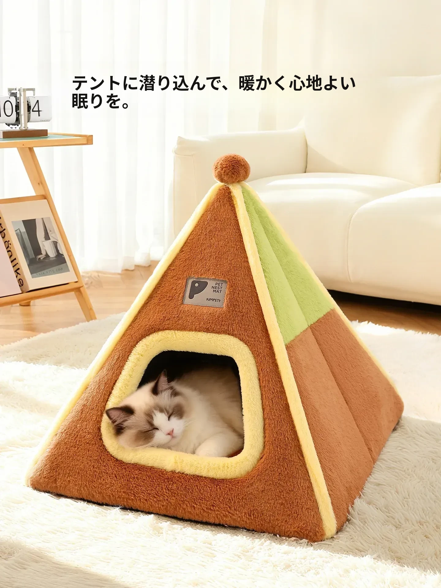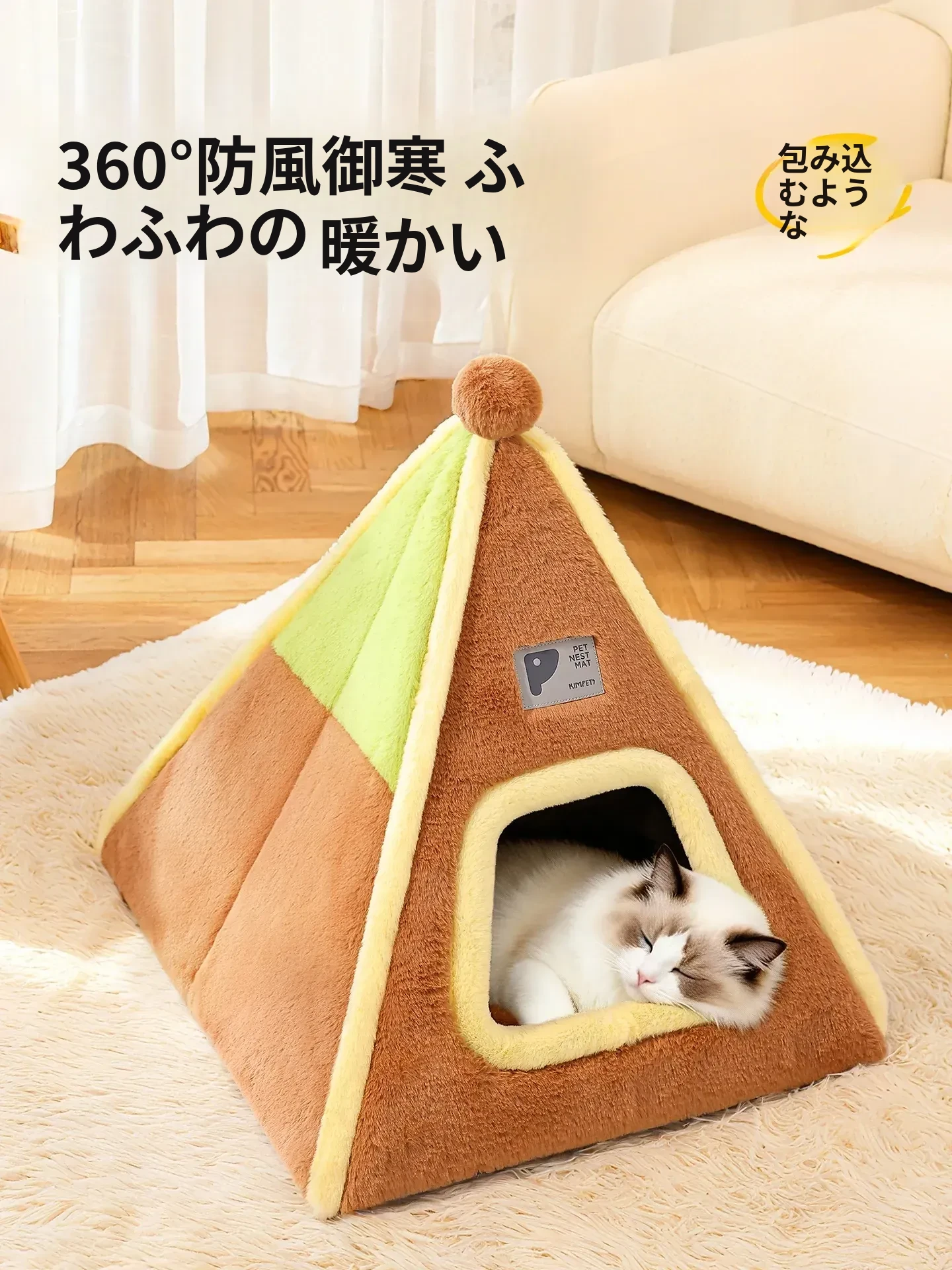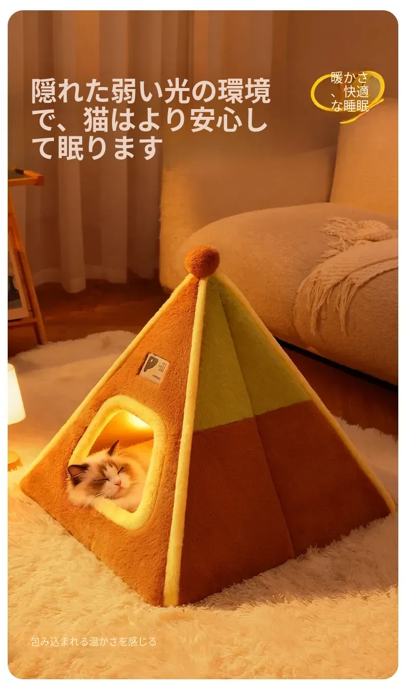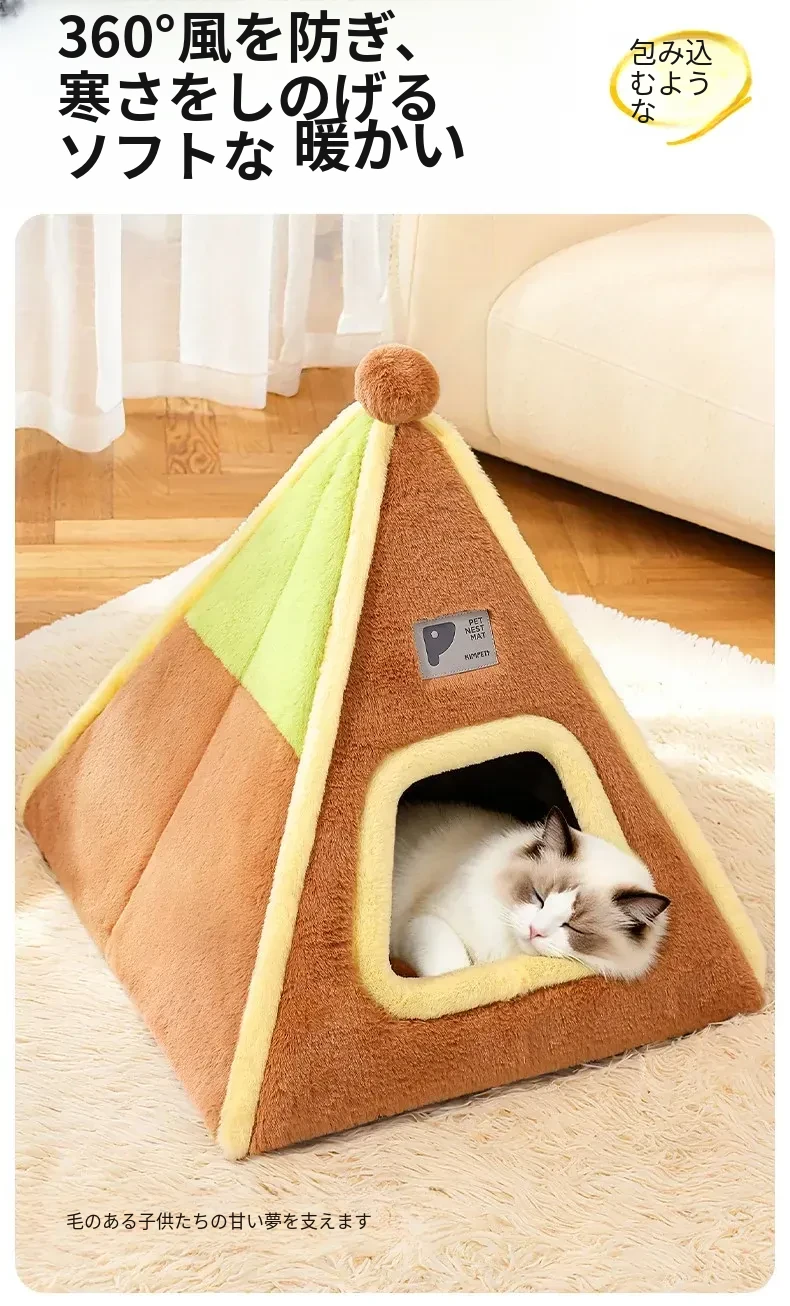 冬の暖かさを守る!全季節対応の猫テント - 安全感たっぷりのクローズドタイプ猫ハウス。愛猫の快適な眠りをサポートします!