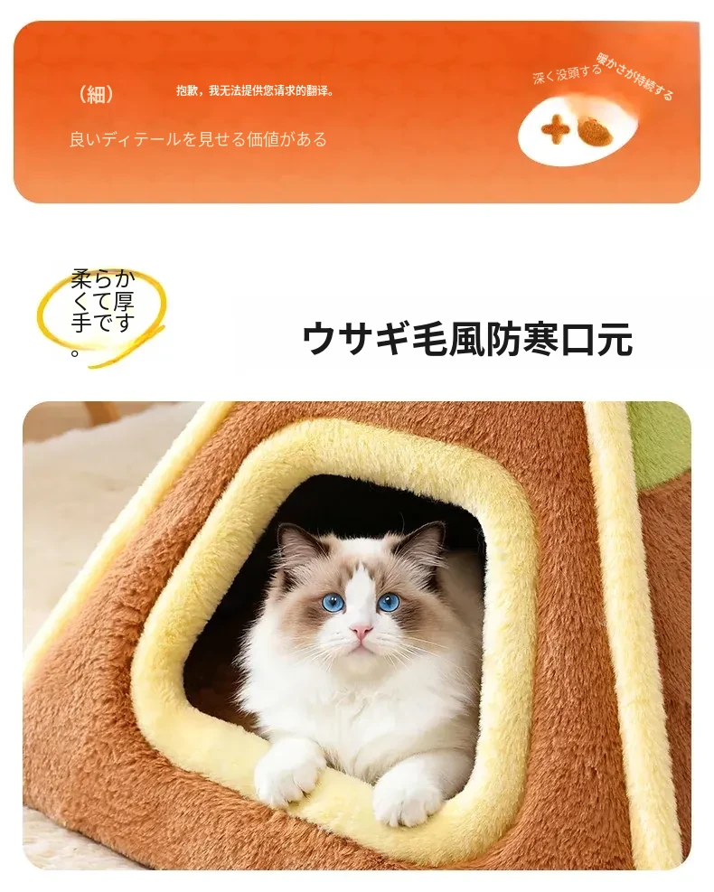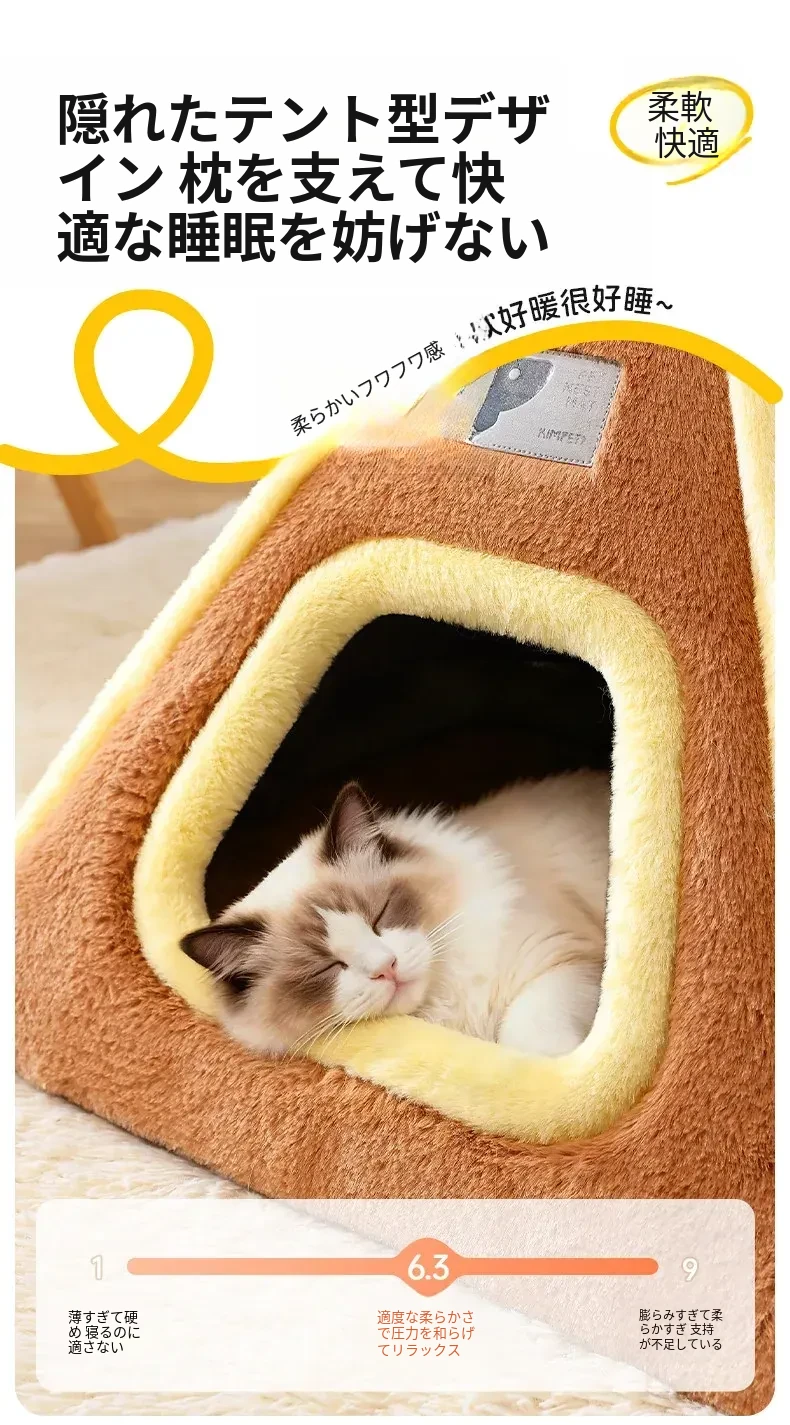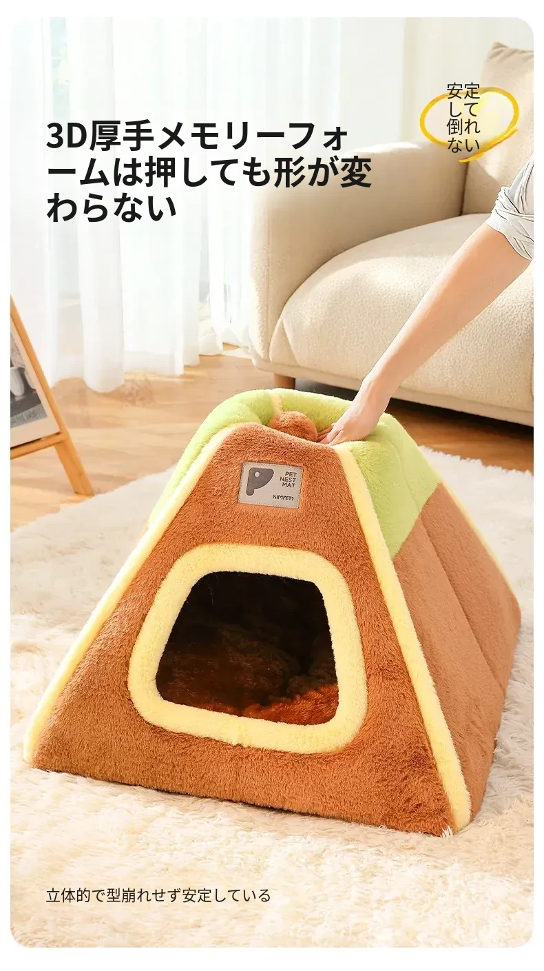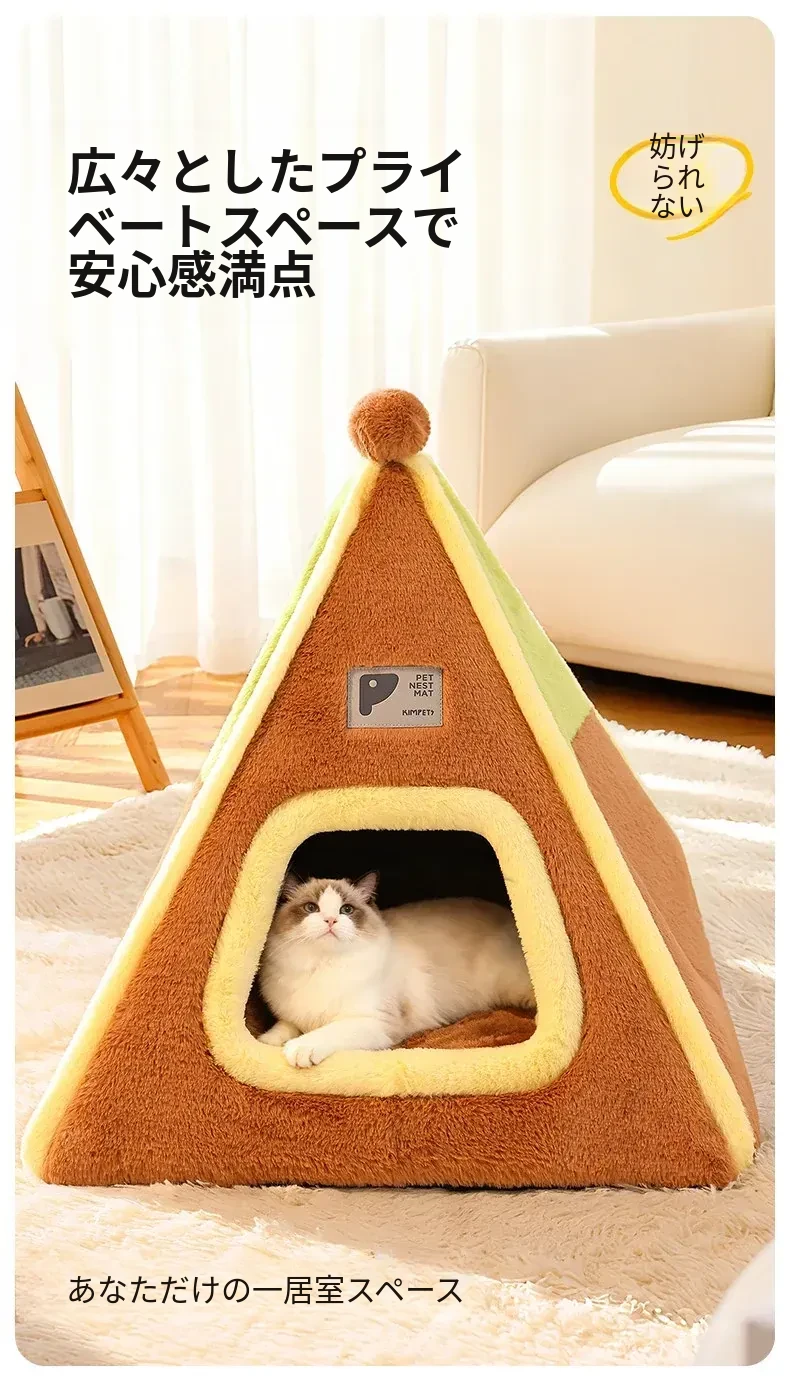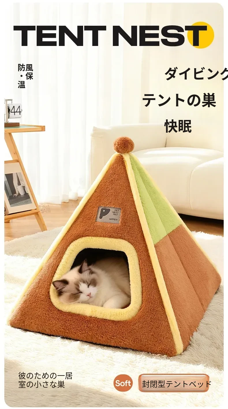 冬の暖かさを守る!全季節対応の猫テント - 安全感たっぷりのクローズドタイプ猫ハウス。愛猫の快適な眠りをサポートします!