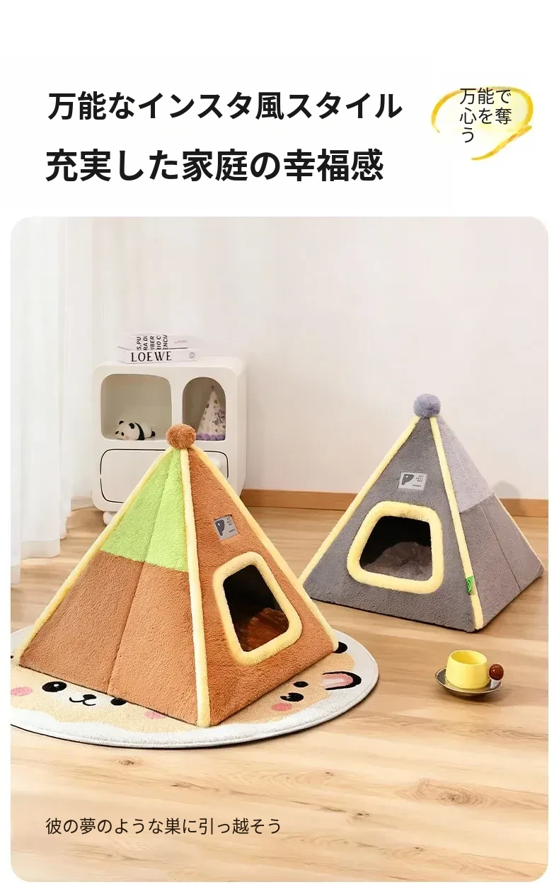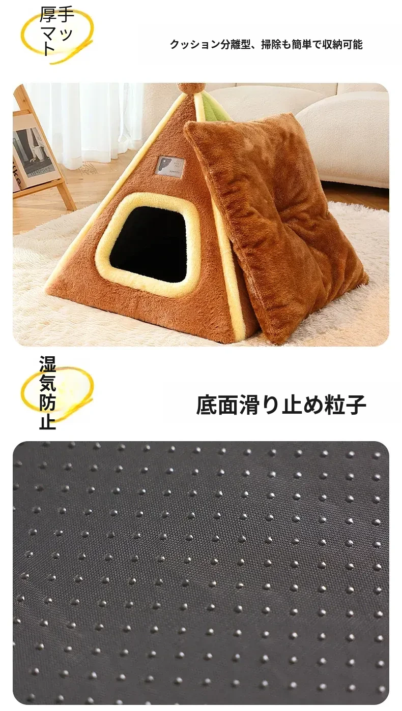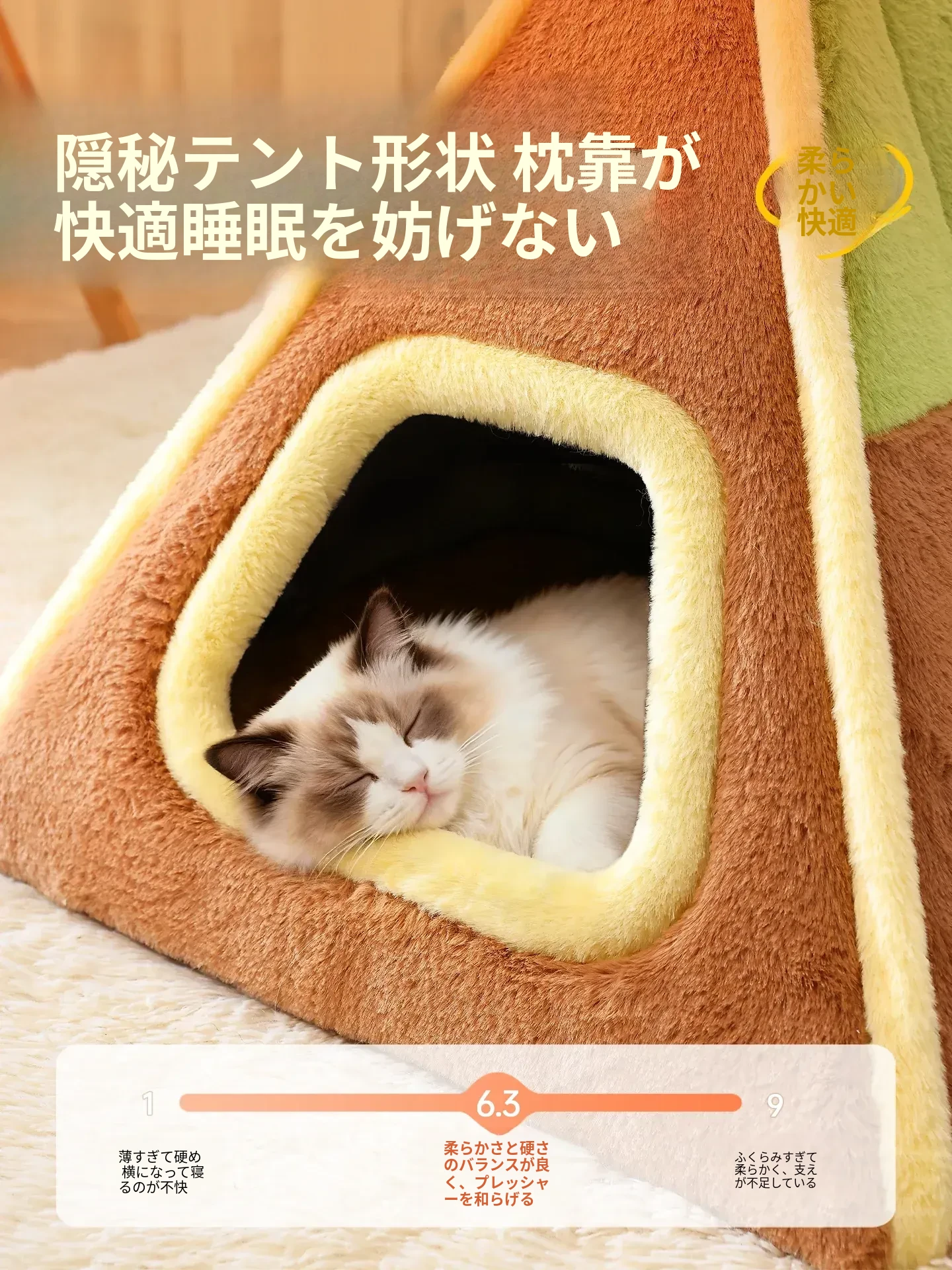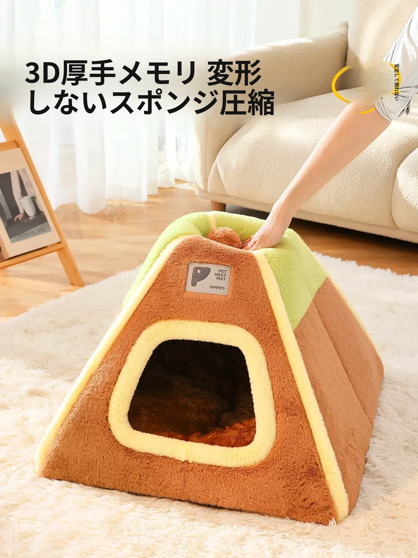 冬の暖かさを守る!全季節対応の猫テント - 安全感たっぷりのクローズドタイプ猫ハウス。愛猫の快適な眠りをサポートします!