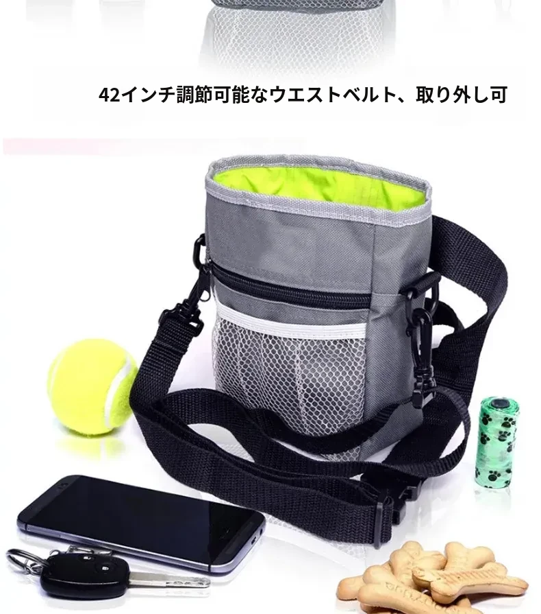 犬のトレーニングに最適!ゴールデンレトリバー、シェパード、ボーダーコリーにぴったりのウエストポーチ。お散歩中のトリーツやおもちゃをスマートに収納。快適なペットトレーニングを実現するアイテムです!