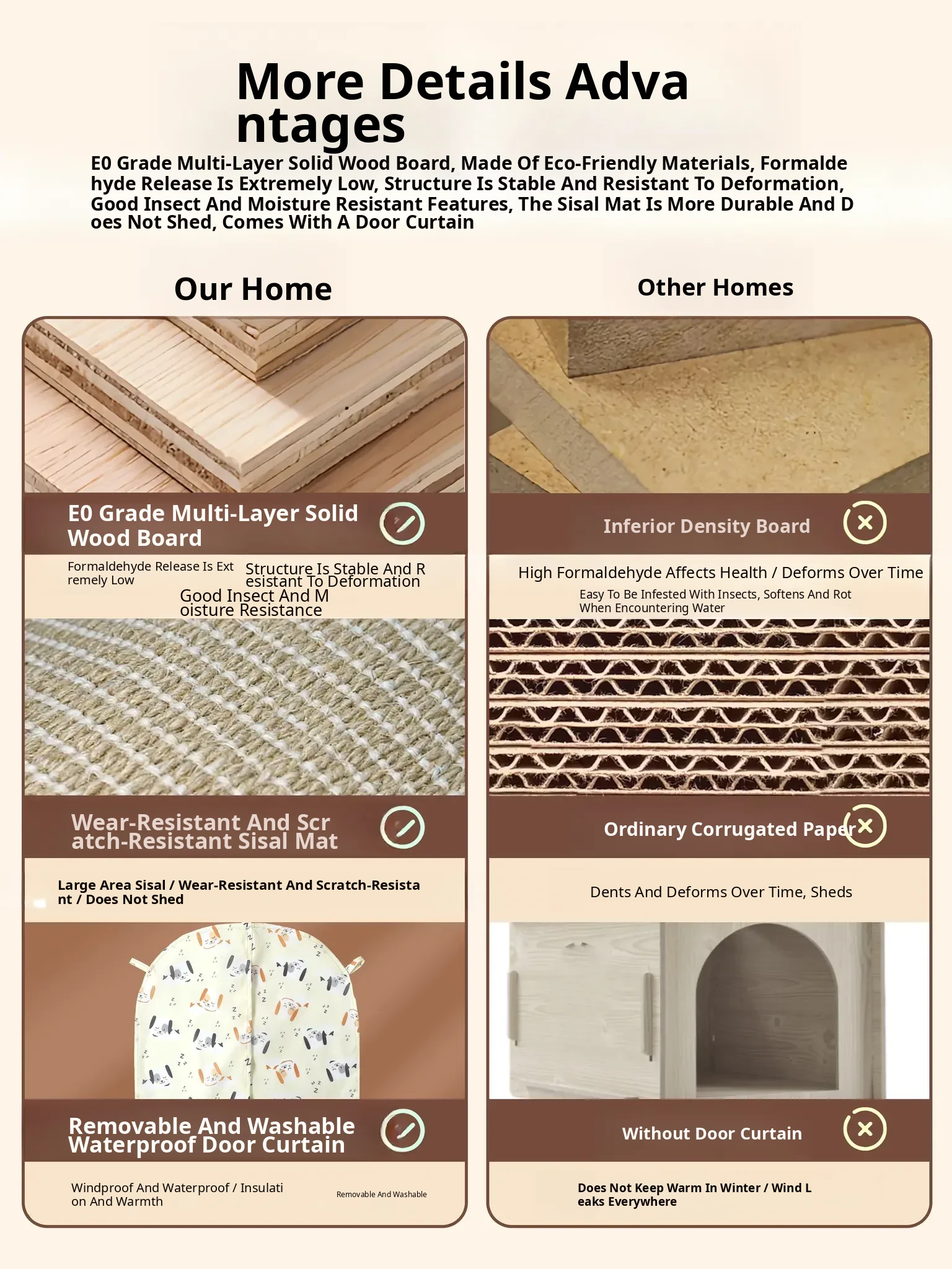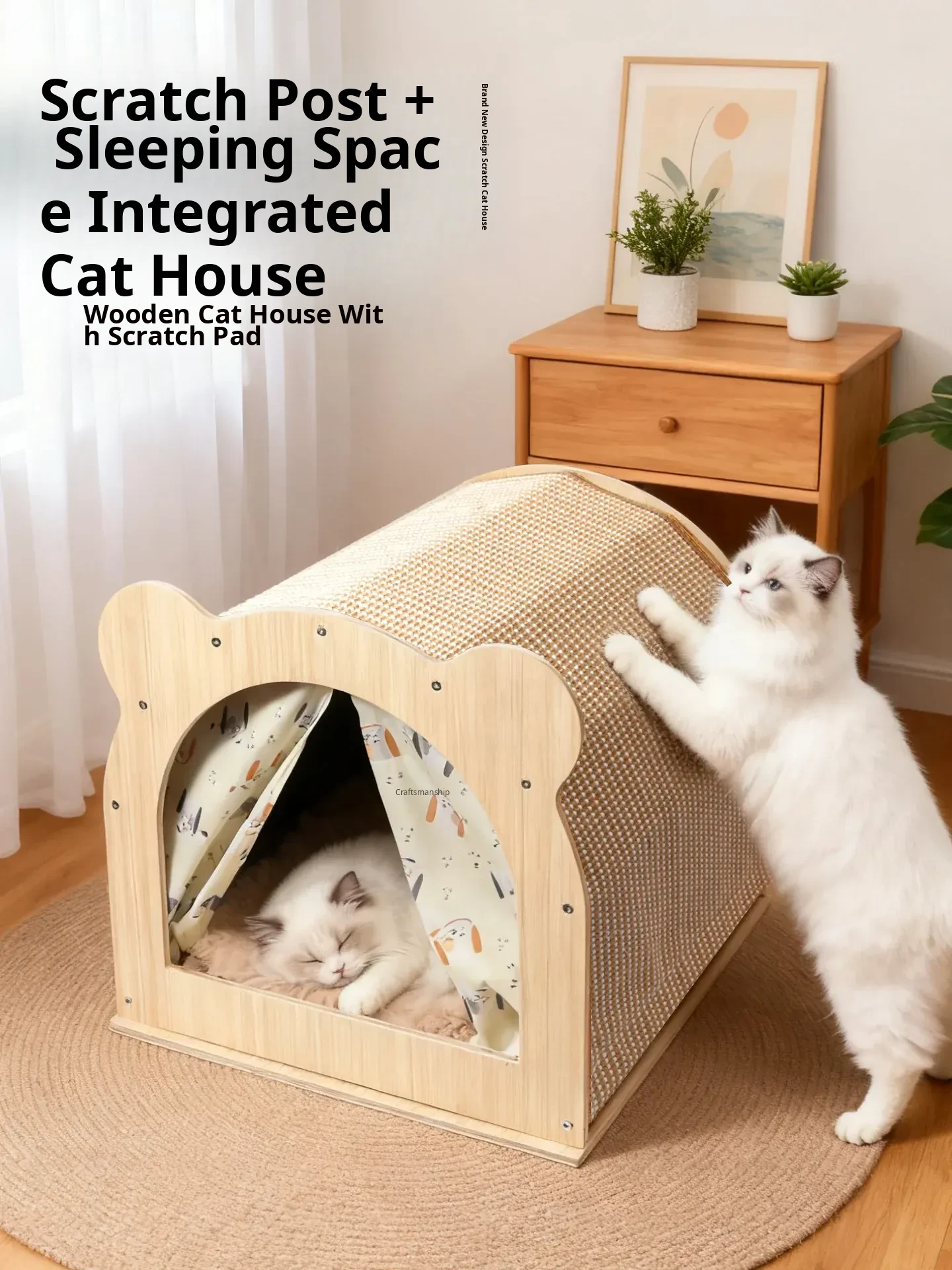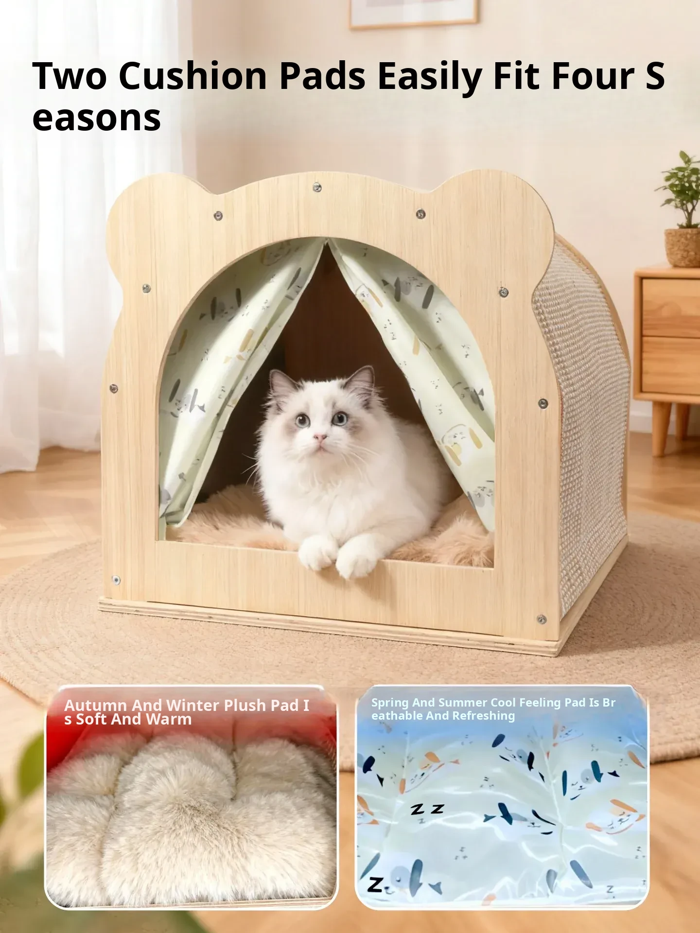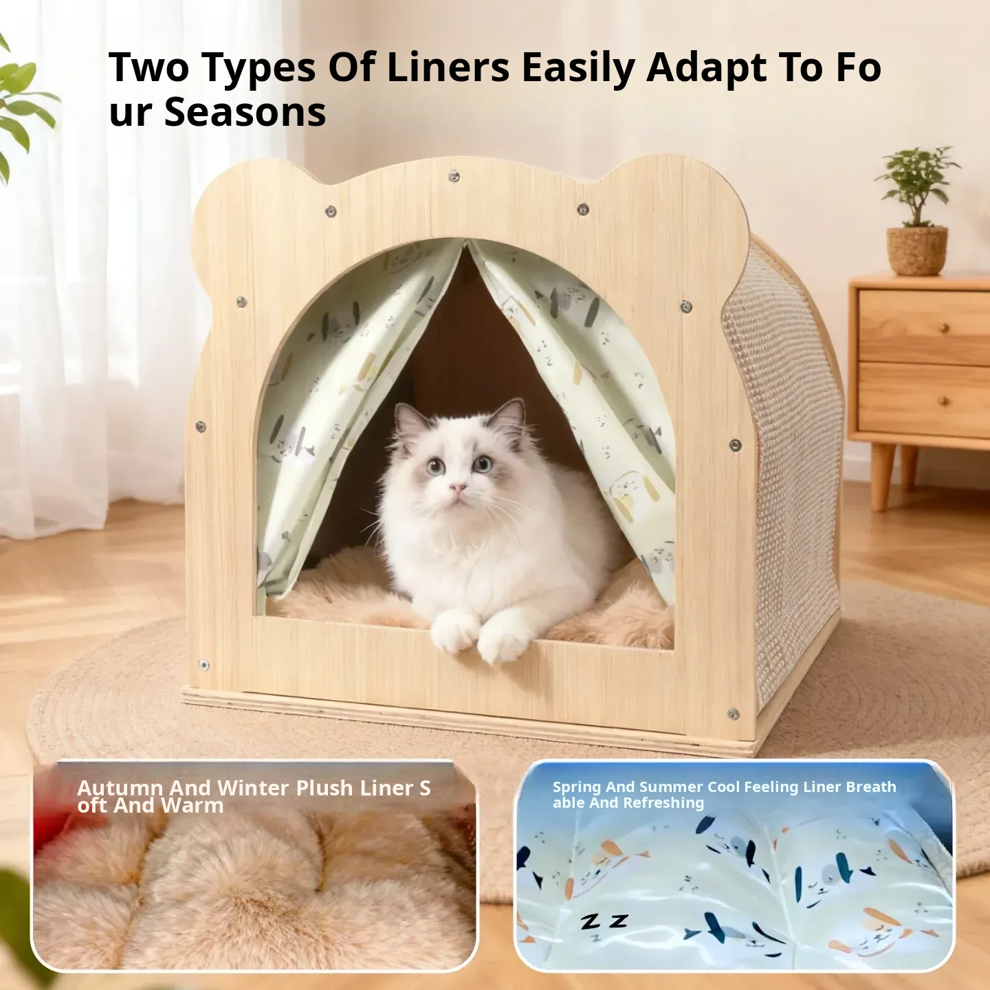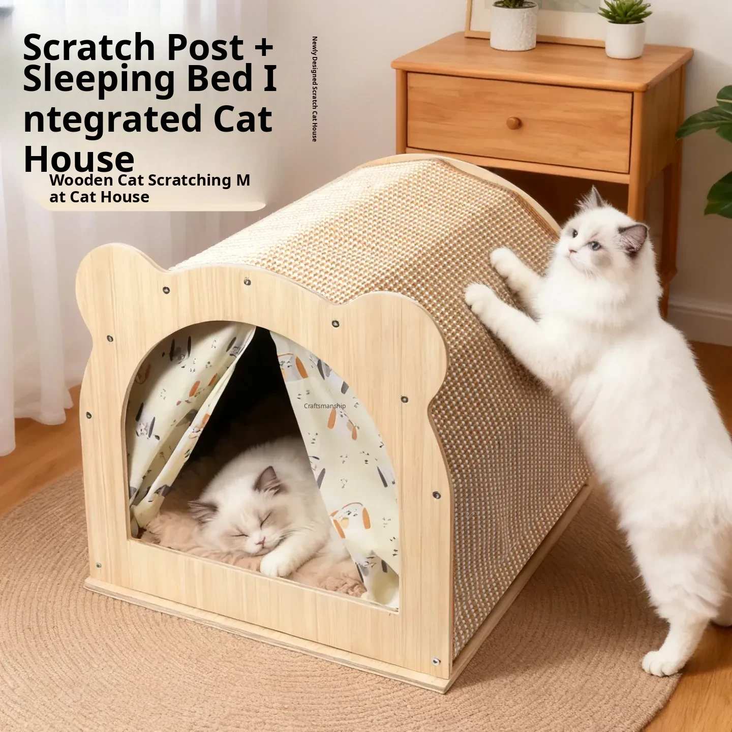 Durable Cat House with Integrated Scratching Board - Winter Warmth & Year-Round Fun for Your Feline Friend, No Shedding, Perfect for Playtime & Cozy Naps!