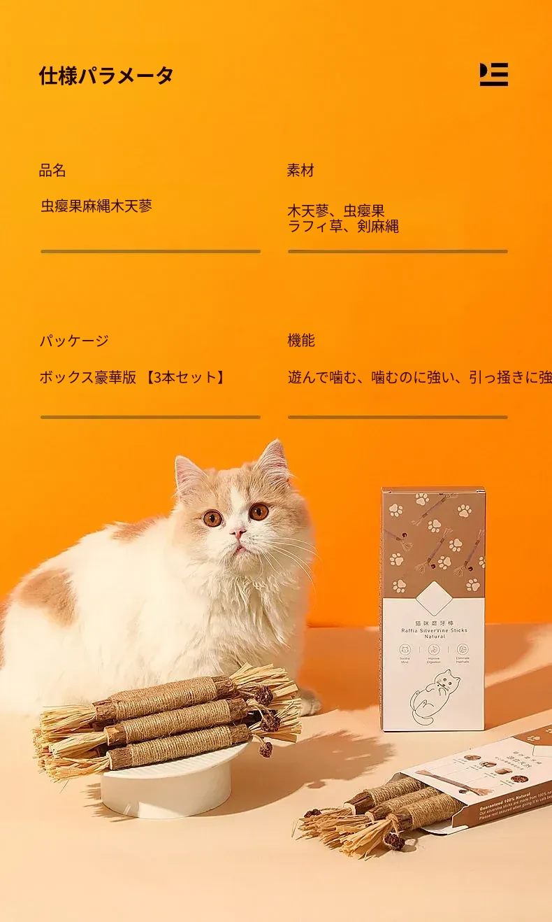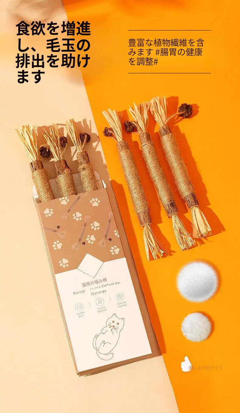 猫ちゃんのための木天蓼噛み棒!耐久性抜群で、楽しさ満点の猫おもちゃ。自動で猫を引きつけ、ストレス解消や運動不足の解消に最適です。愛猫との楽しいひと時をお楽しみください!