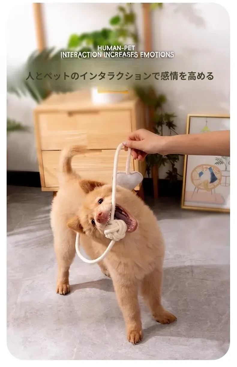 犬用骨型コットン噛むボール【アップグレード版-音声付き】