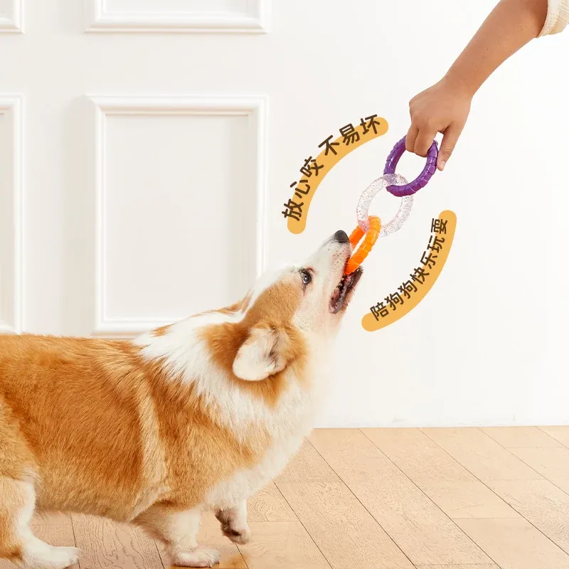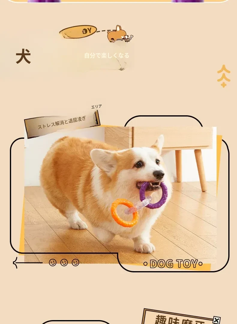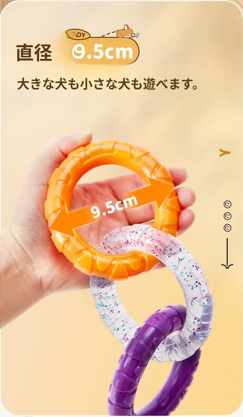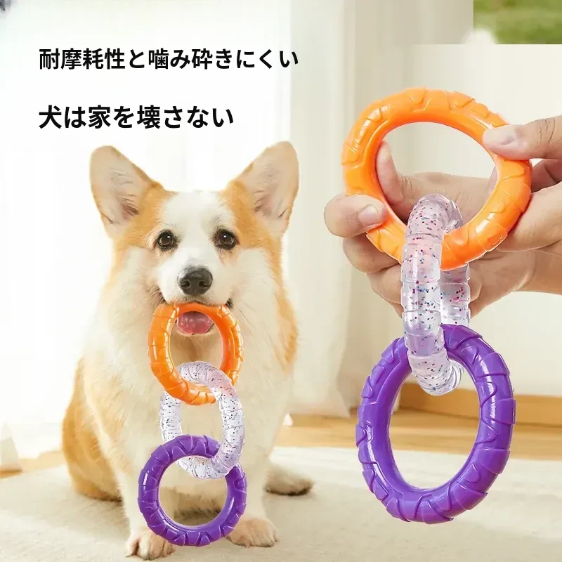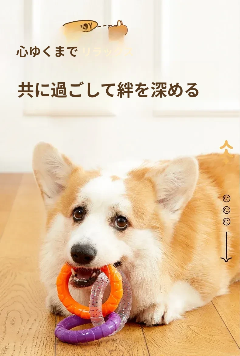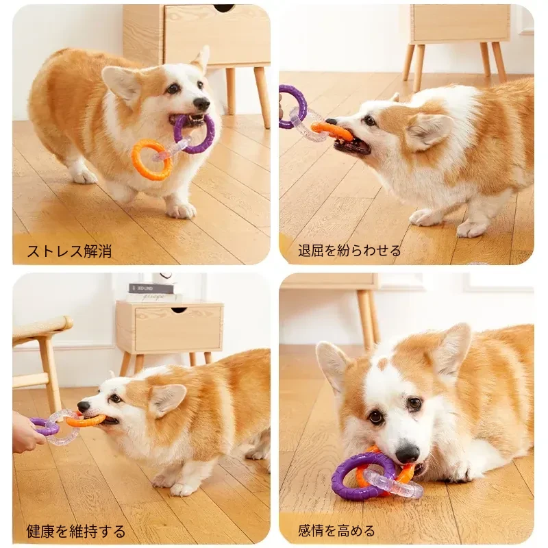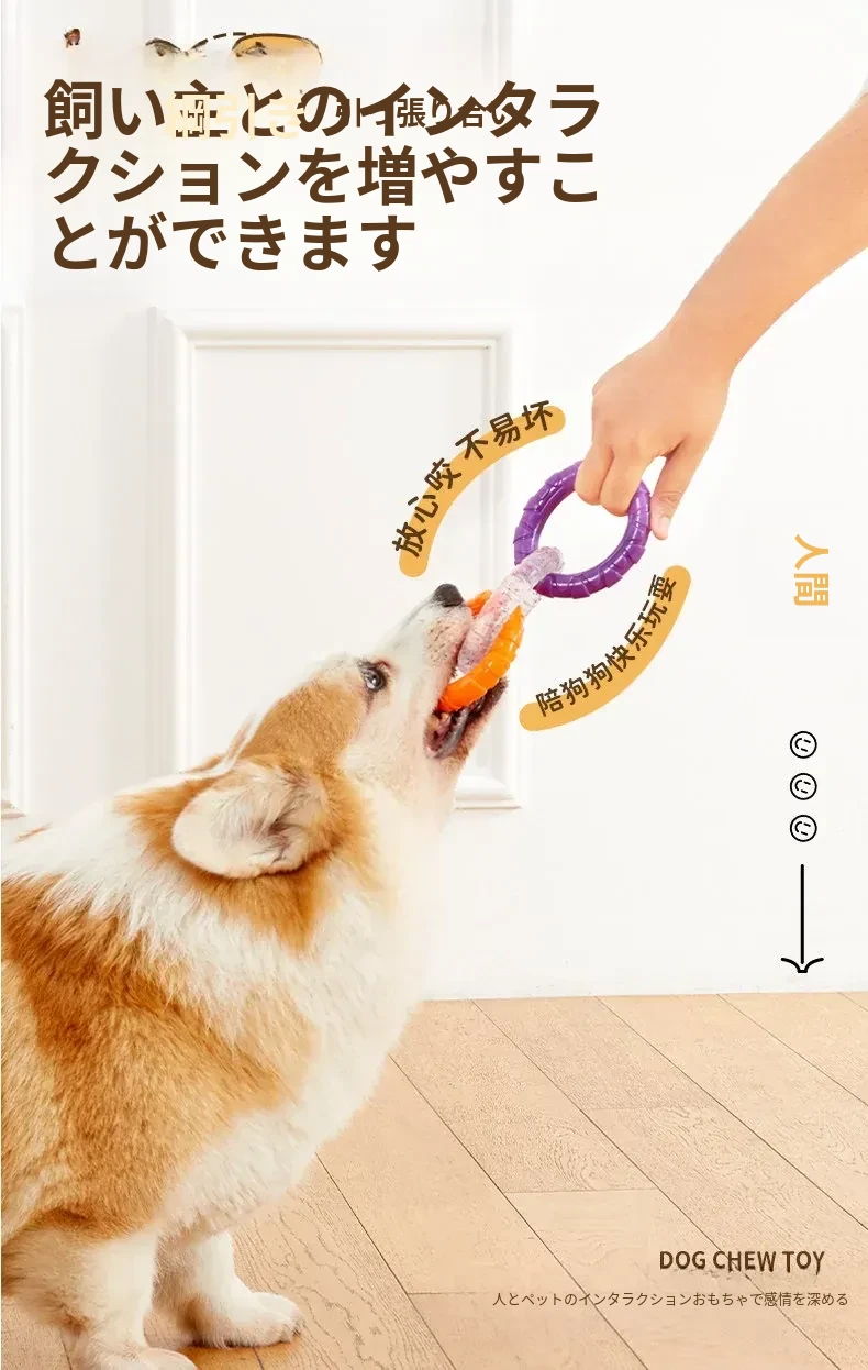 犬用ラバー引っ張りリング - 噛む力を鍛え、歯をきれいに保つおもちゃ!子犬や小型犬に最適なストレス解消アイテム!耐久性抜群で楽しい時間を提供します!