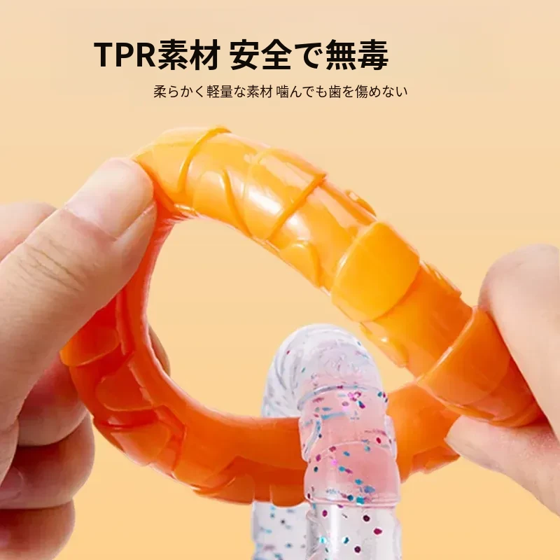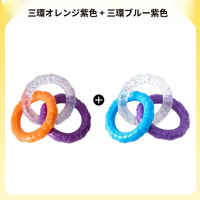 ⭐オレンジ紫色の三環噛み噛みリング - 1個入り【インタラクティブなストレス解消 噛み噛み・歯磨き】