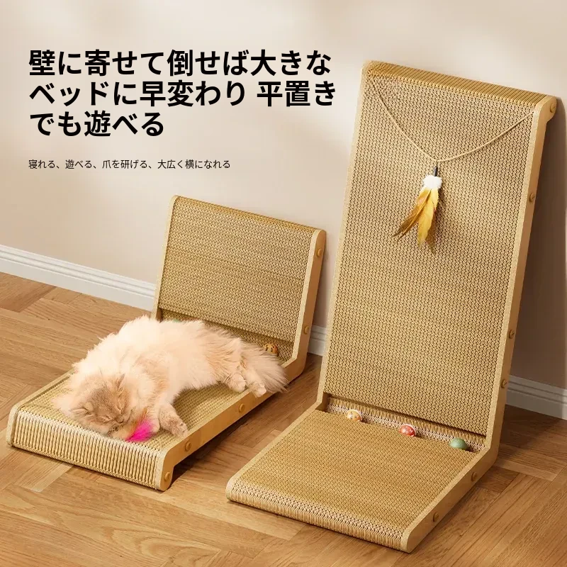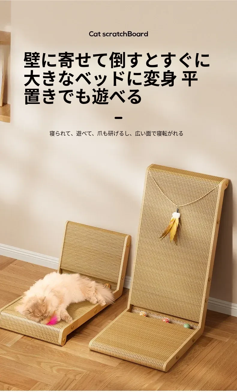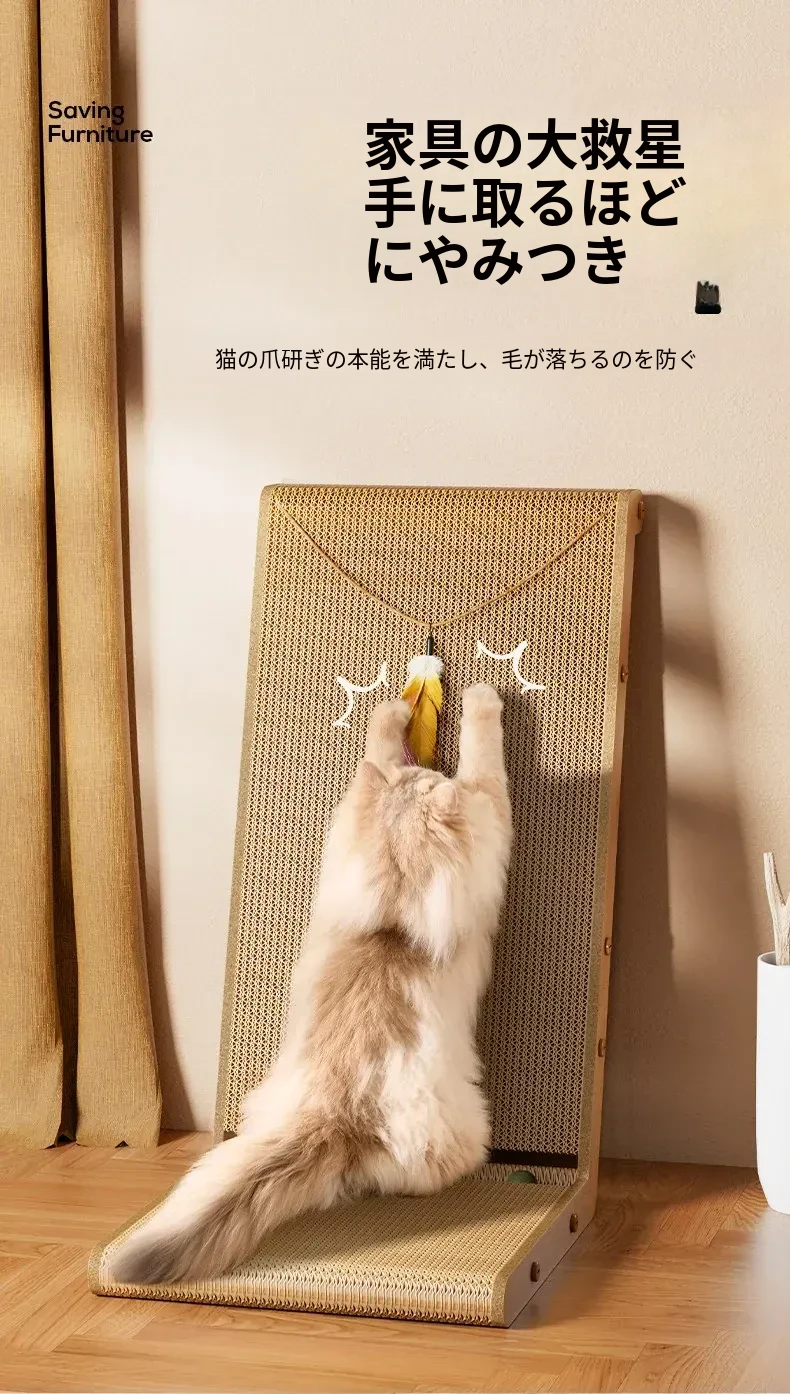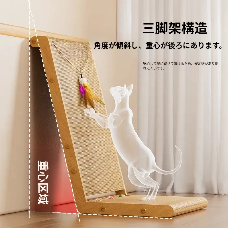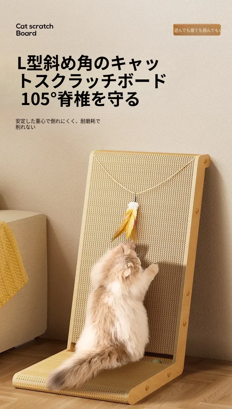 耐久性抜群のL型立て掛け式キャットスクラッチャー!キャットタワーや壁にぴったりフィット、猫ちゃんの爪研ぎと遊びを同時に楽しめる!無駄な毛屑が出ないから、清潔で安心。猫の快適なスペースを作りましょう!