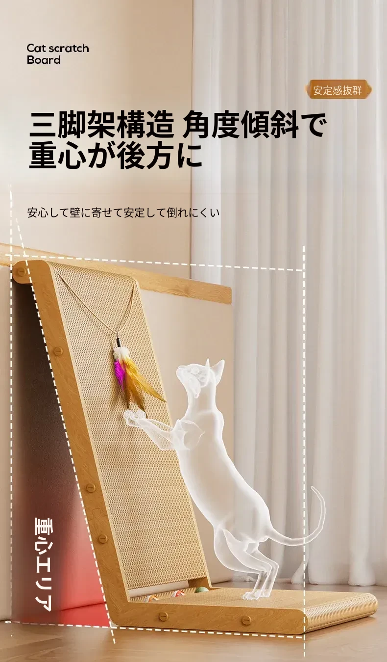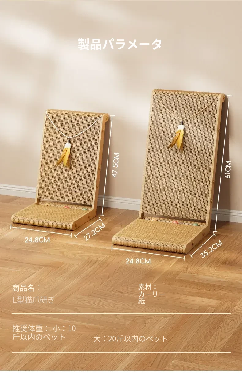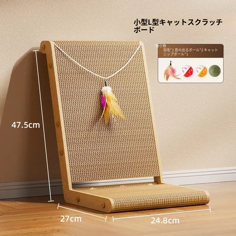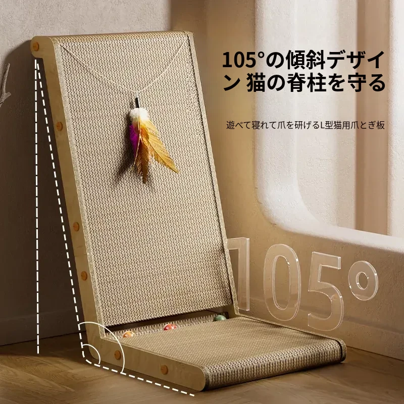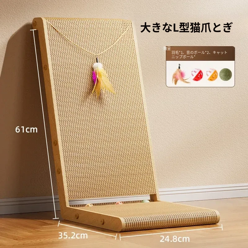 耐久性抜群のL型立て掛け式キャットスクラッチャー!キャットタワーや壁にぴったりフィット、猫ちゃんの爪研ぎと遊びを同時に楽しめる!無駄な毛屑が出ないから、清潔で安心。猫の快適なスペースを作りましょう!