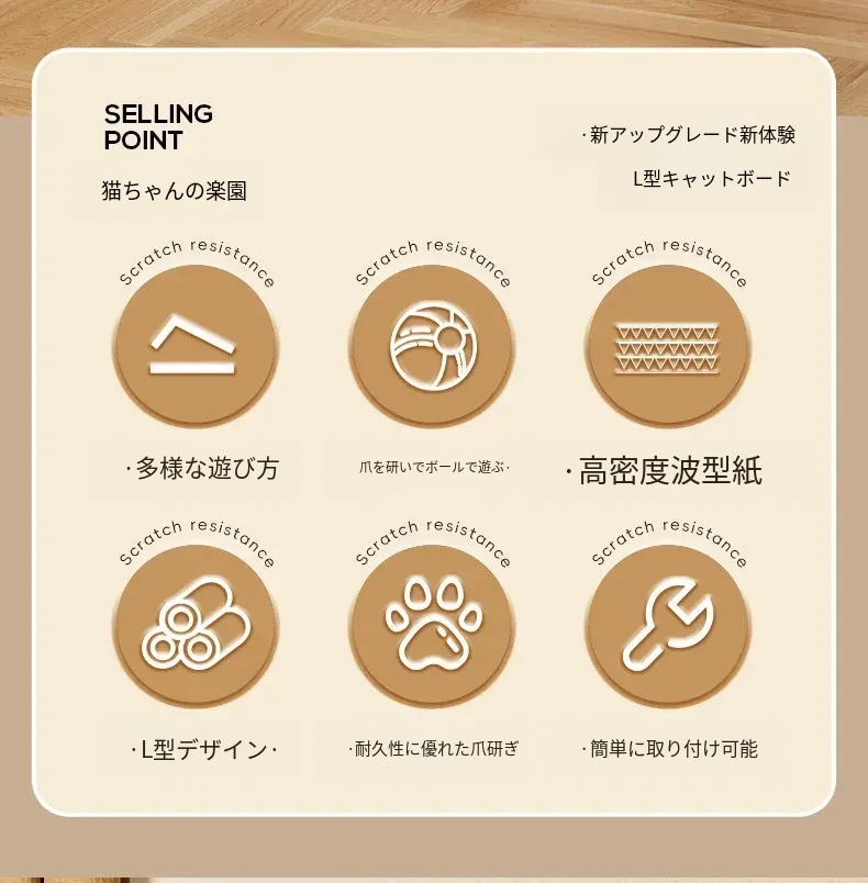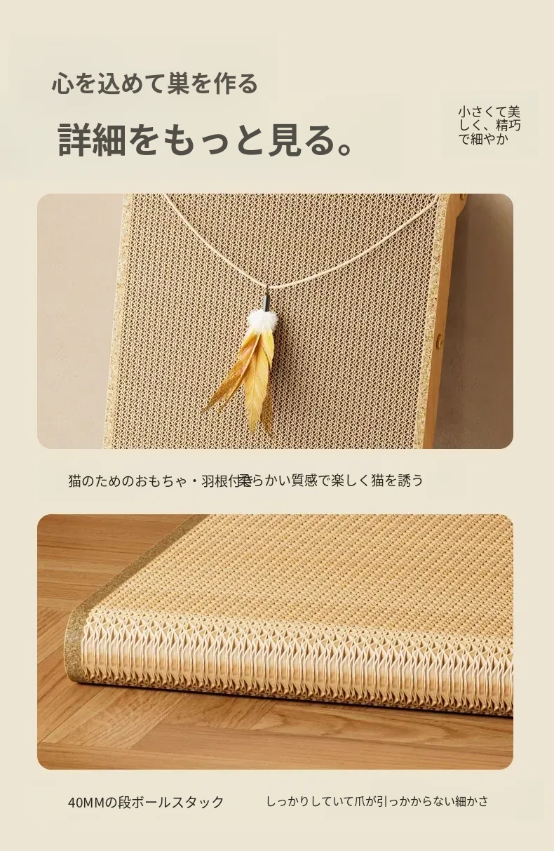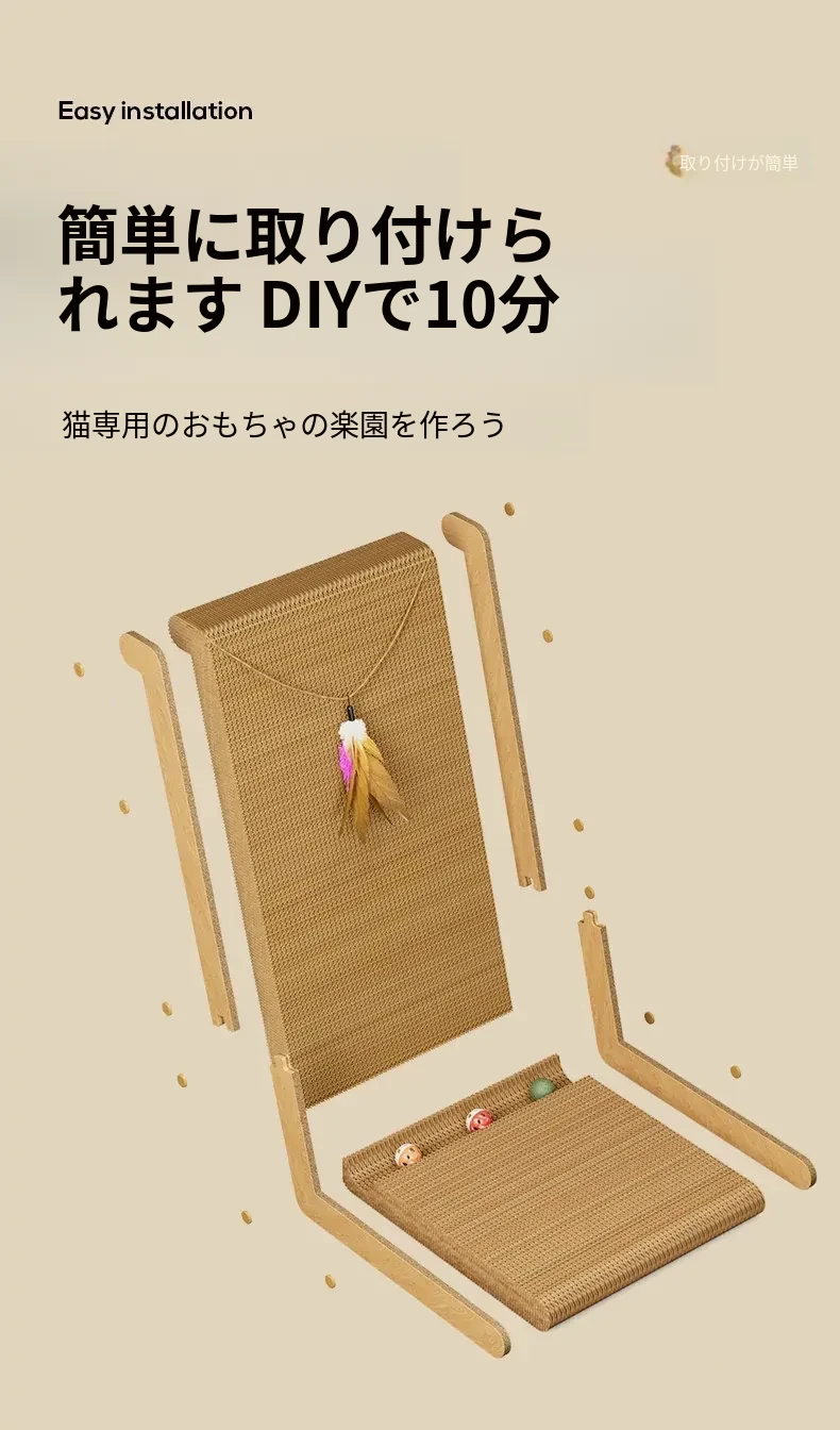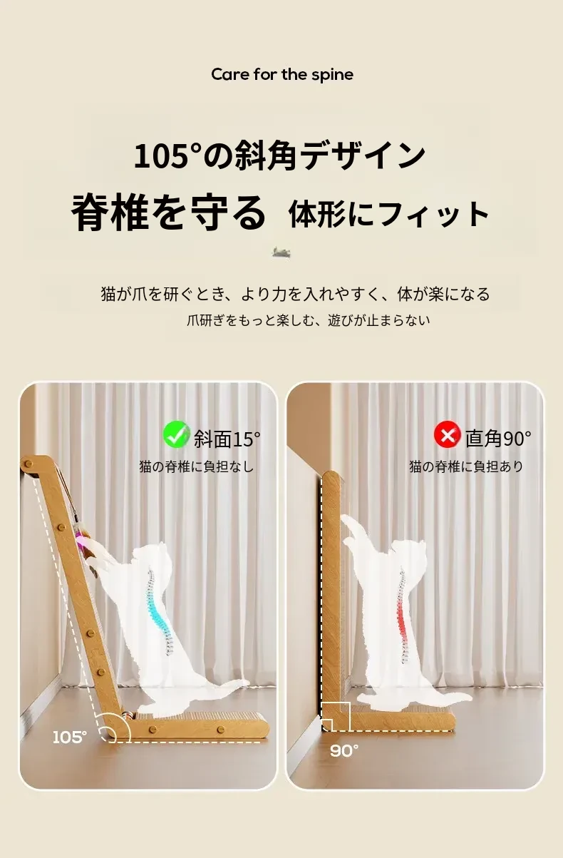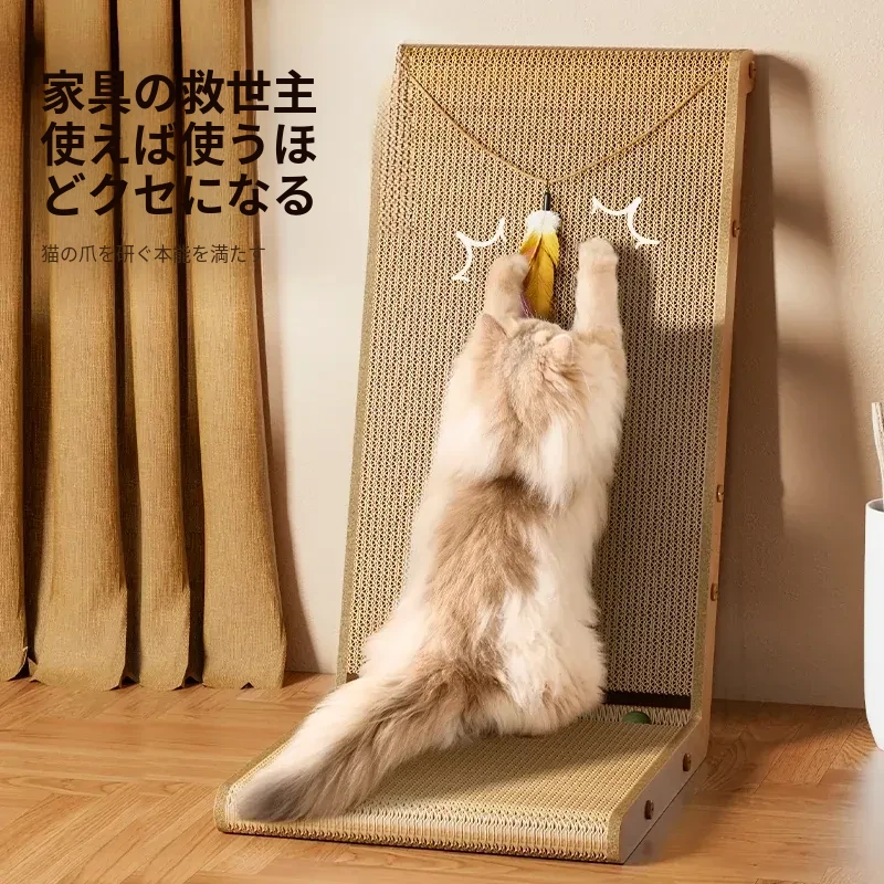 耐久性抜群のL型立て掛け式キャットスクラッチャー!キャットタワーや壁にぴったりフィット、猫ちゃんの爪研ぎと遊びを同時に楽しめる!無駄な毛屑が出ないから、清潔で安心。猫の快適なスペースを作りましょう!