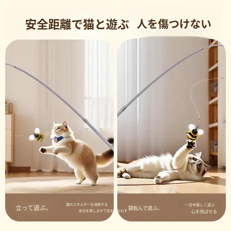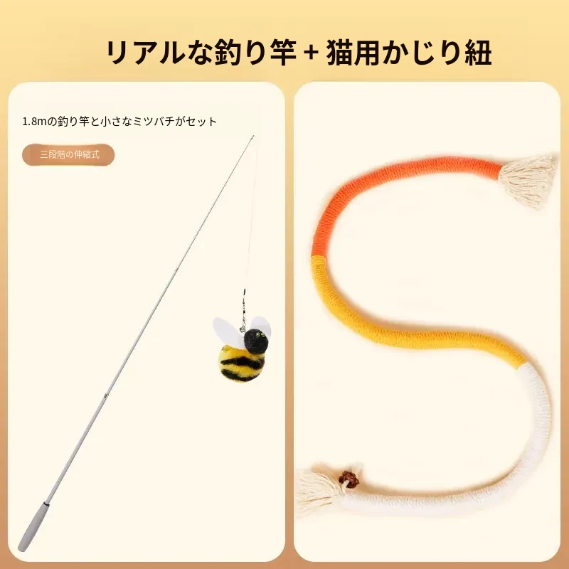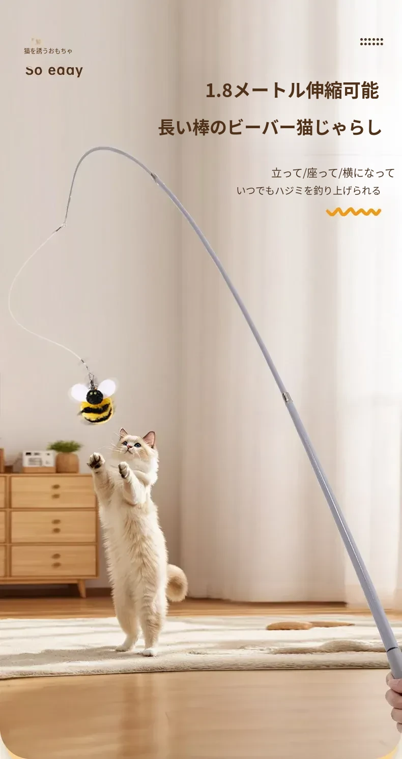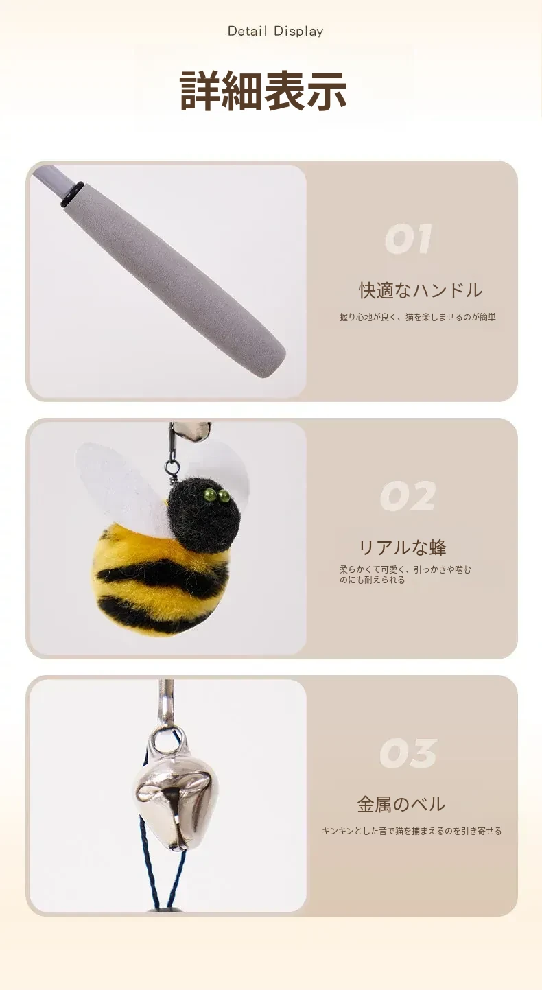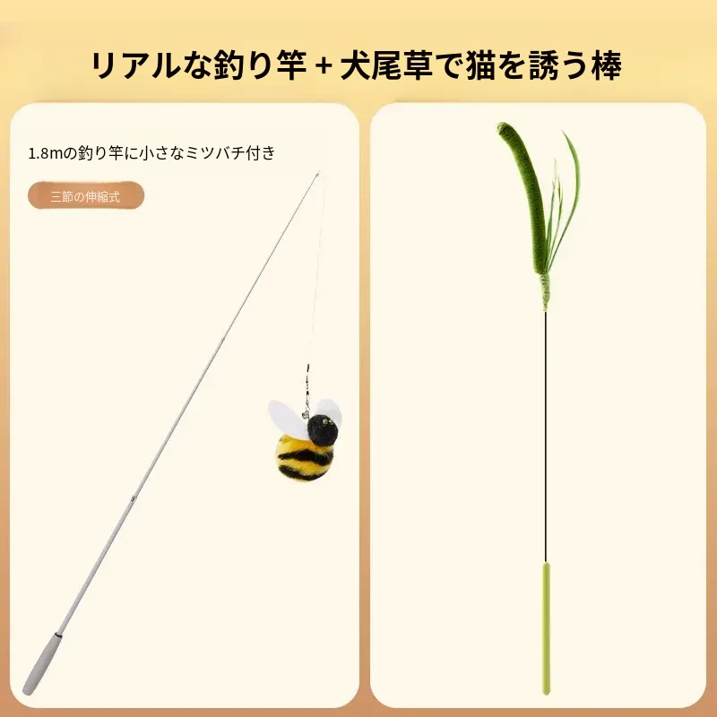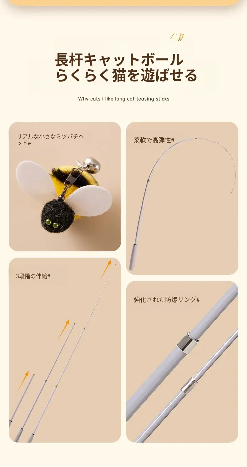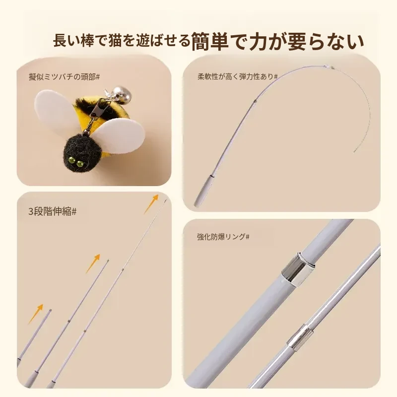 猫を引き寄せるセット⭐伸縮型猫じゃらし+バイオミミクリーミツバチ*3