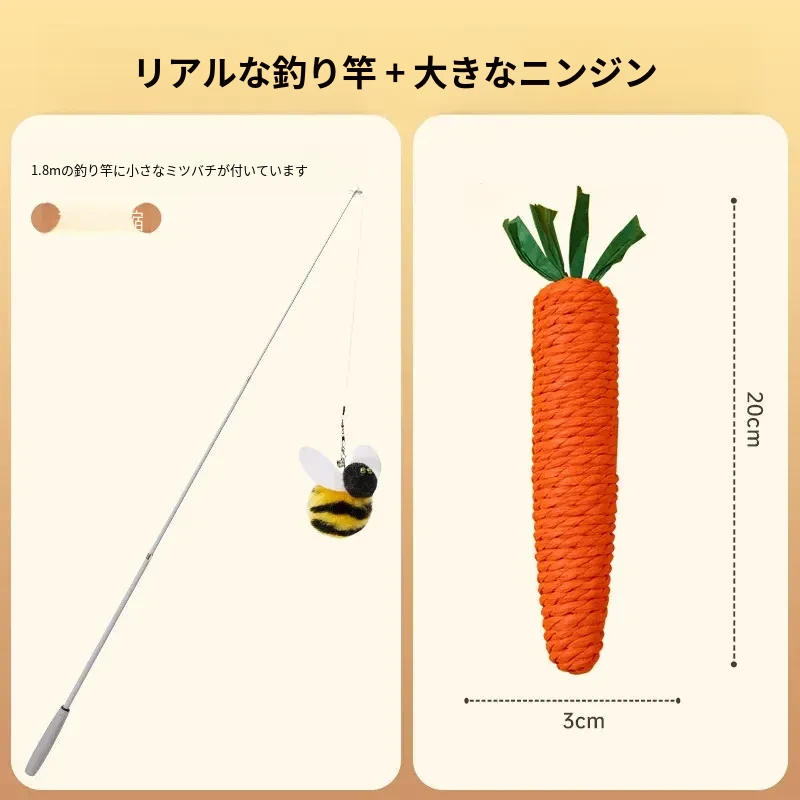 【⭐釣り猫セット】リアルな釣り竿猫じゃらし+大きなニンジン