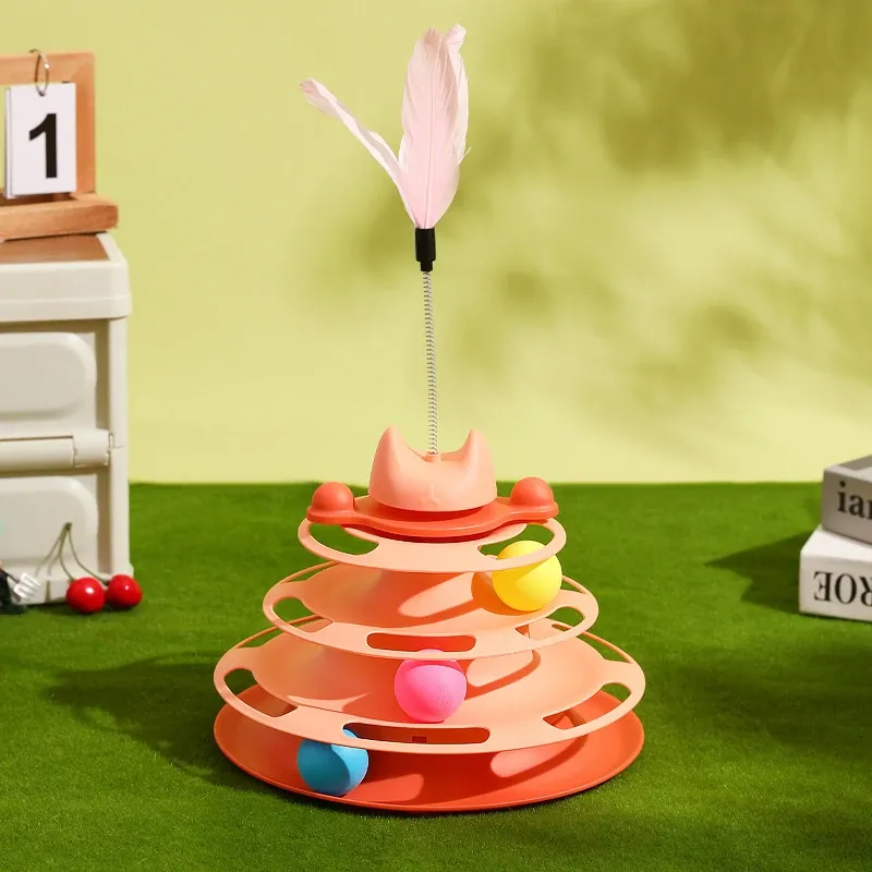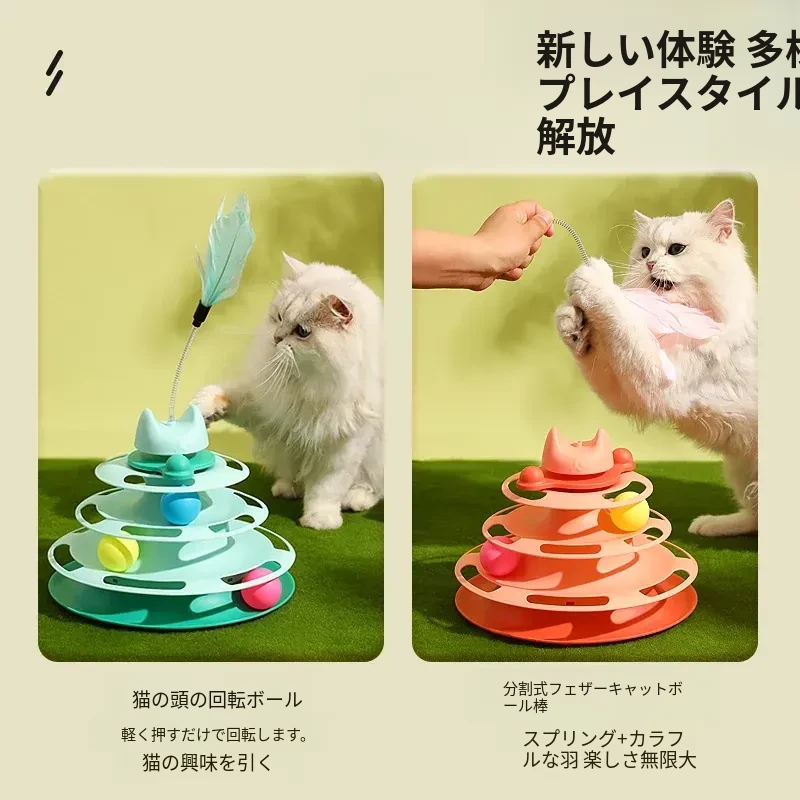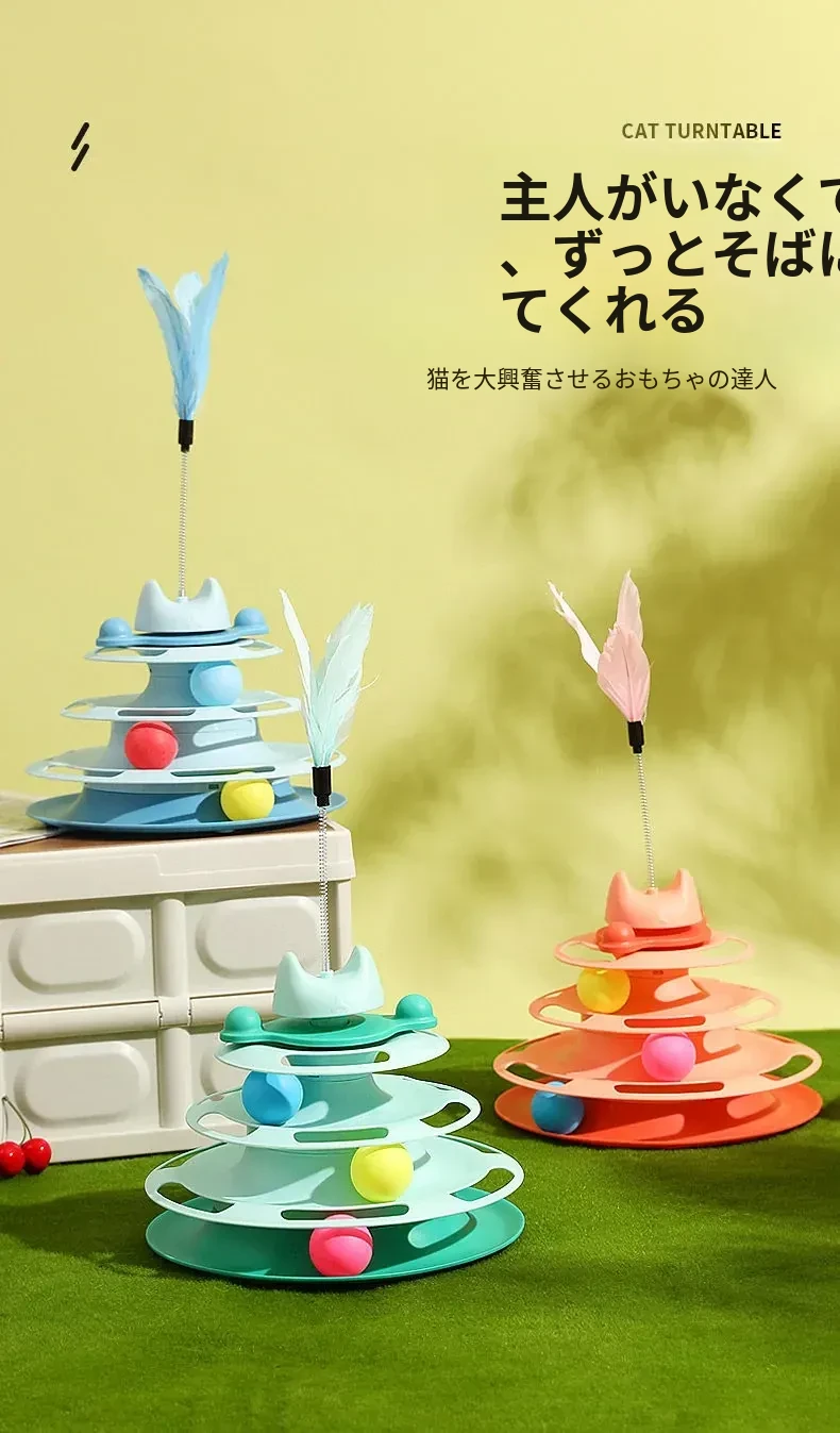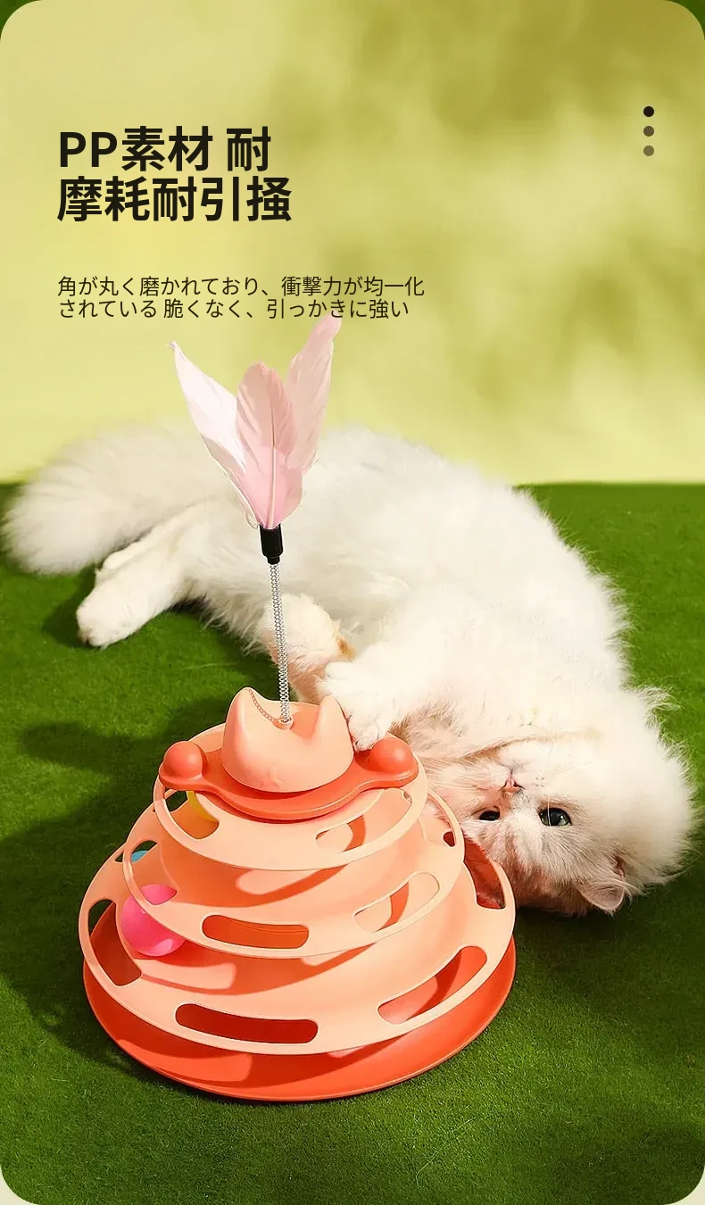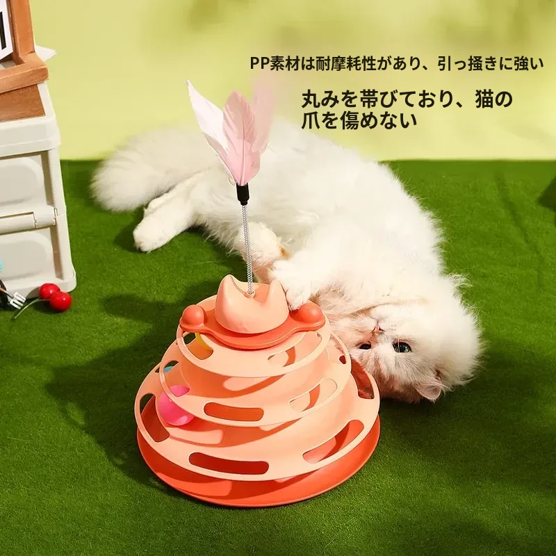 ピンク色【回転盤+トラックボール+猫じゃらし】猫が遊ぶとすぐに夢中になる