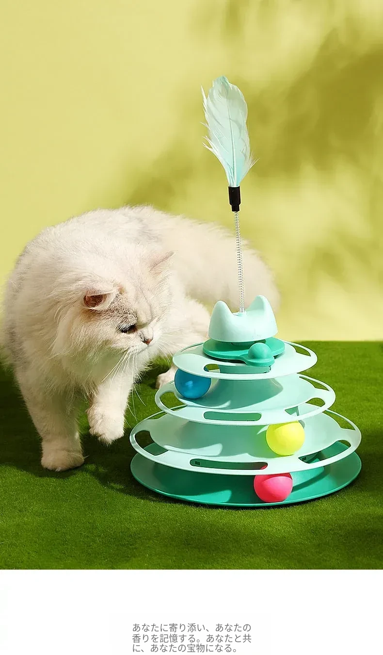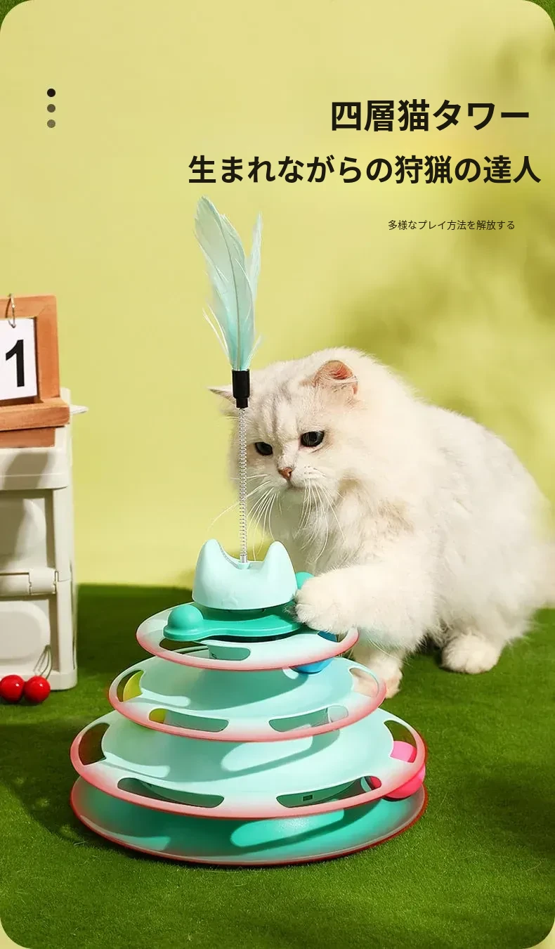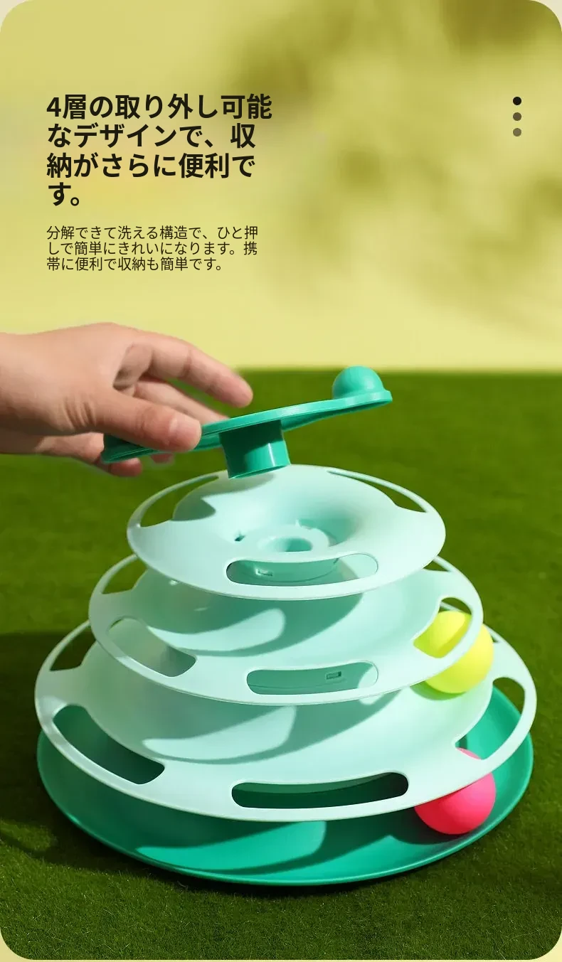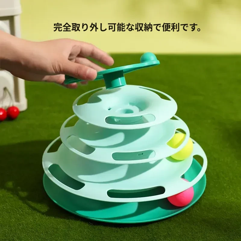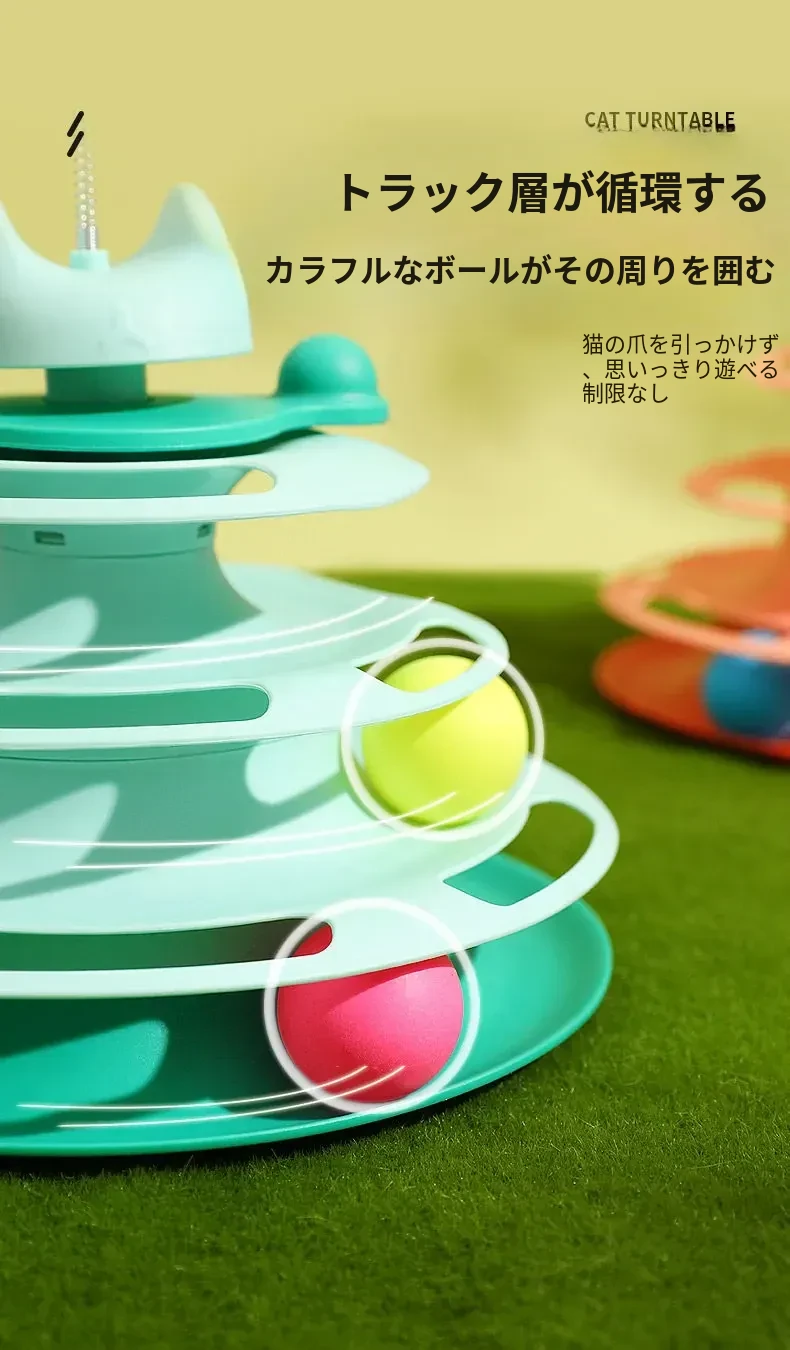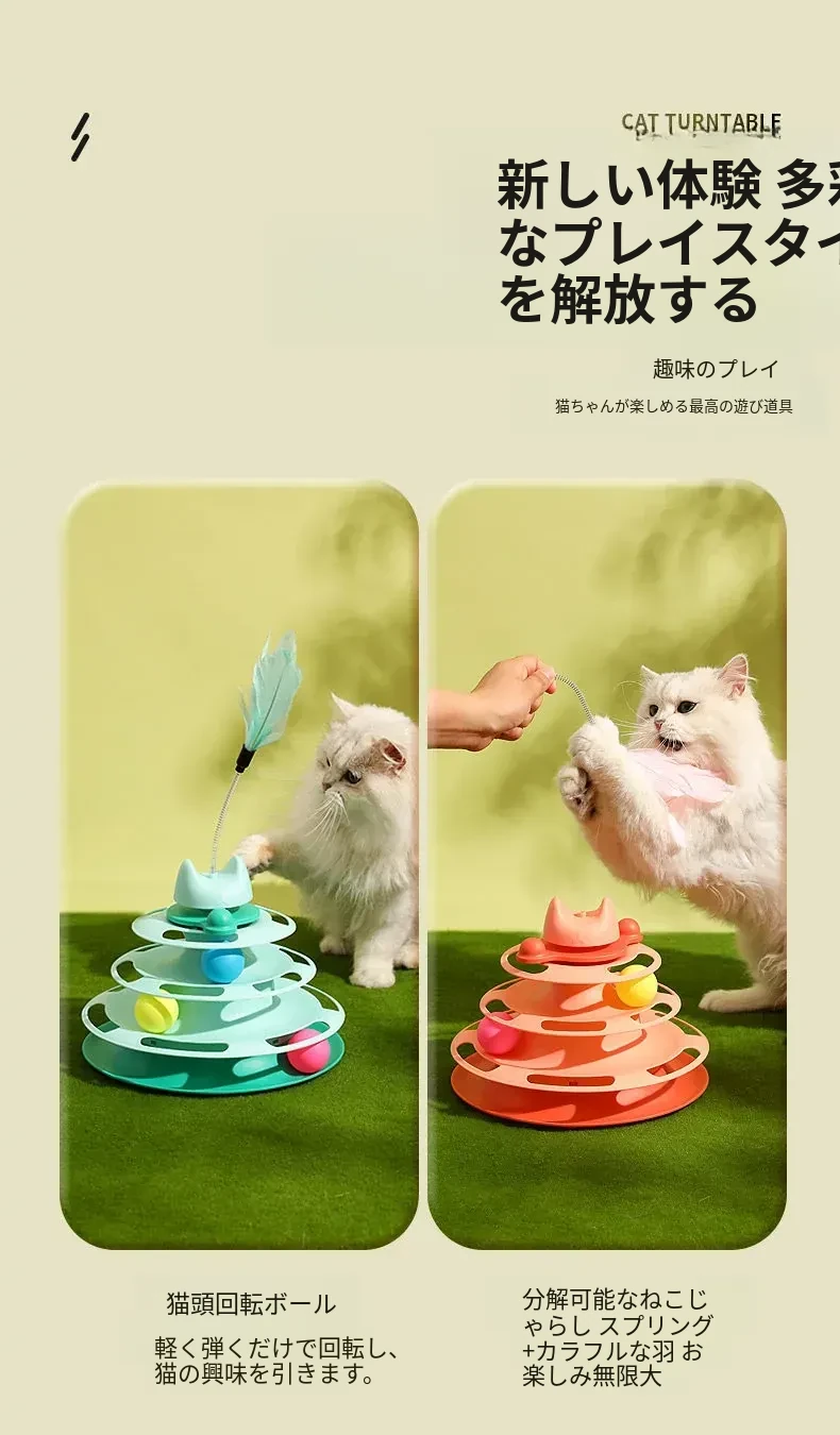 緑色【回転盤+トラックボール+猫じゃらし】猫が遊ぶとすぐに夢中になる