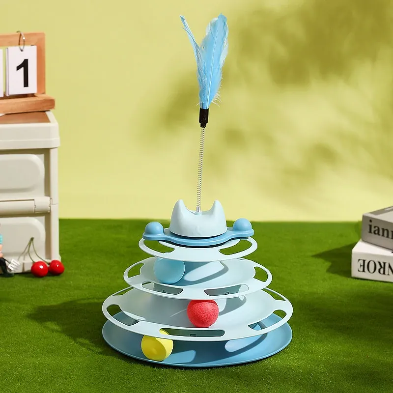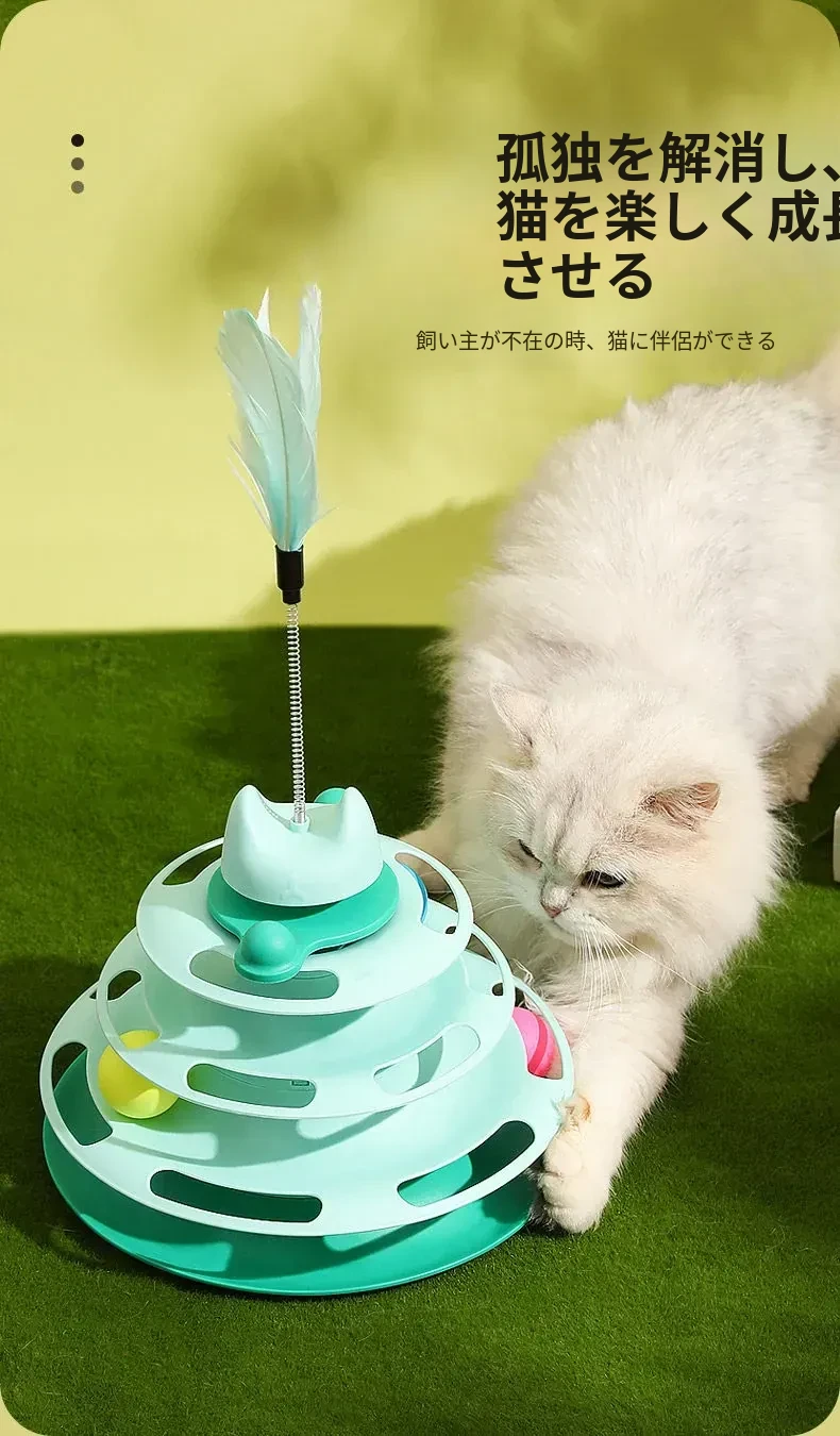青色【回転盤+トラックボール+猫じゃらし】猫が遊ぶとすぐに夢中になる
