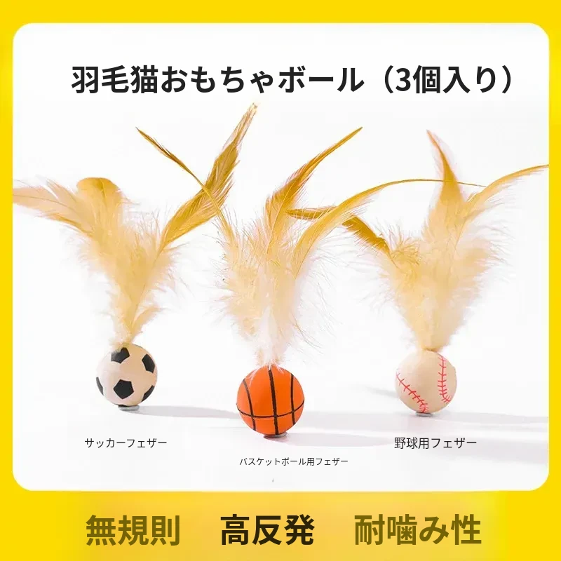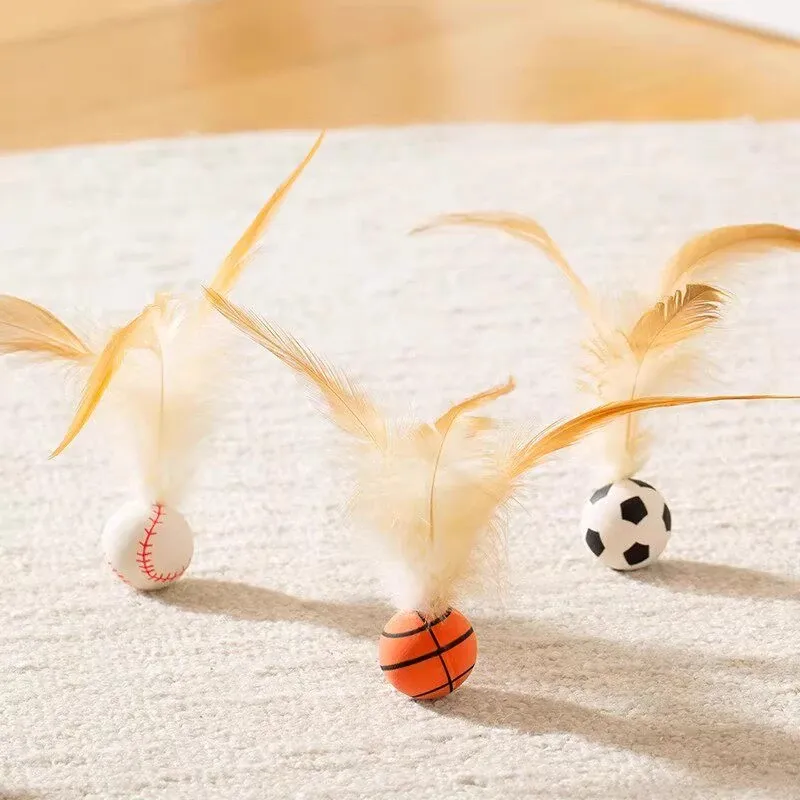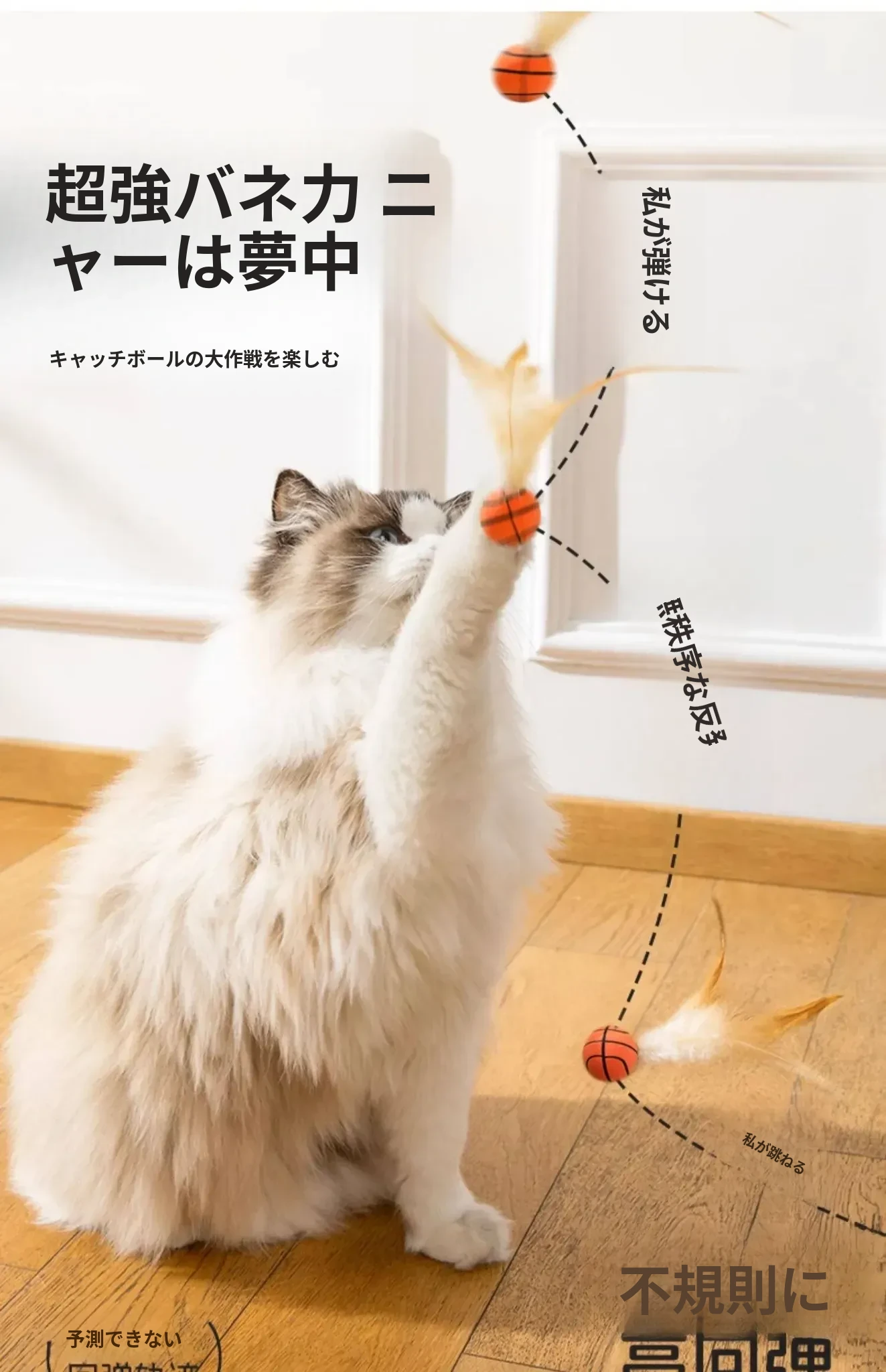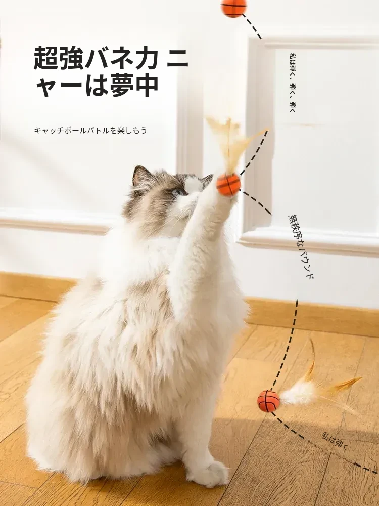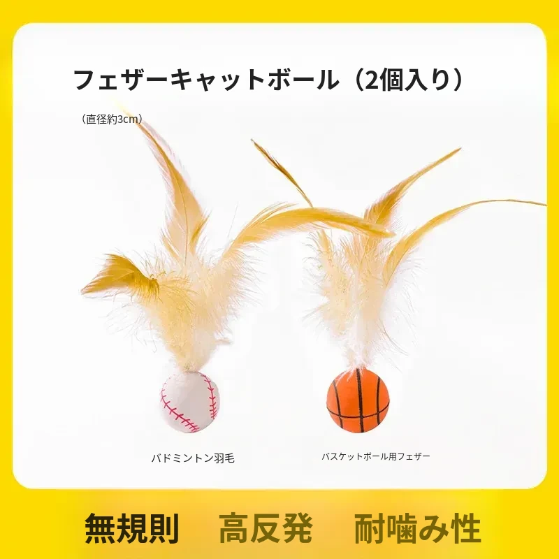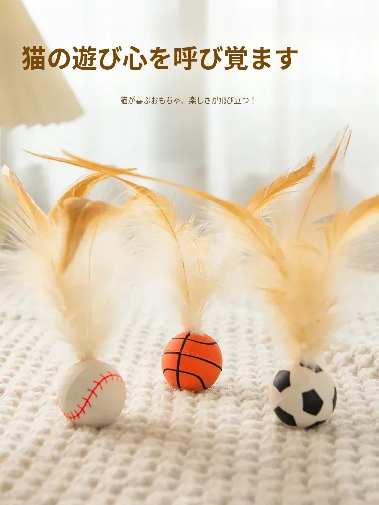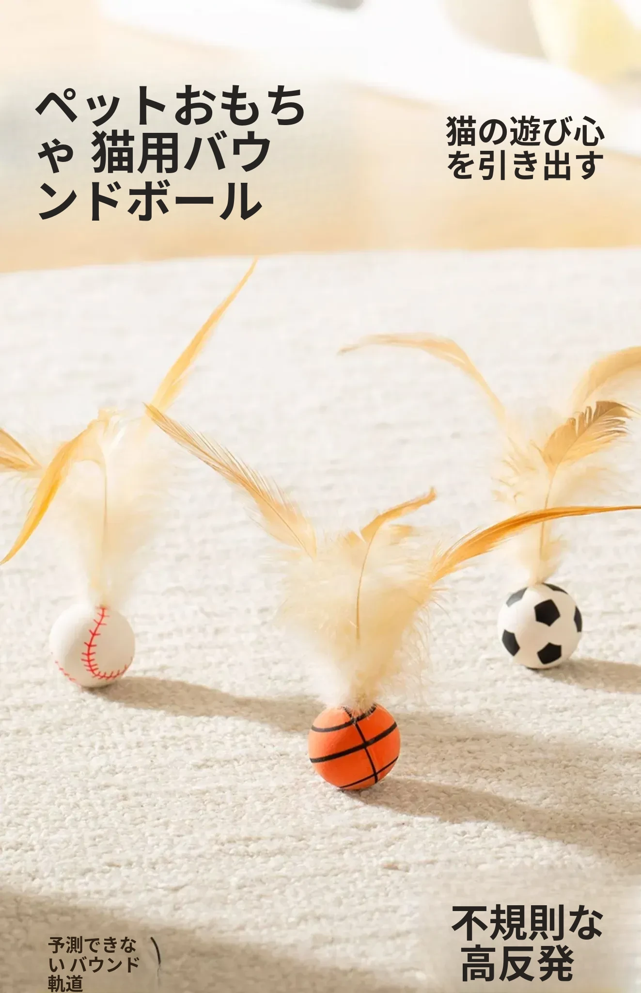 猫ちゃんのためのエンターテイメント!弾力ボールとフェザー付き運動おもちゃで、遊びながらストレス解消。小さな子猫も大満足の体力消耗グッズ!