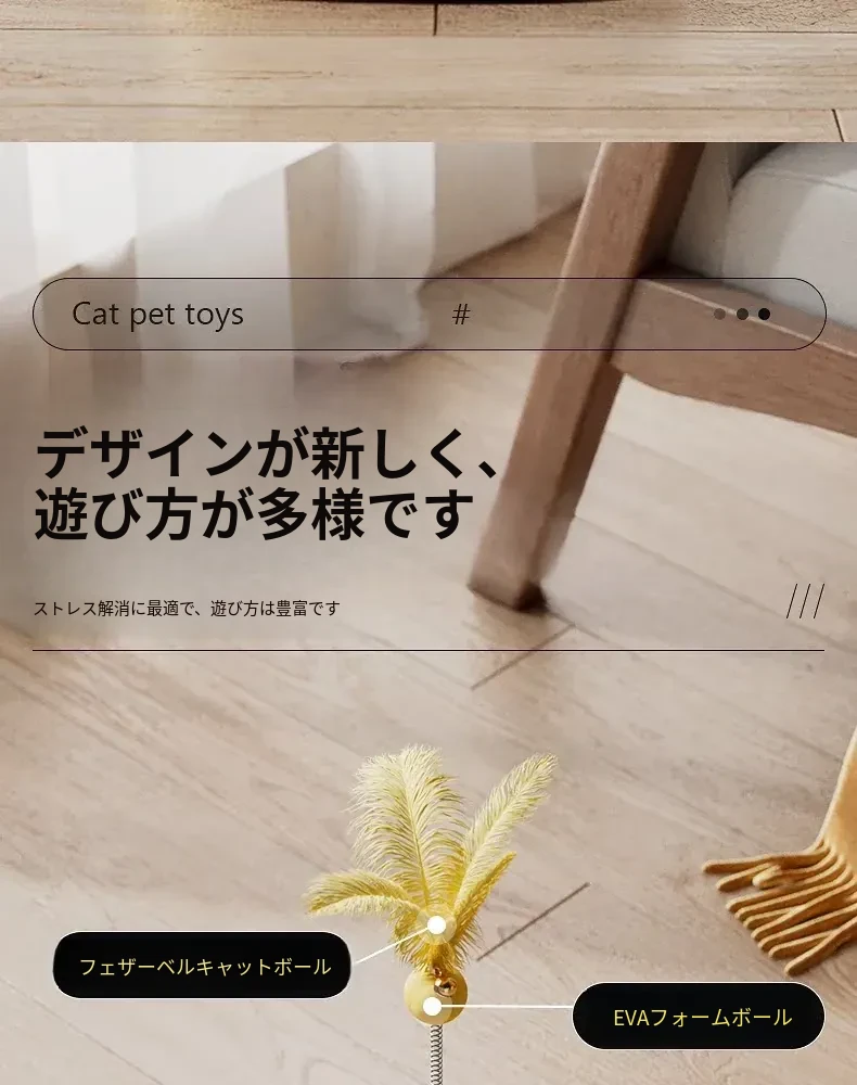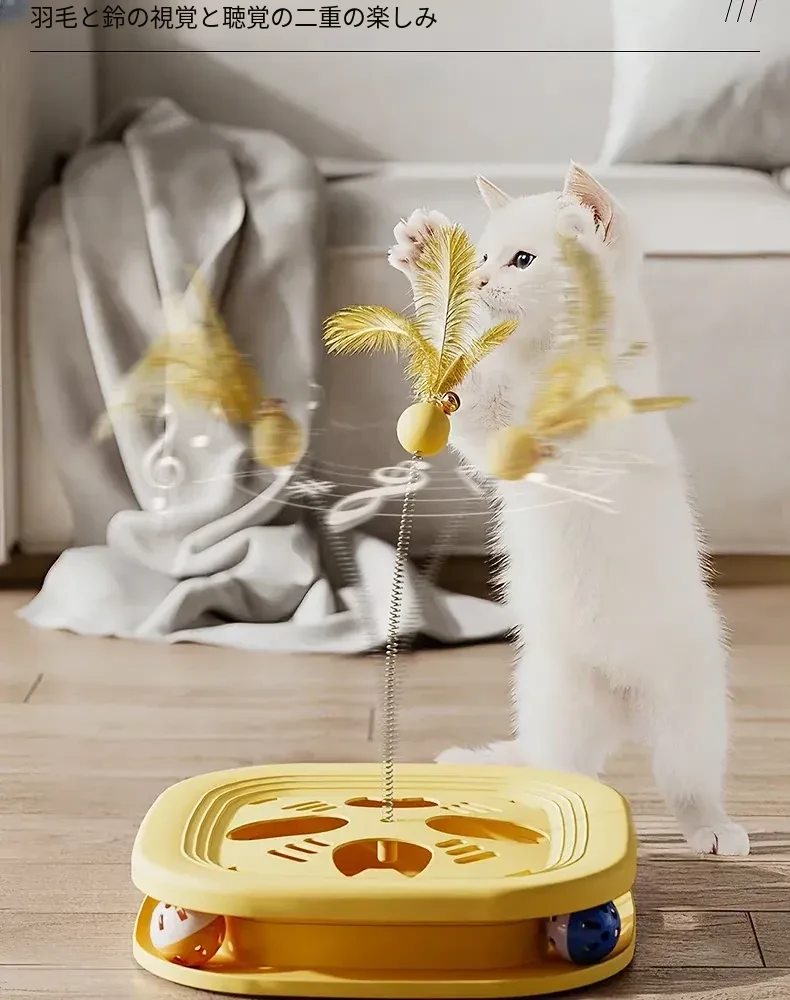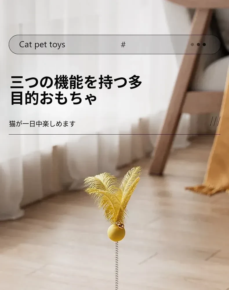 猫ちゃんのおもちゃ!元気いっぱいの羽毛付きねこじゃらしで、遊びながらストレス解消&運動不足解消!知育おもちゃ付きで、好奇心を引き出し、楽しい時間を提供します。小さな子猫にも最適!