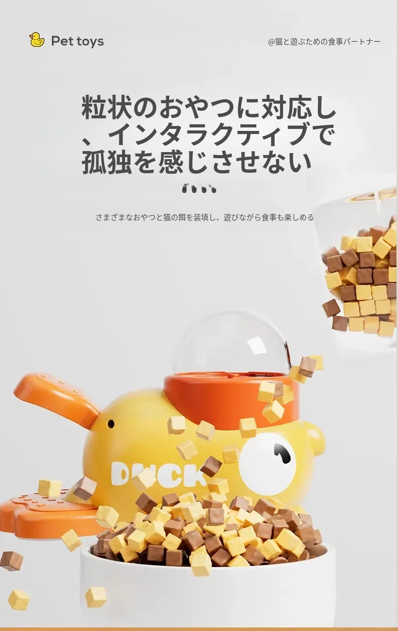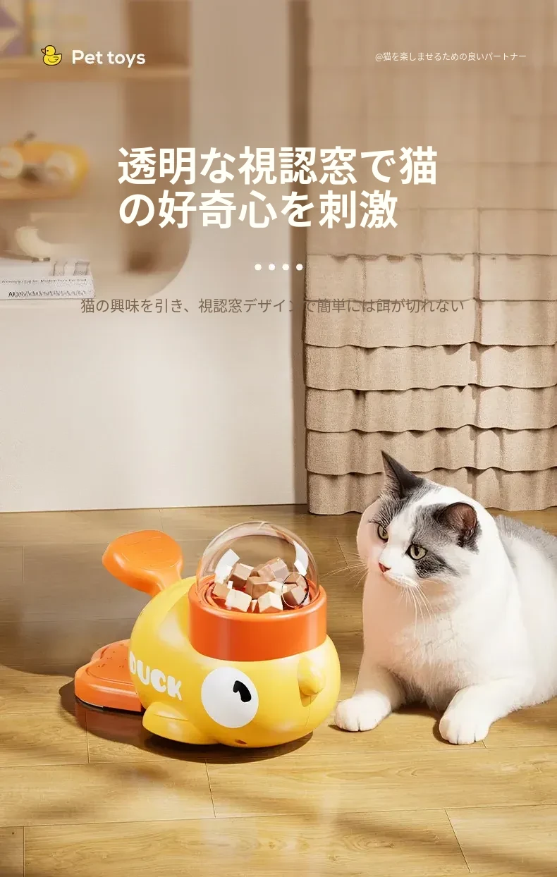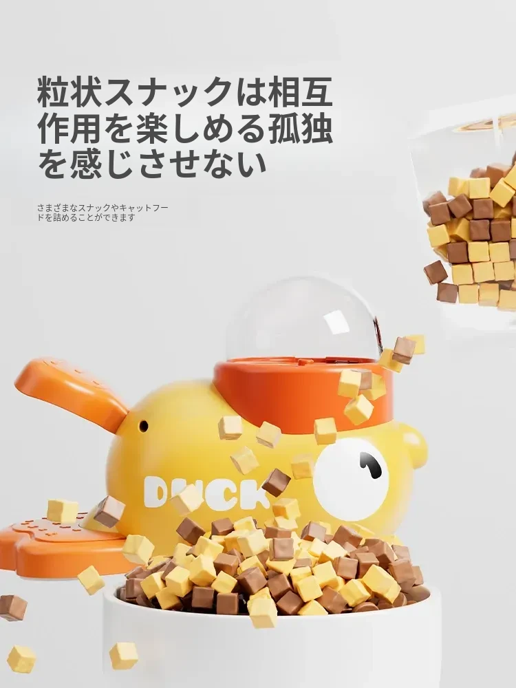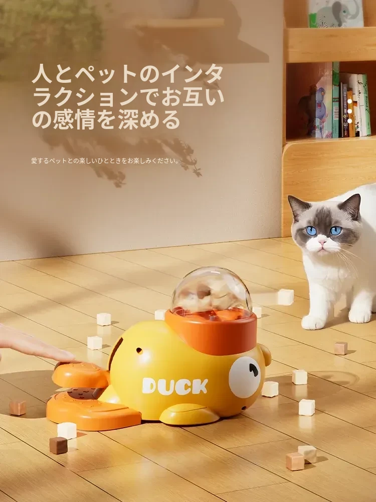 自分で遊べる猫のおもちゃ!小さな黄色いアヒルの冷凍乾燥発射器で、猫ちゃんも大喜び!押すだけでおやつが出てくる楽しい猫じゃらし。ペットの食事も楽しみながら、退屈を吹き飛ばそう!