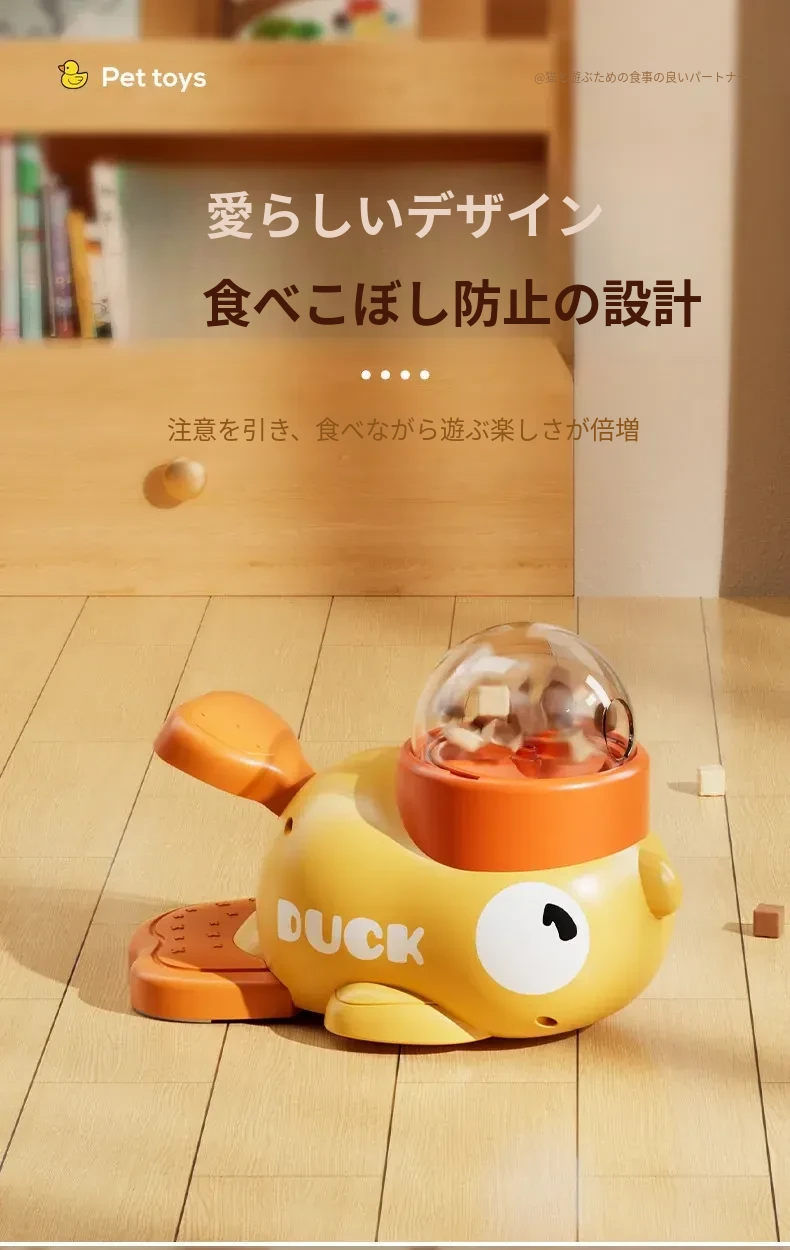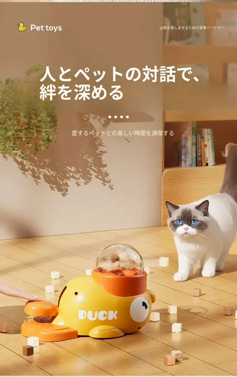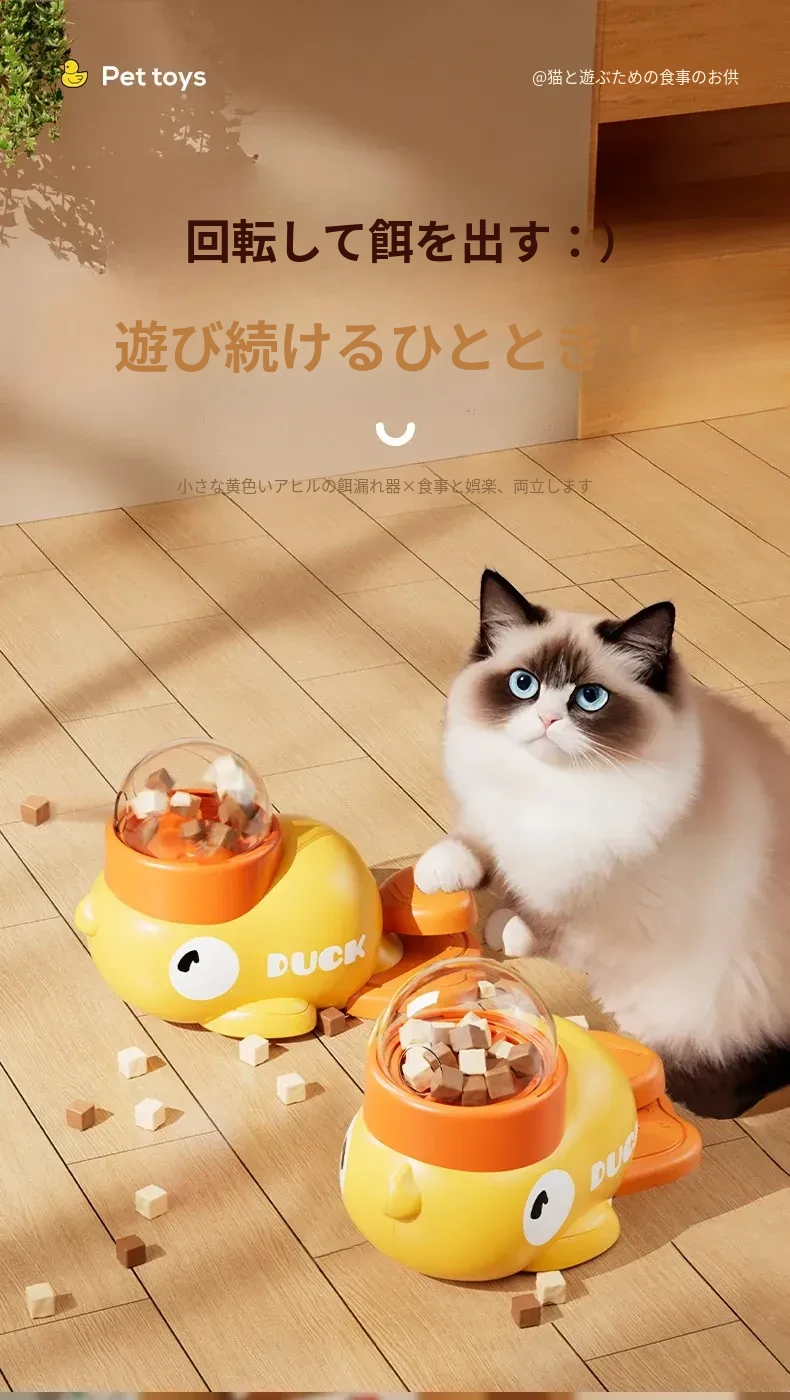自分で遊べる猫のおもちゃ!小さな黄色いアヒルの冷凍乾燥発射器で、猫ちゃんも大喜び!押すだけでおやつが出てくる楽しい猫じゃらし。ペットの食事も楽しみながら、退屈を吹き飛ばそう!