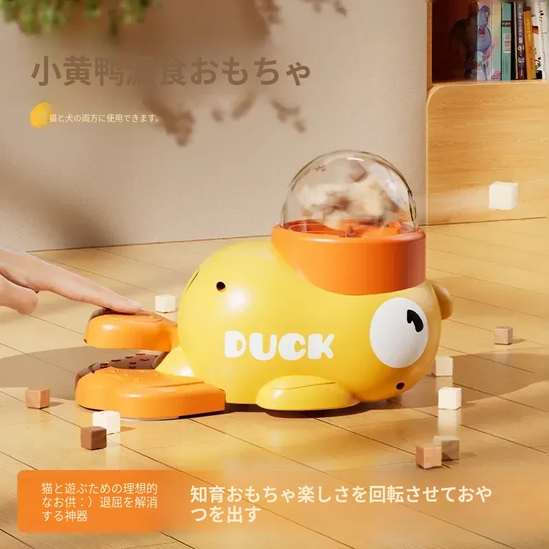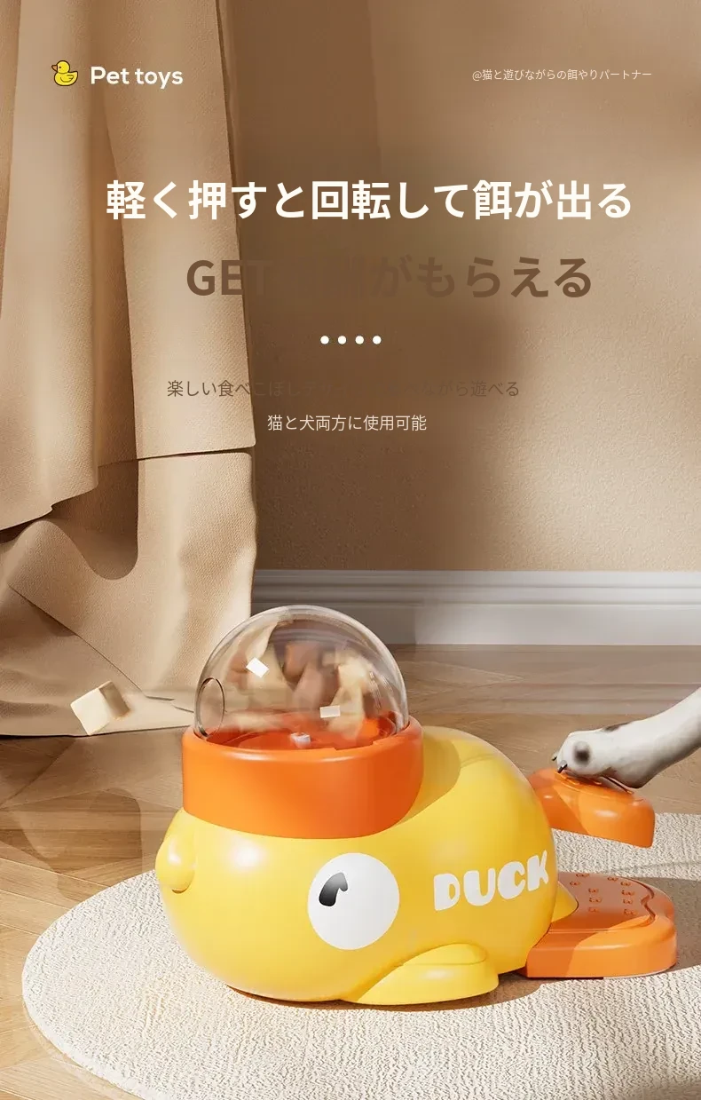 小黄鸭ペットフードディスペンサー【粒状おやつに適用 回転式給餌】