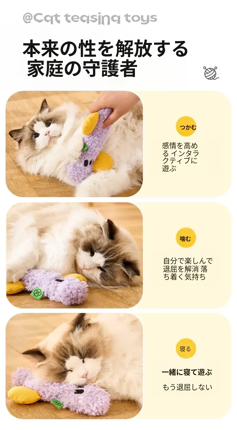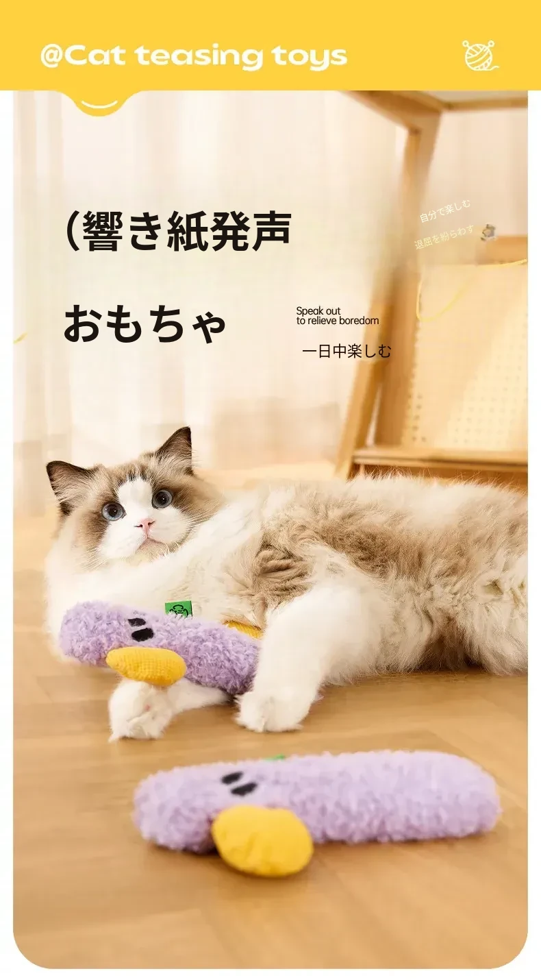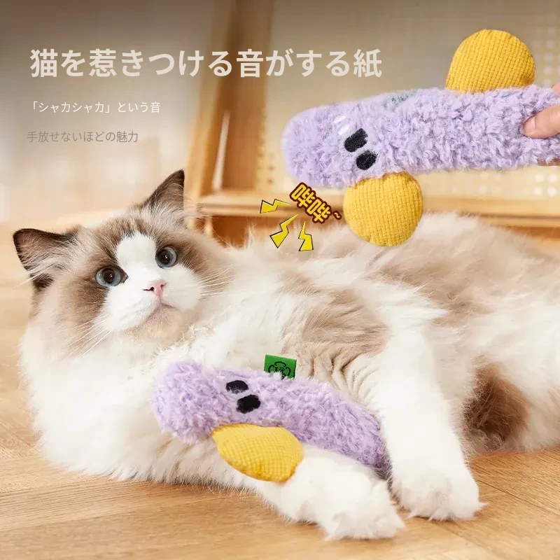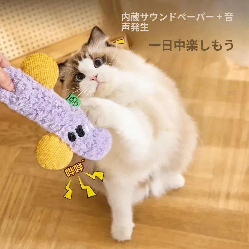 猫ちゃんのための楽しさ満点のおもちゃ!音が鳴る感触付きのハッピースティックで、遊びながら歯磨きもできる!退屈知らずの猫ちゃんライフをサポートするペット用品です。