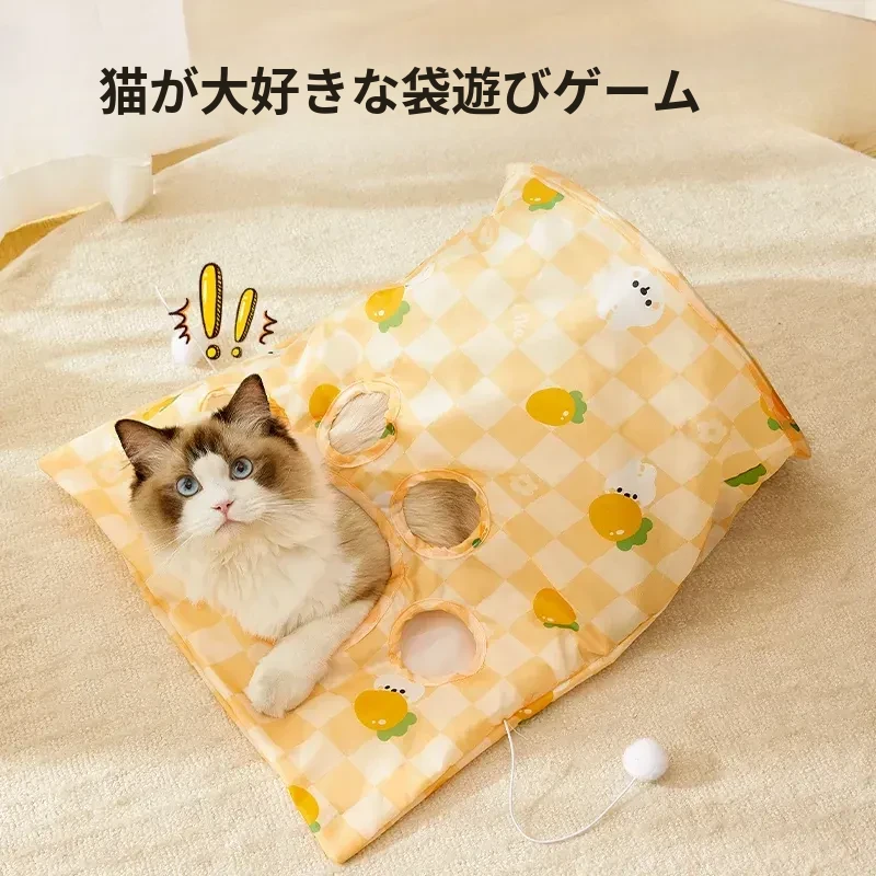 猫ちゃんが夢中になる!エネルギー発散に最適なネコじゃらしおもちゃセット - 音の出る紙製トンネル付きで、遊び心満載のキャットグッズ大全!