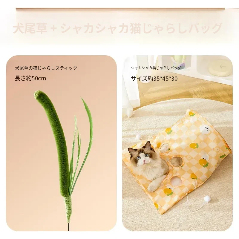 【自分で楽しむ2点セット】猫用トンネル+擬似犬の尾草で遊ぶおもちゃ