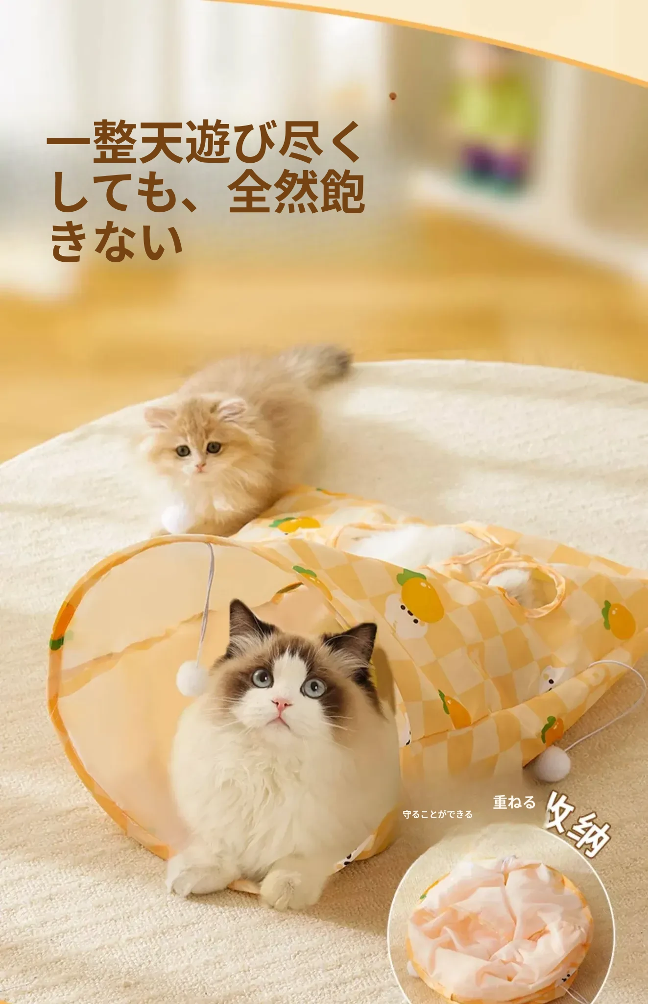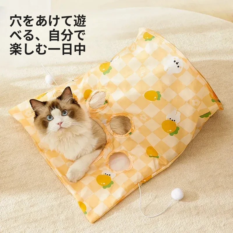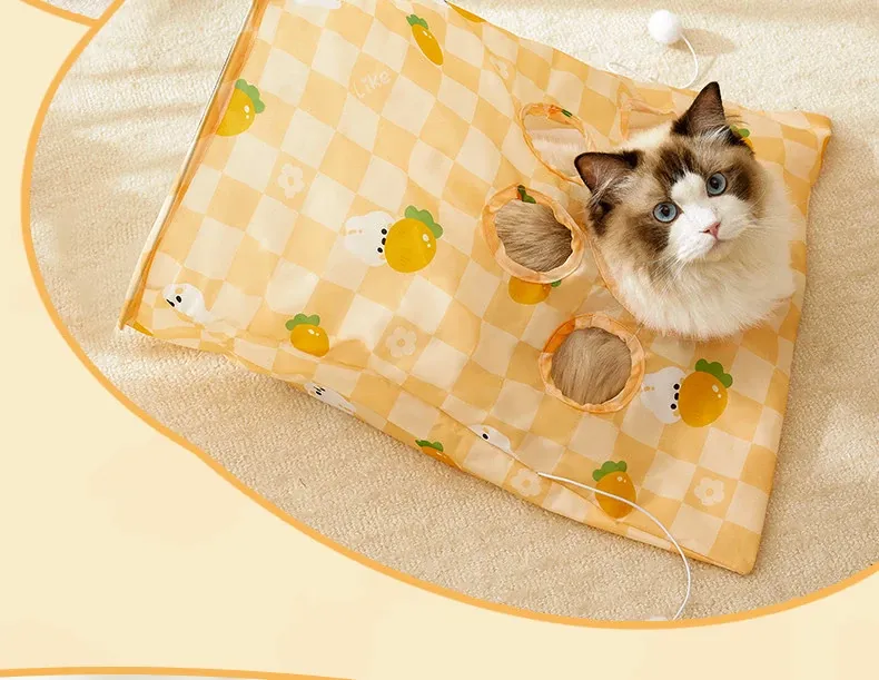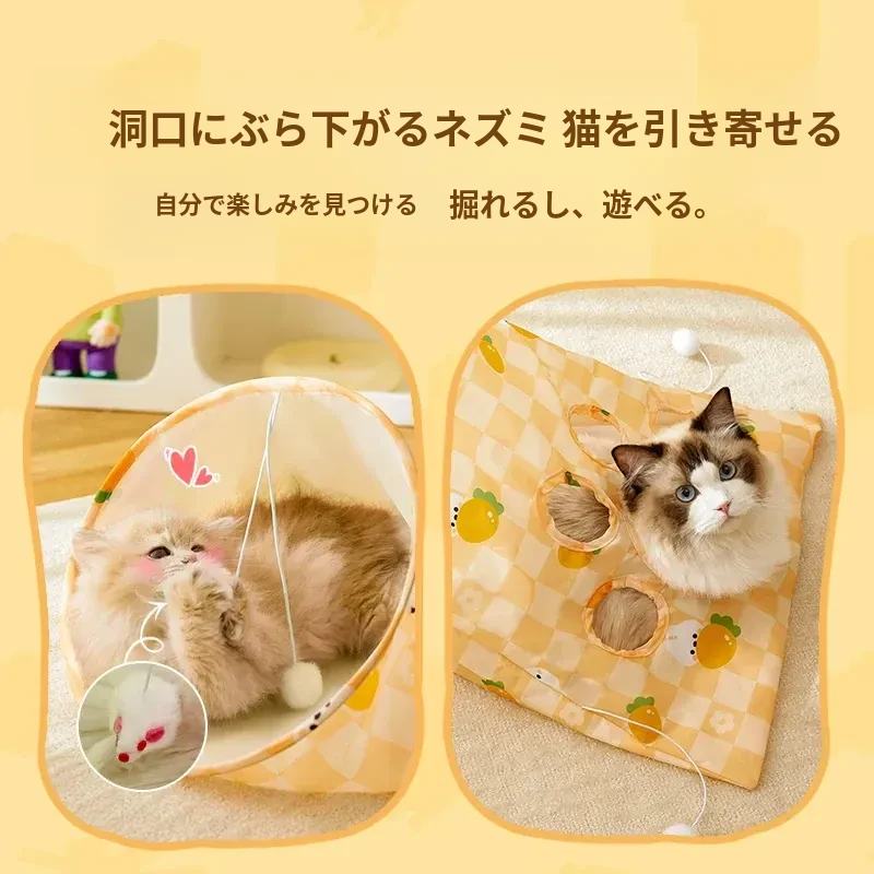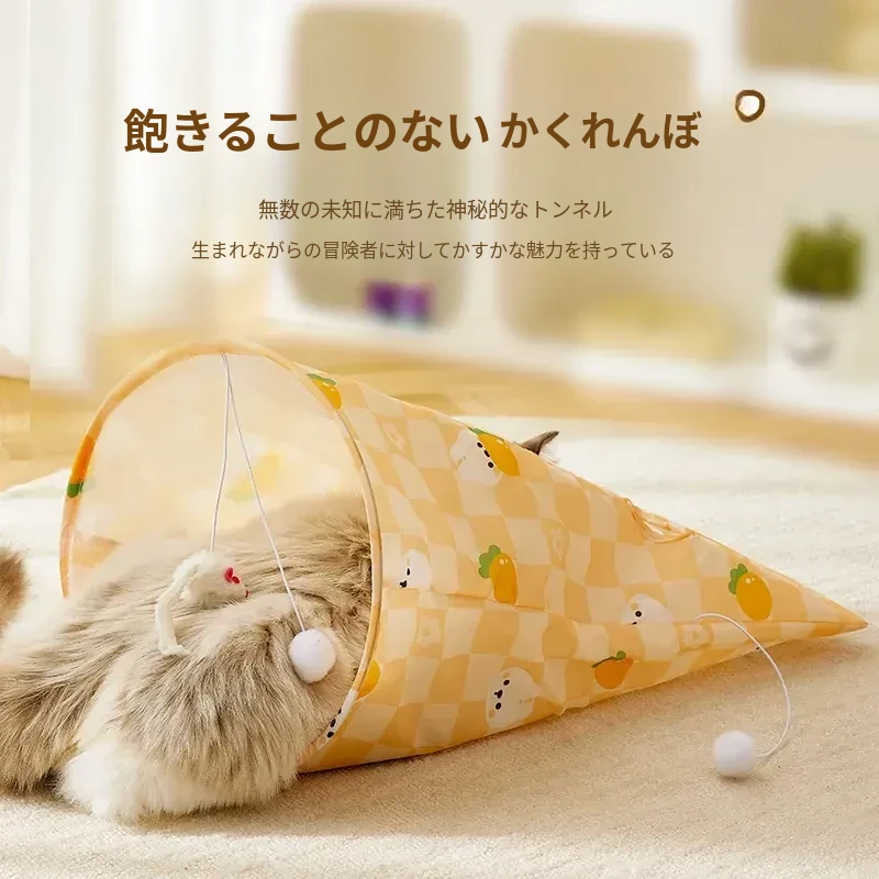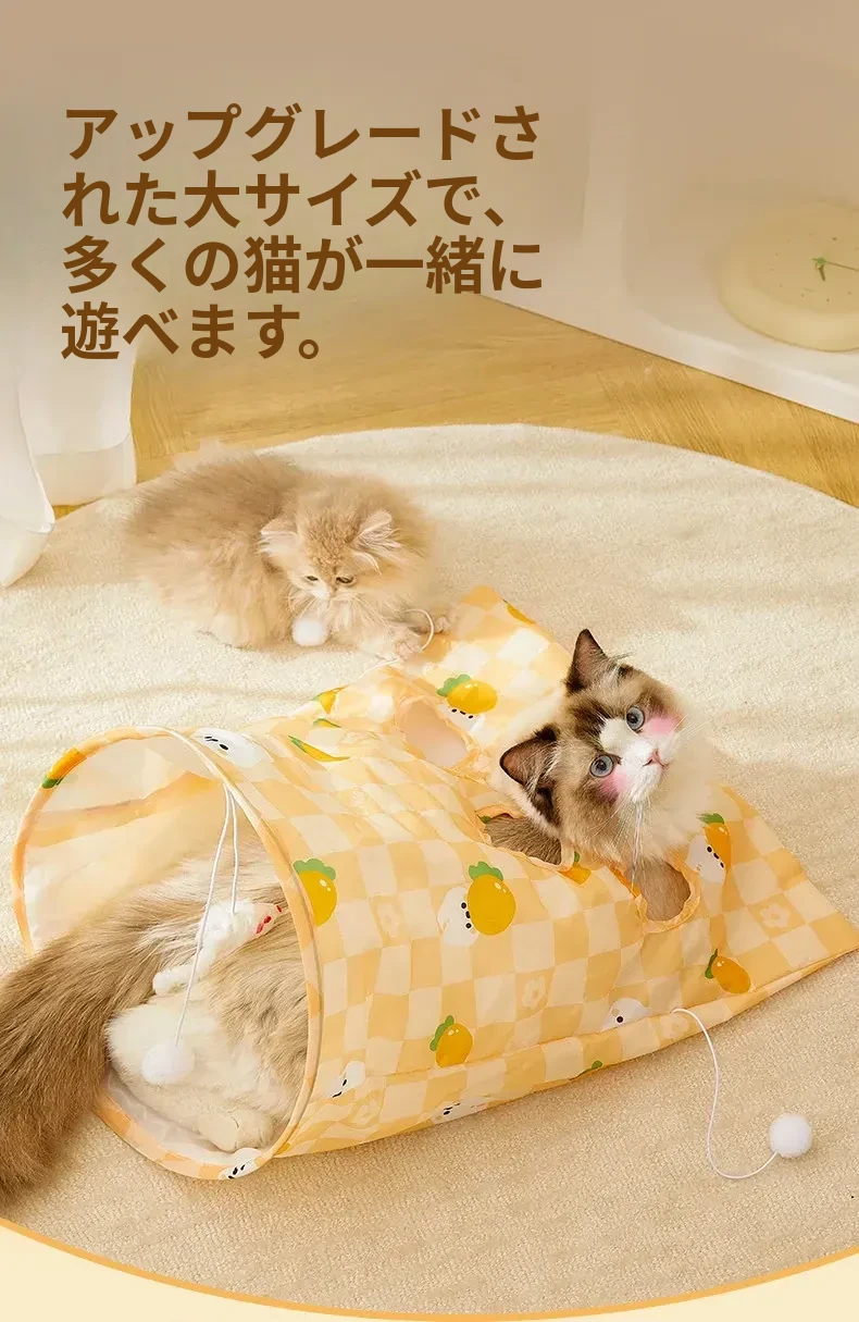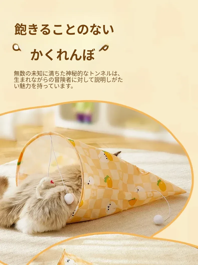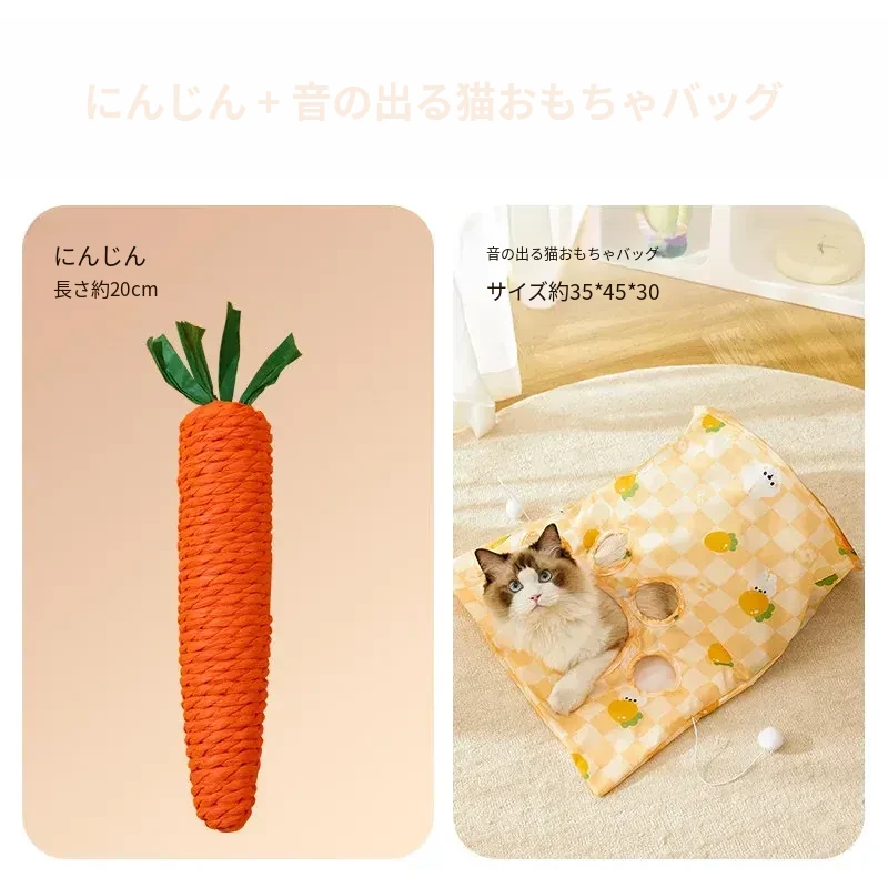 【おもちゃ2点セット】猫用トンネル+大きな音の出るニンジン