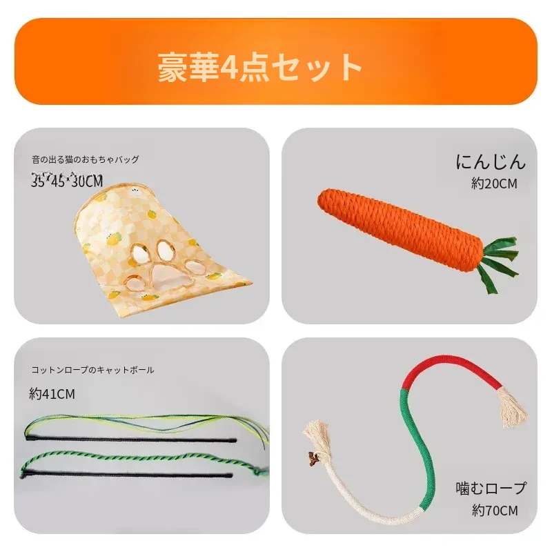 【おもちゃ4点セット】音の出るニンジン+自分で楽しむかじかじロープ+犬の尾草
