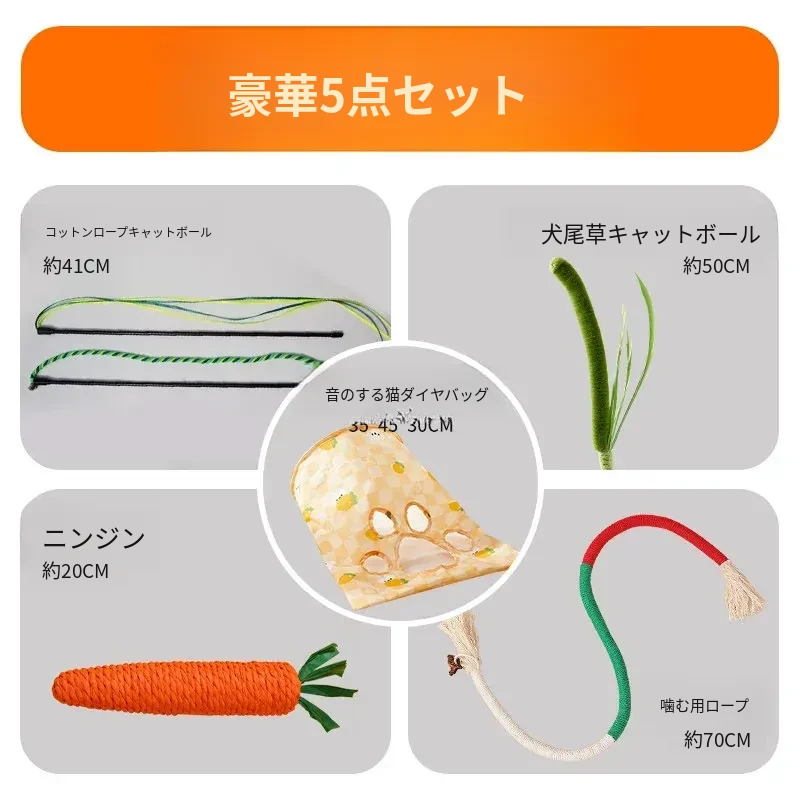 【おもちゃ5点セット】音の出るニンジン+自分で楽しむかじかじロープ+犬の尾草+綿ロープで遊ぶおもちゃ