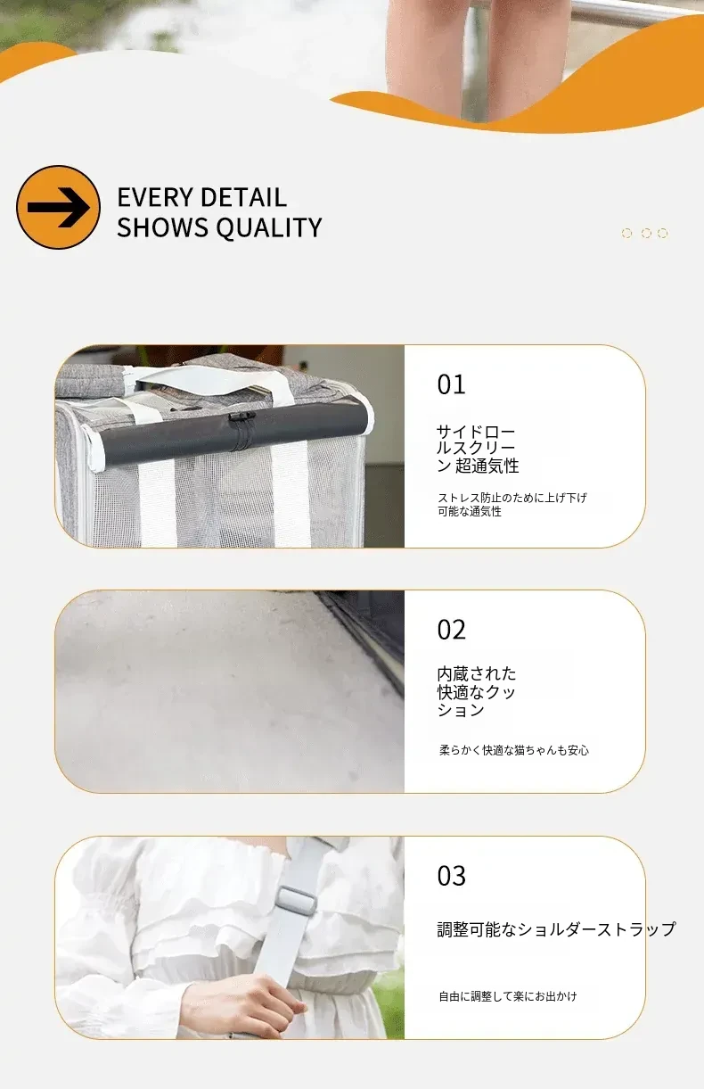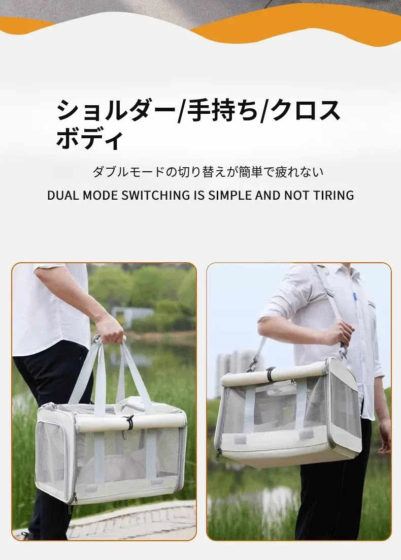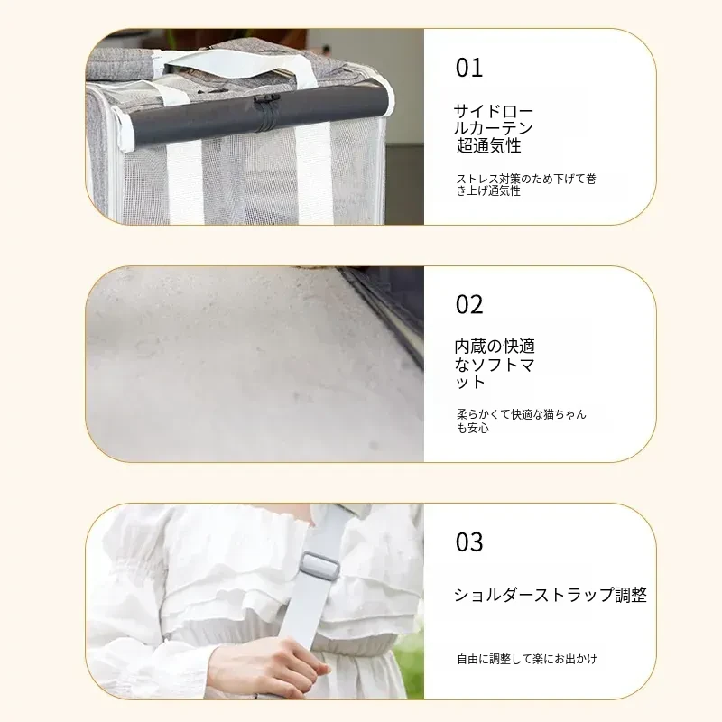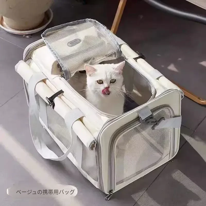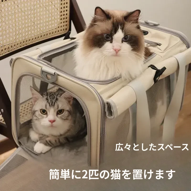 通気性抜群!大容量の猫用キャリーバッグ - ストレスを軽減する肩掛け&手提げタイプ。お出かけやお風呂にも最適なペットリュック!あなたの猫ちゃんを安心して連れて行けます。