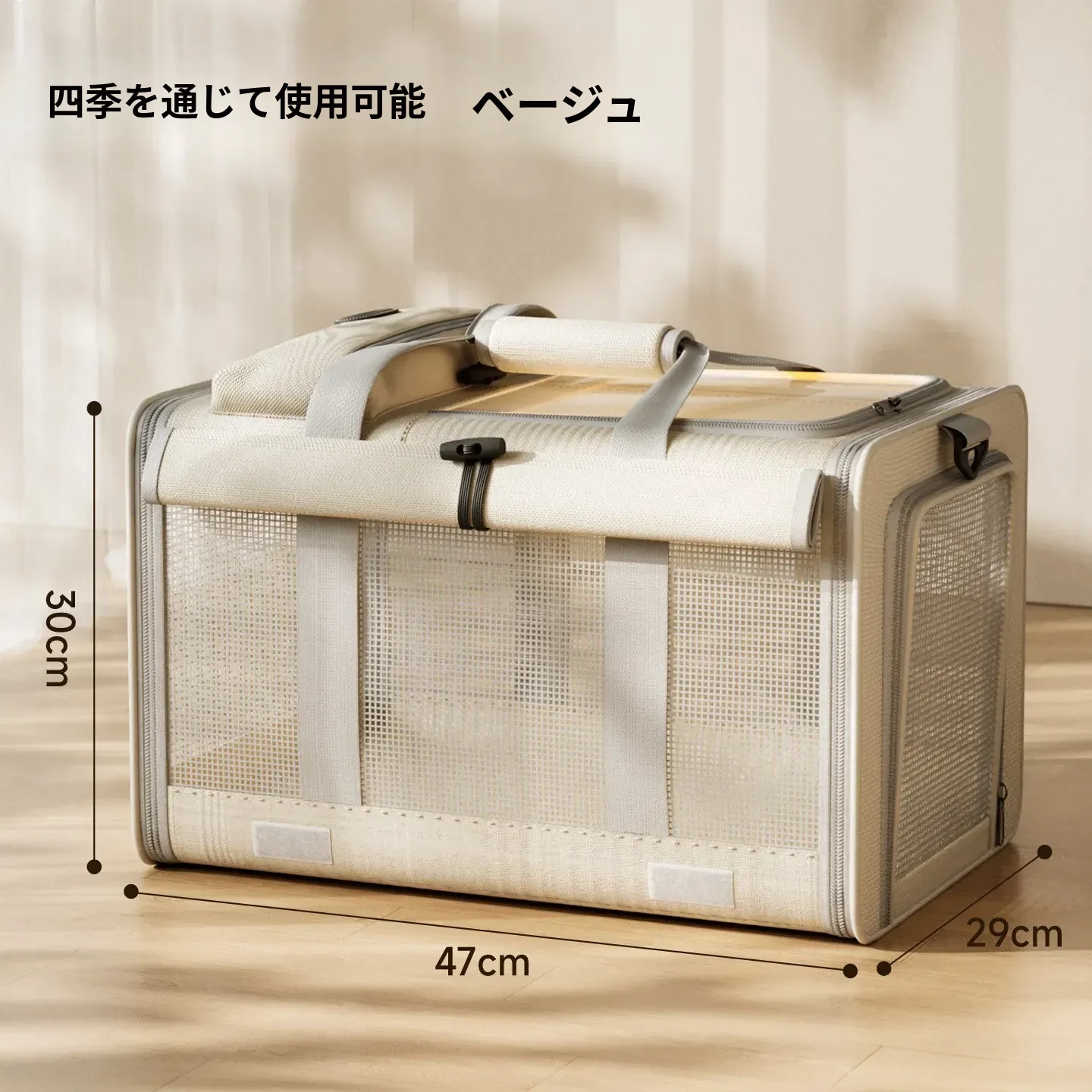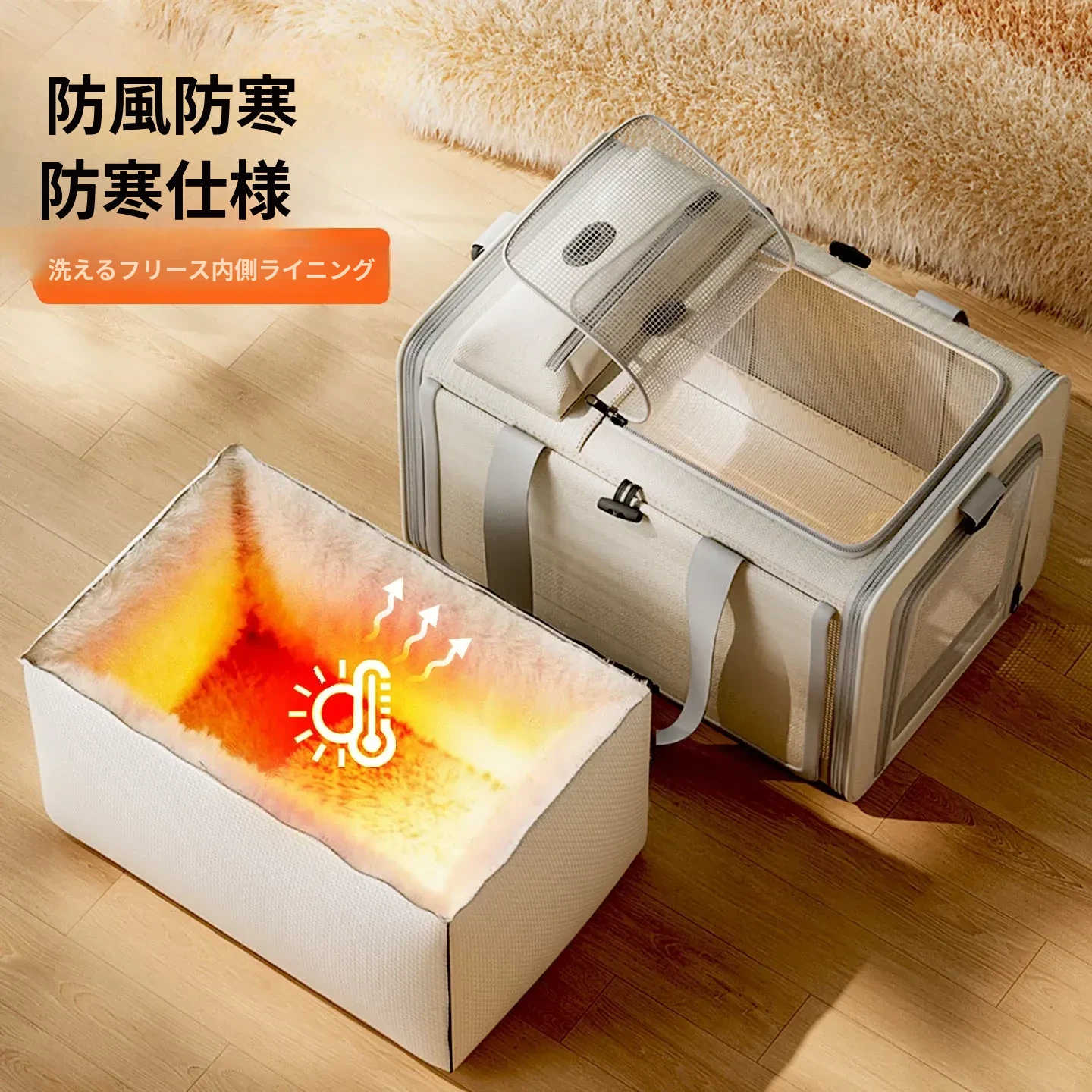 【冬季用フリース保温】厚手防風猫バッグ ベージュ