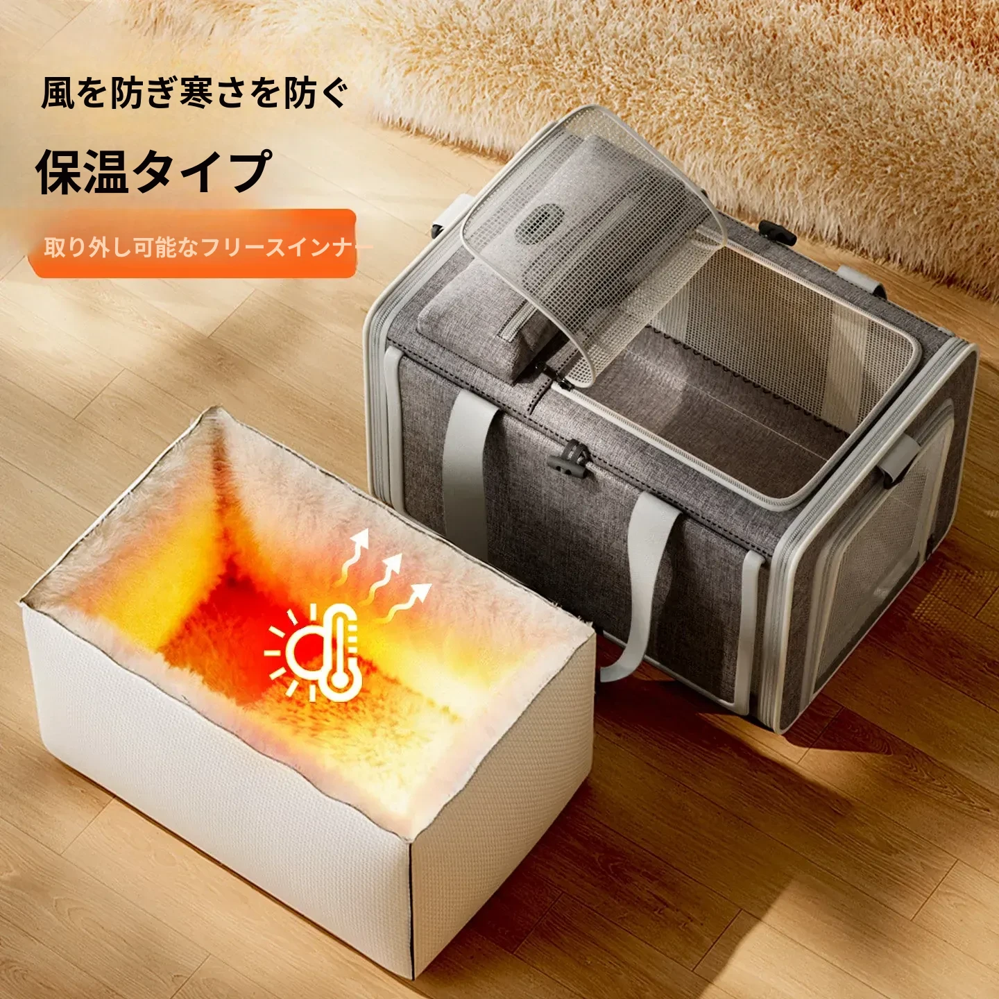 【冬季用フリース保温】厚手防風猫バッグ グレー