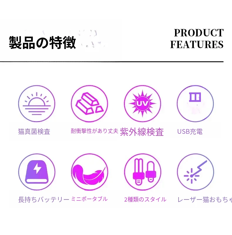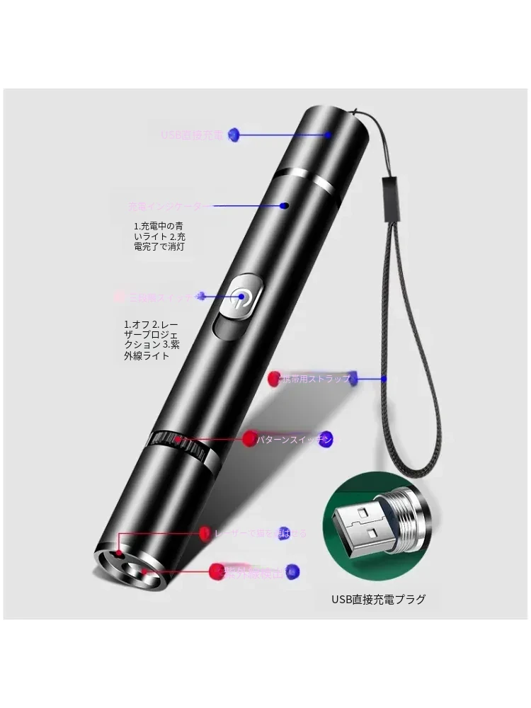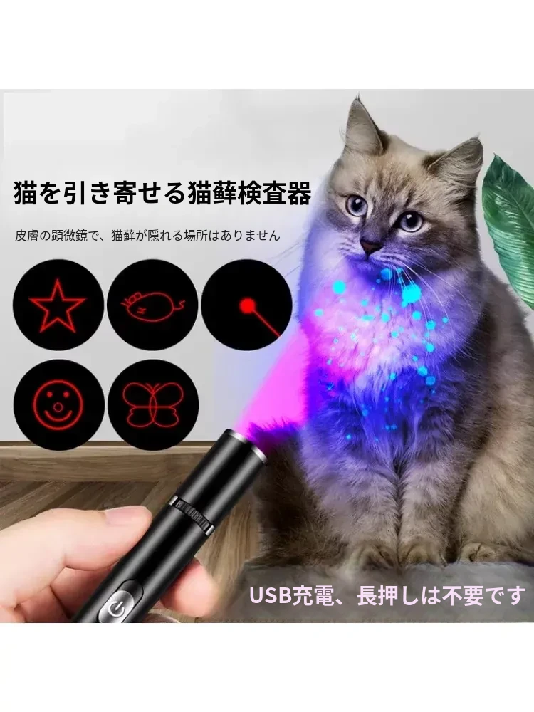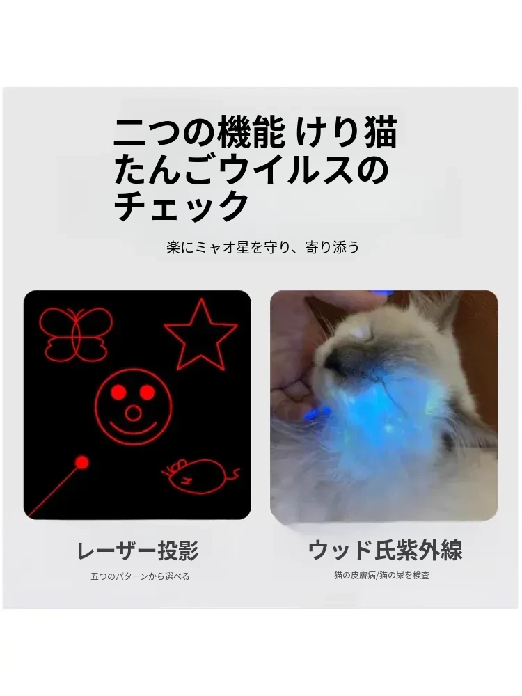 猫ちゃんが夢中になる!赤外線レーザーポインター付き多機能UVライト、猫の皮膚病を検査できるウッド氏のペット専用おもちゃ。楽しい遊びと健康チェックを同時に!