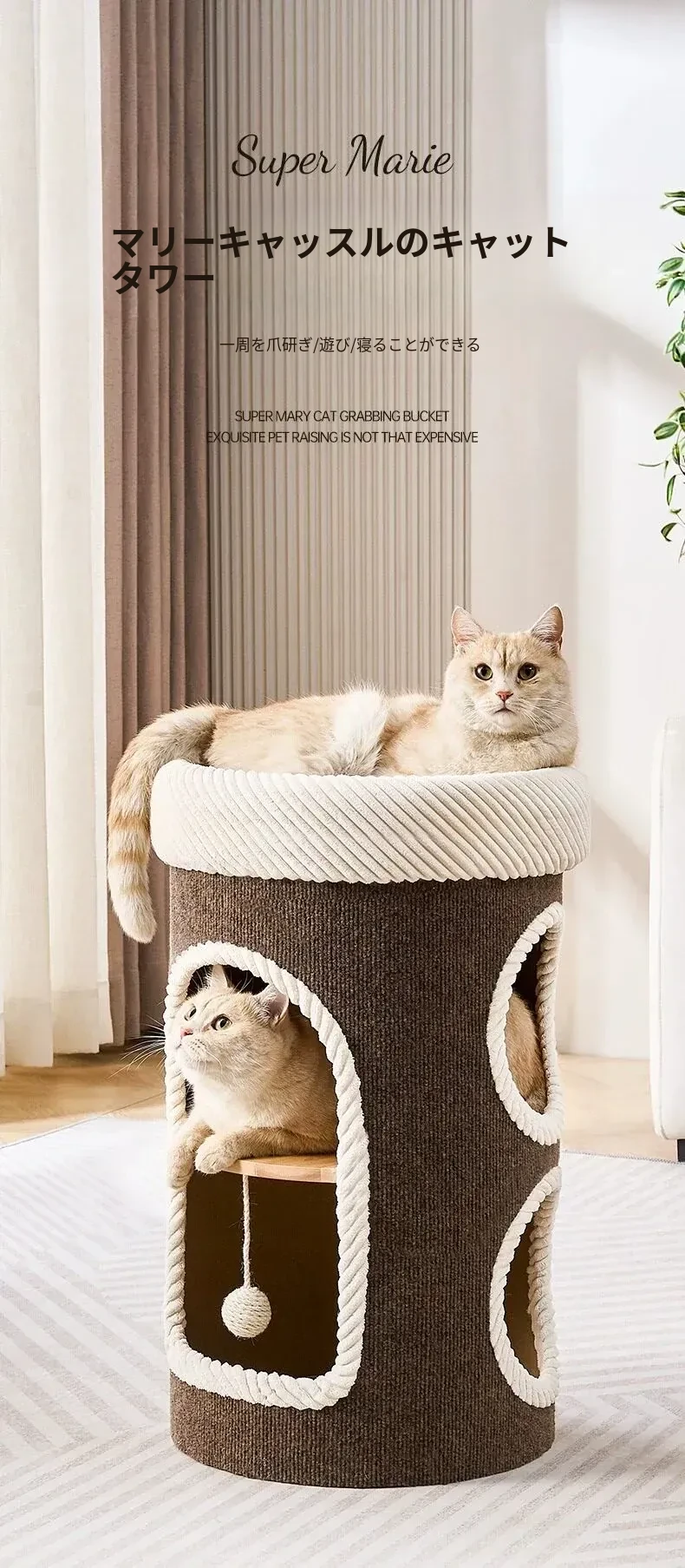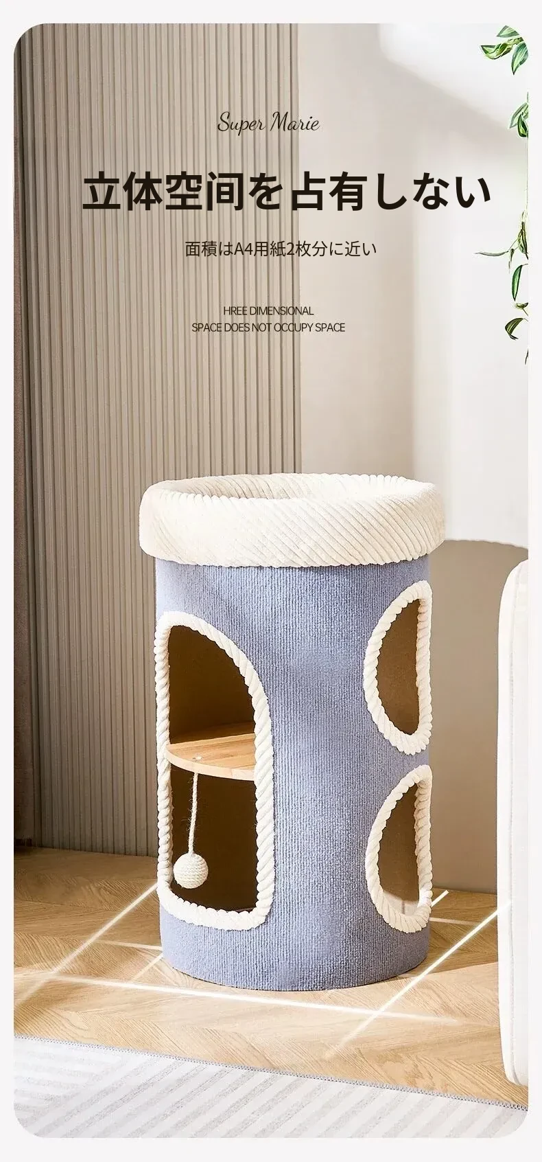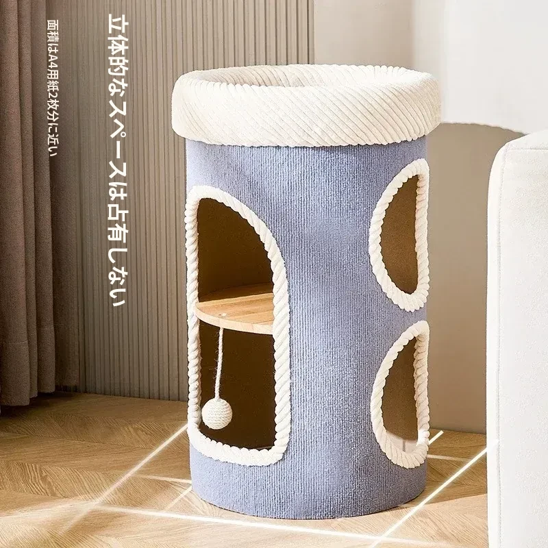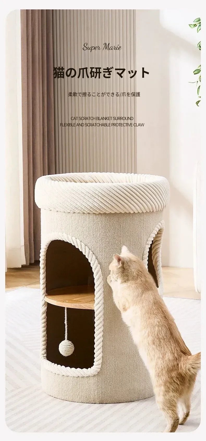 多機能キャットタワー!猫の爪研ぎと隠れ家が一体化した快適な寝床、子猫も大満足!バルコニーにも最適なデザインで、愛猫たちに楽しい遊び場を提供します。