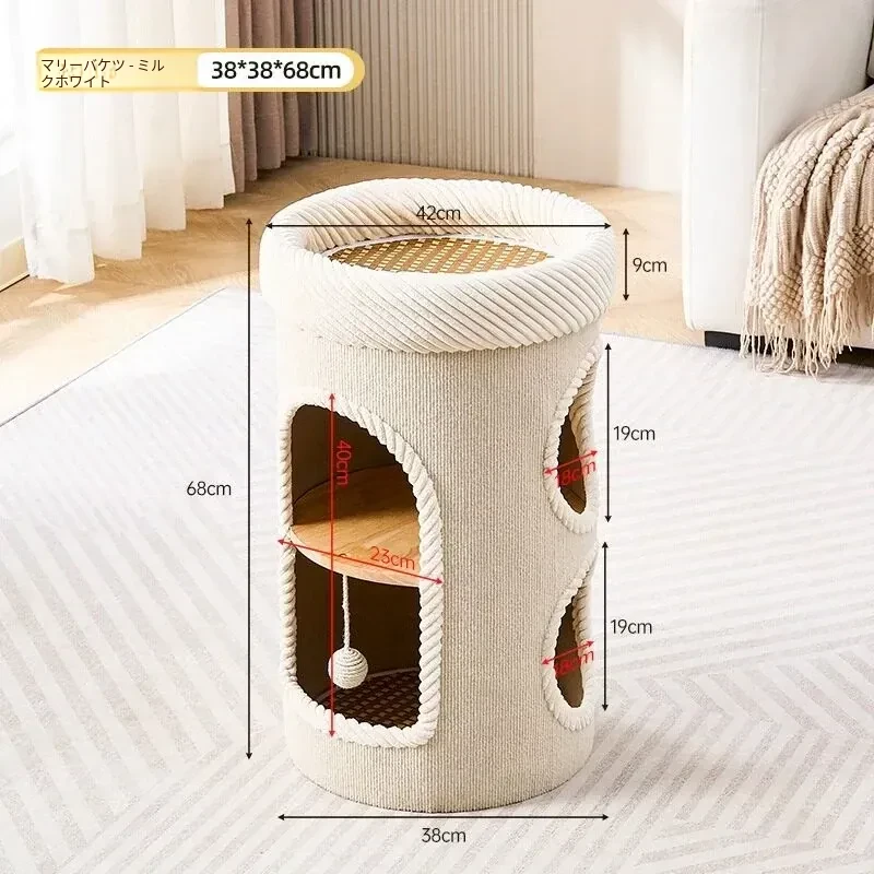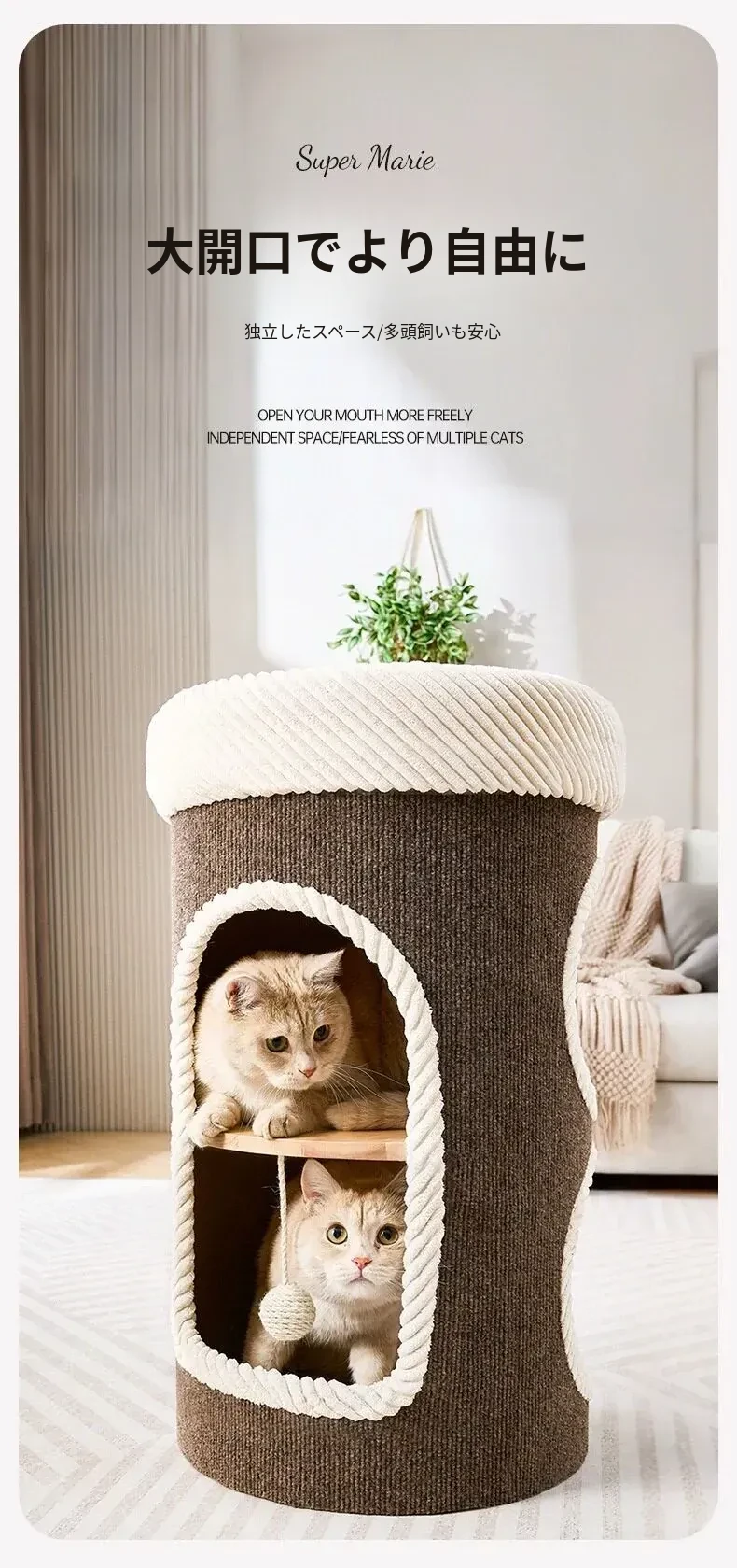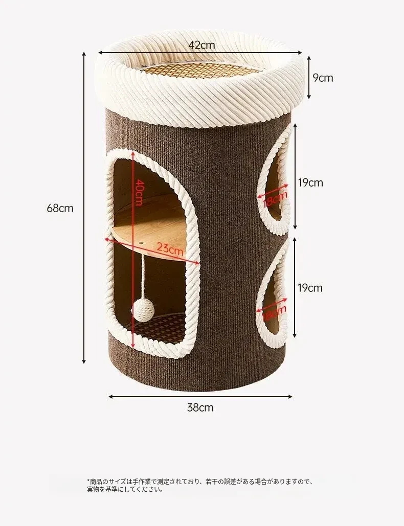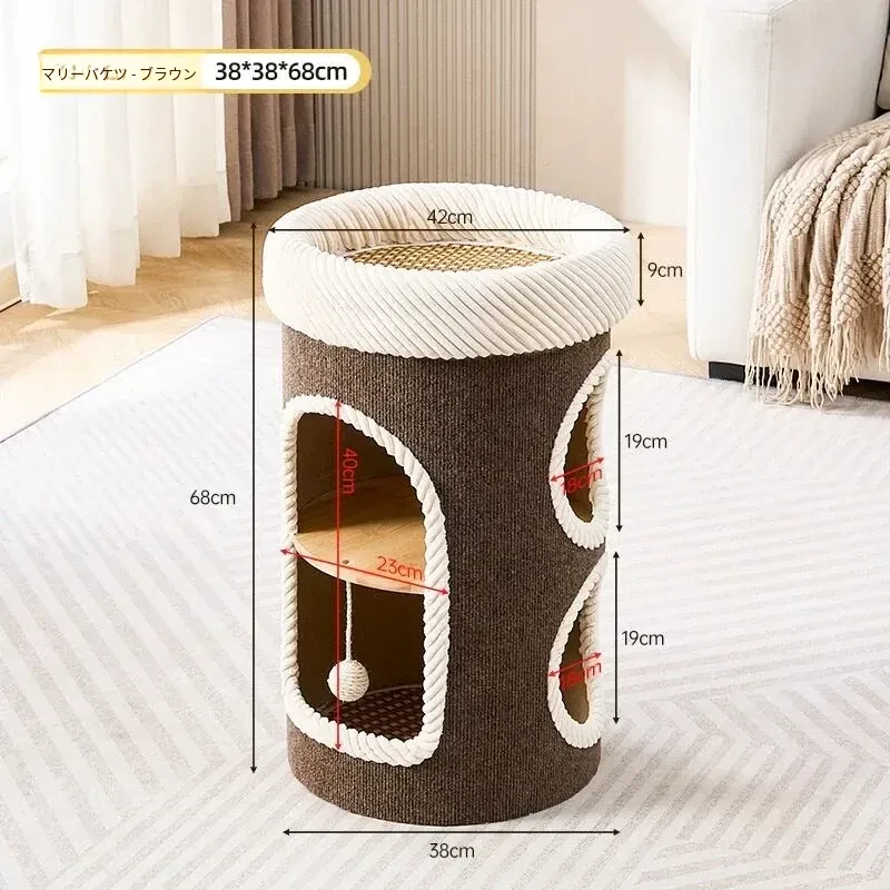多機能キャットタワー!猫の爪研ぎと隠れ家が一体化した快適な寝床、子猫も大満足!バルコニーにも最適なデザインで、愛猫たちに楽しい遊び場を提供します。