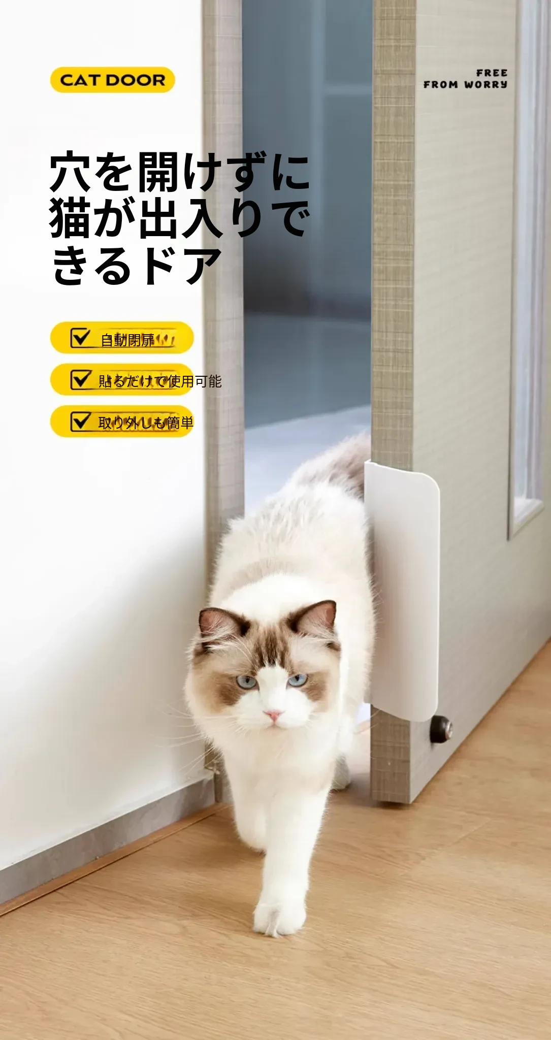 猫が自由に出入りできる自動ドア!双方向開口で、愛猫や小型犬もスムーズに行き来。便利な留守番機能付きで安心!ペットと一緒に快適な生活を楽しもう!