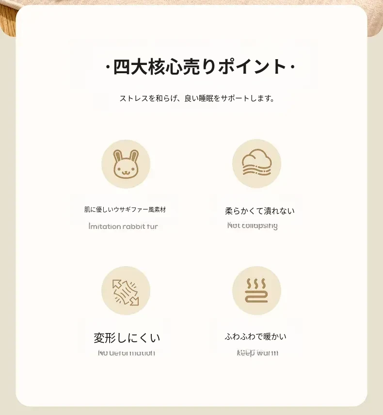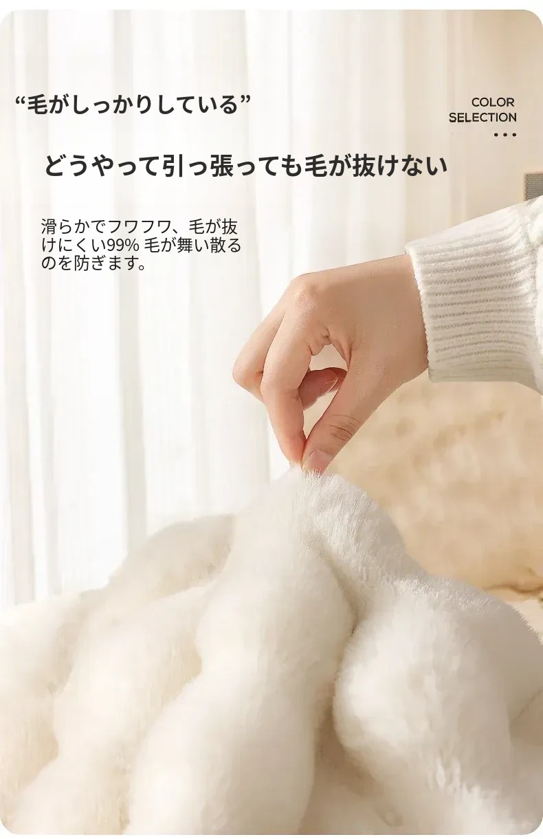 ポンポンウサギフリースマット暖かフリース-アイボリー【片面ウサギフリース】